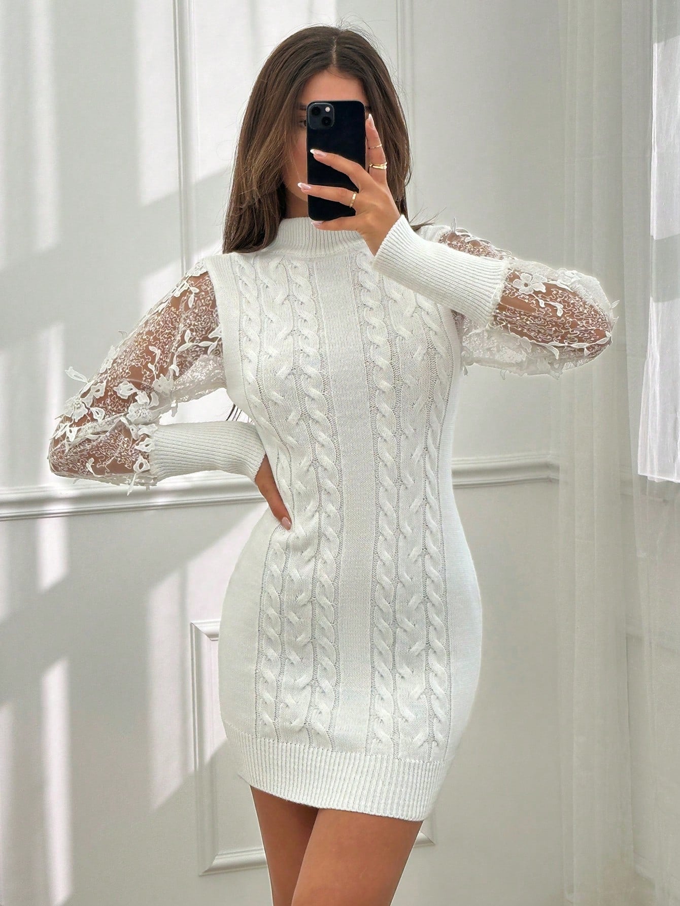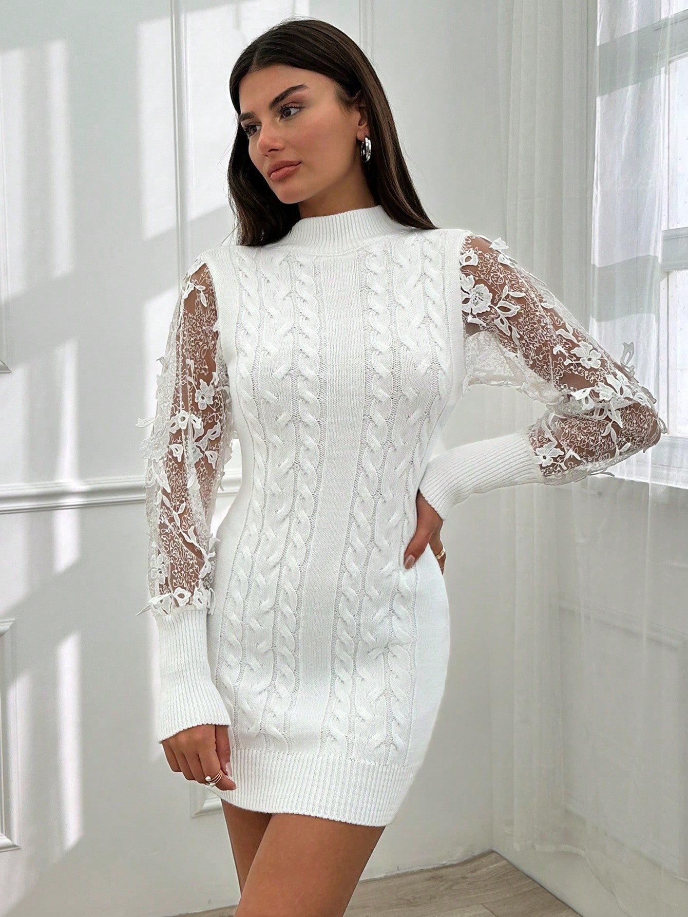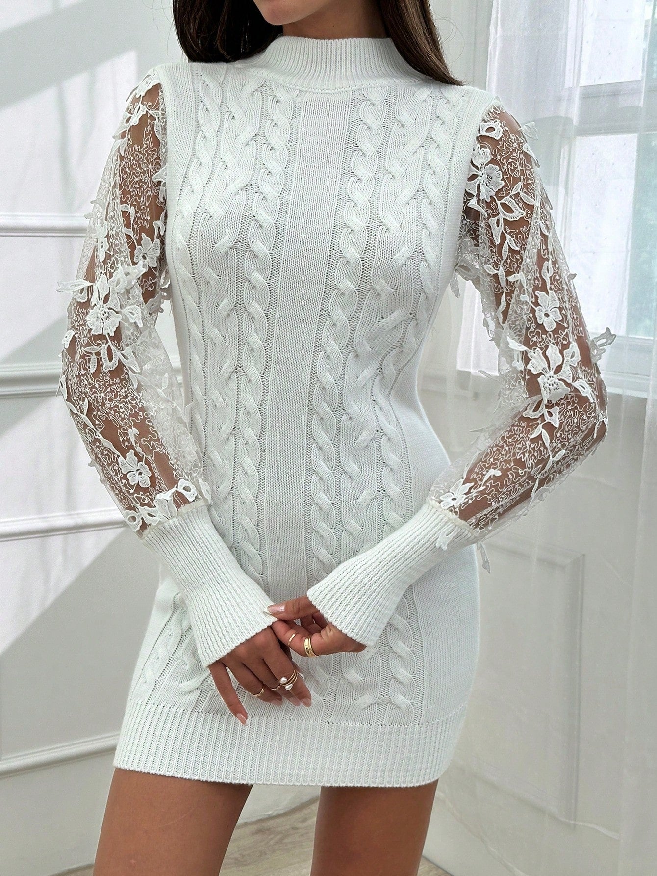 Abito mini elegante con dettagli in pizzo sulle maniche