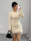 Abito elegante a maglia a maniche lunghe con collo rotondo e frange, aderente