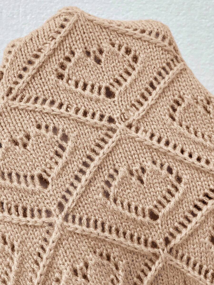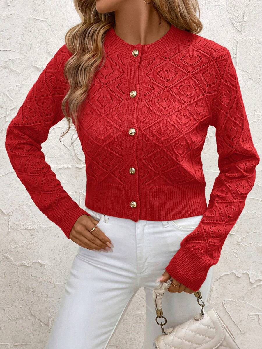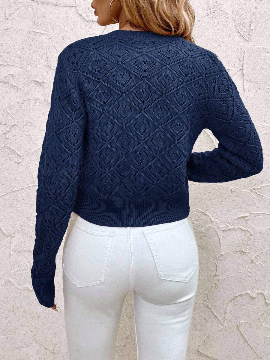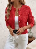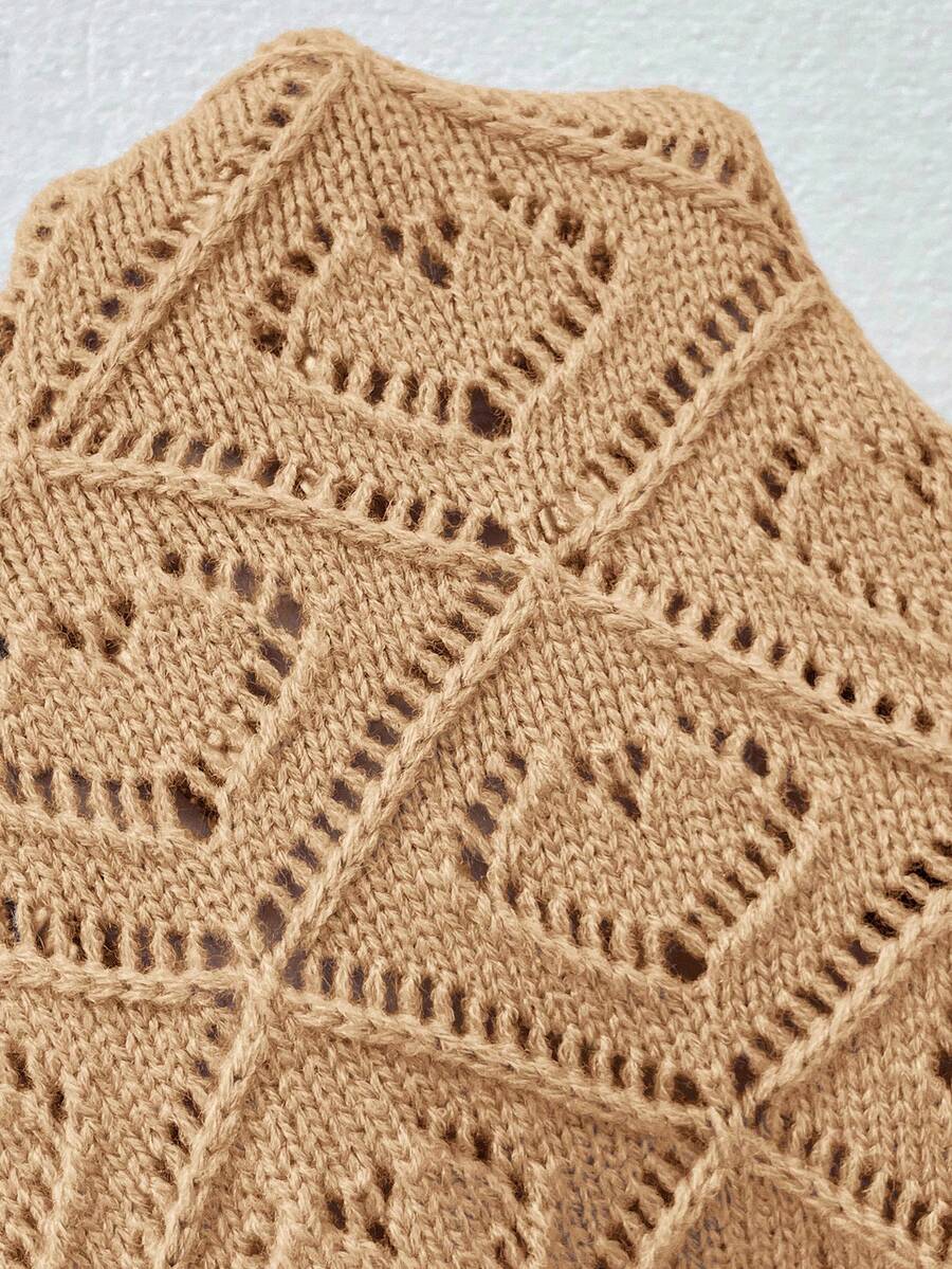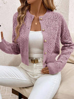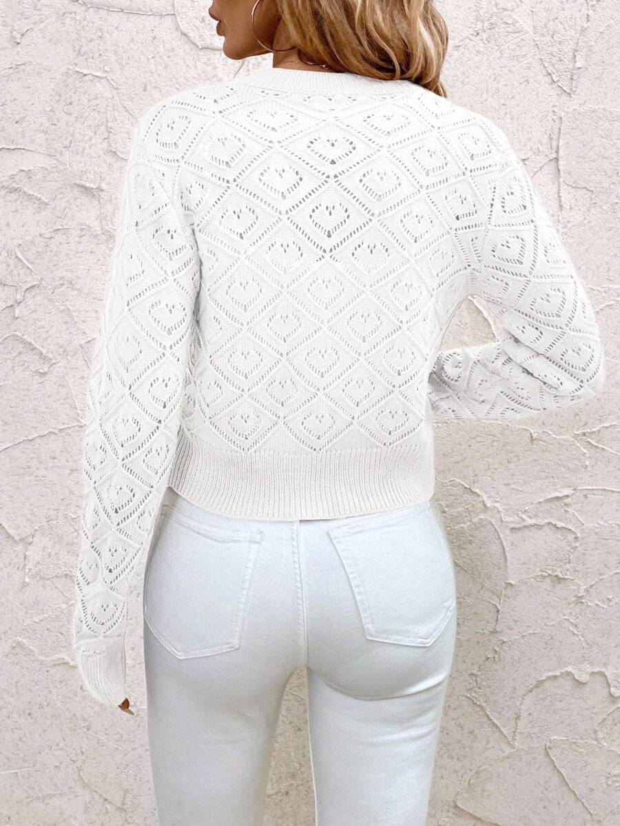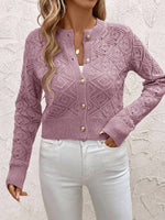 Cardigan a maglia tinta unita con scollo rotondo, spalle a caduta e lavorazione traforata
