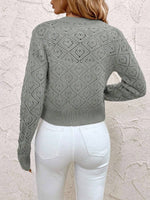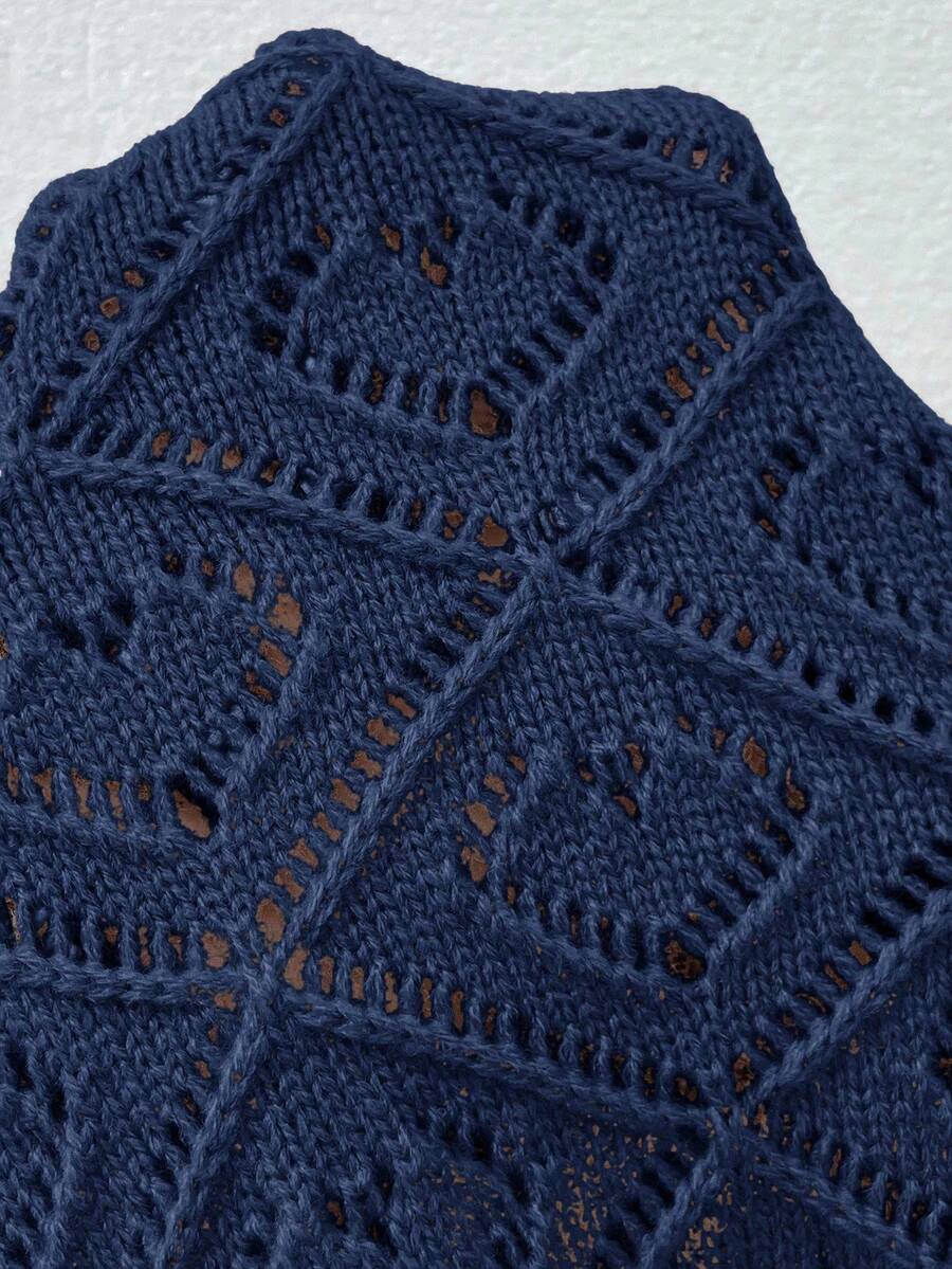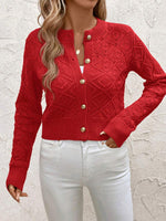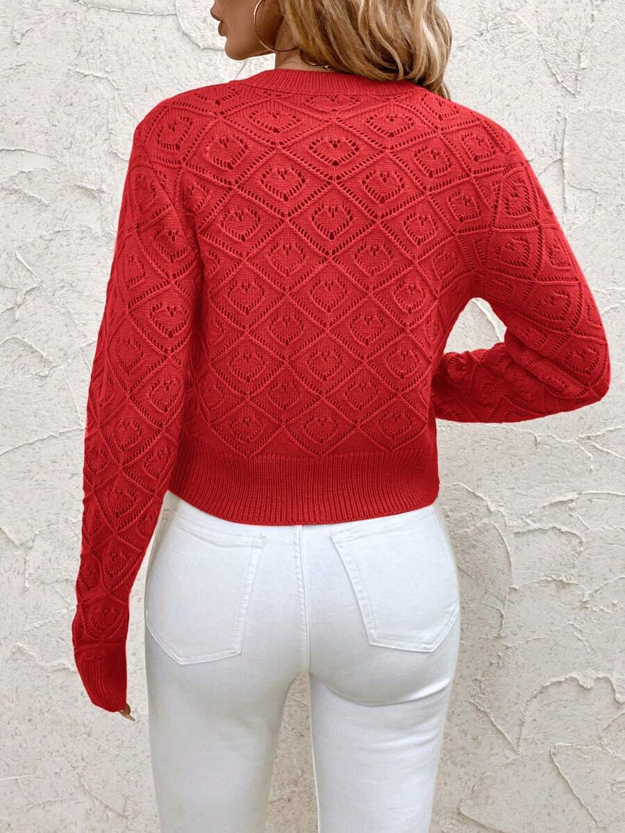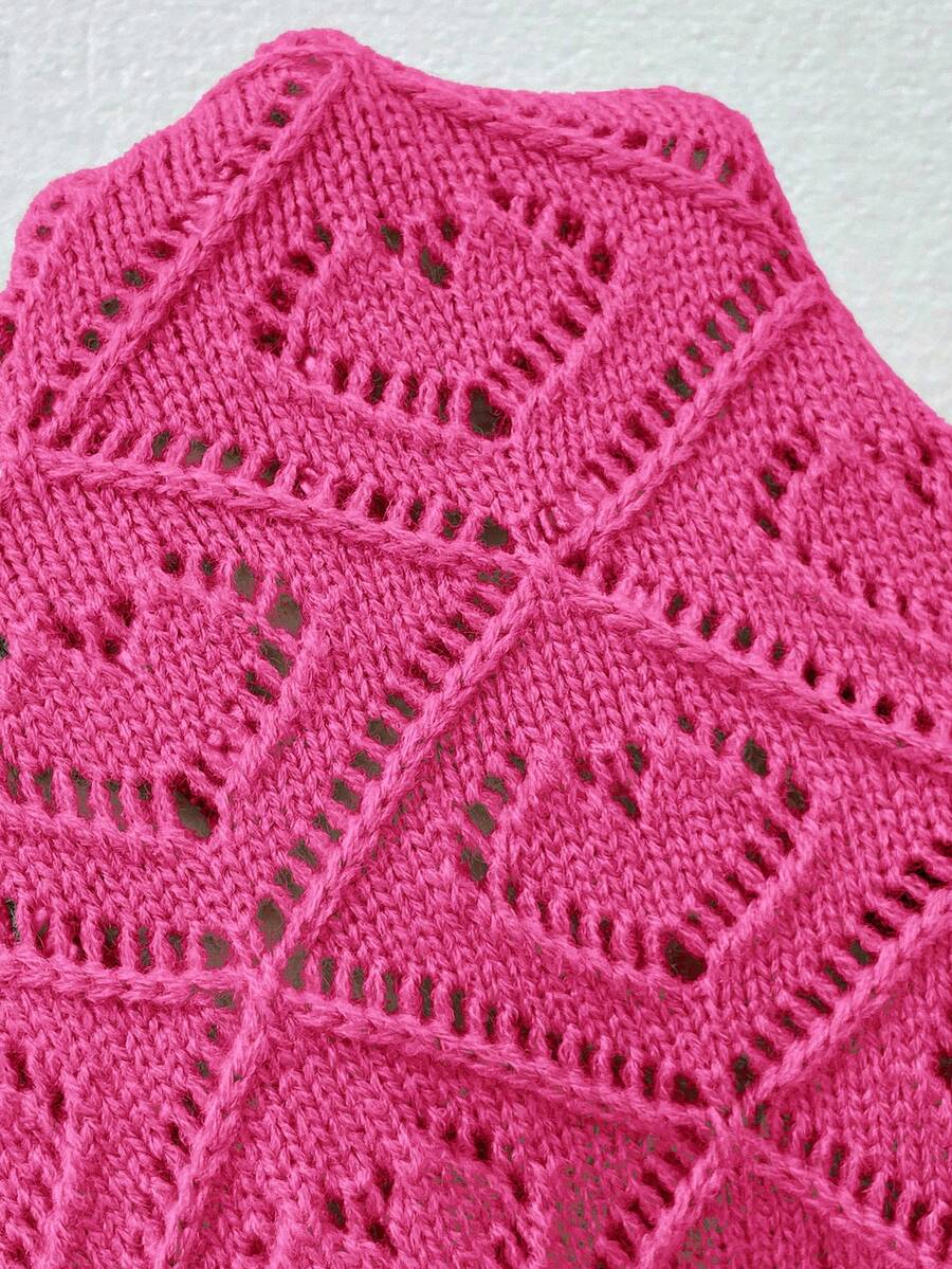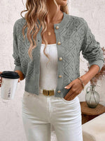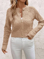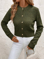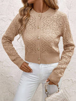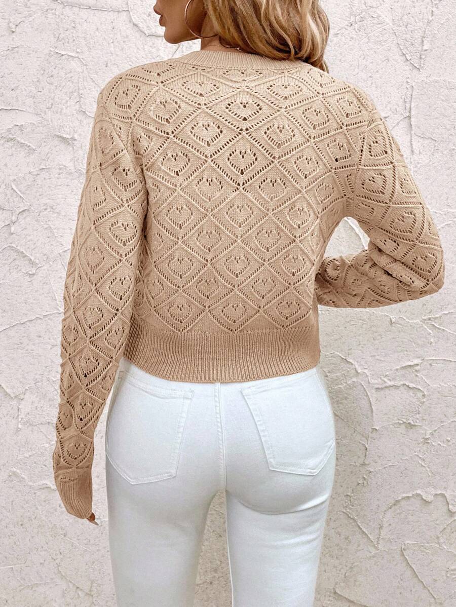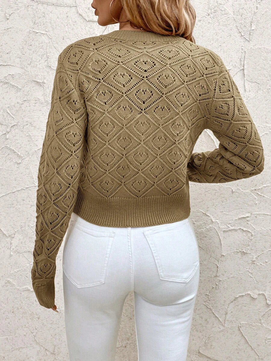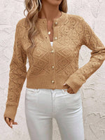 Cardigan a maglia tinta unita con scollo rotondo, spalle a caduta e lavorazione traforata