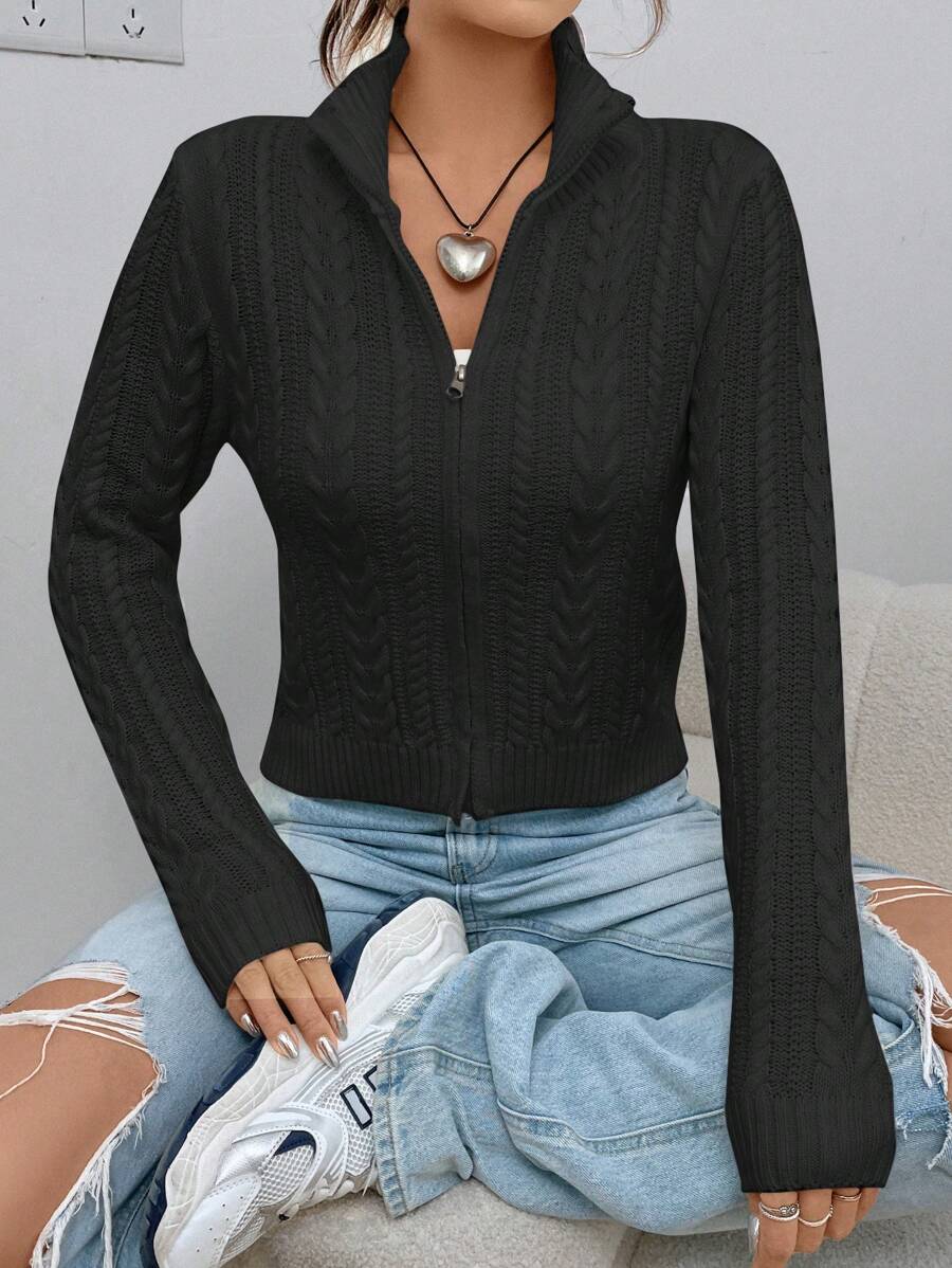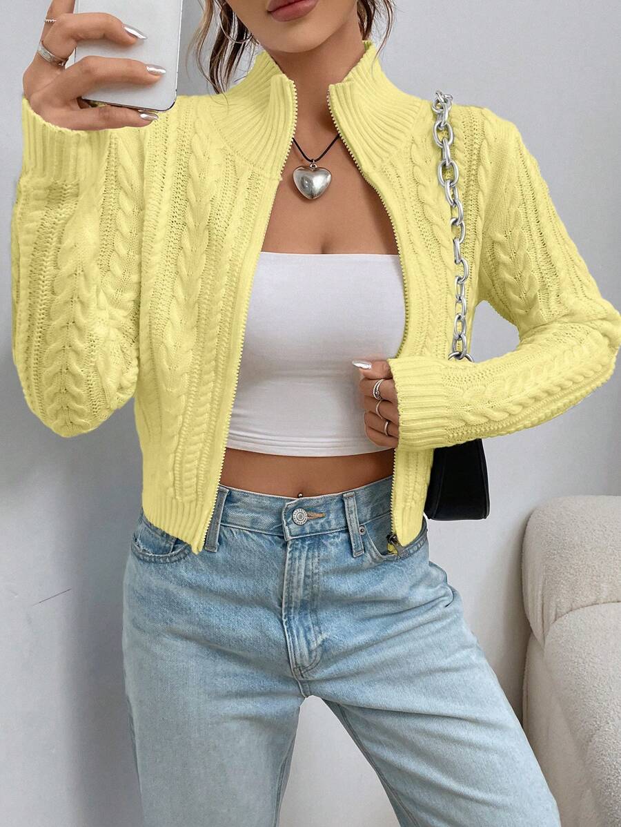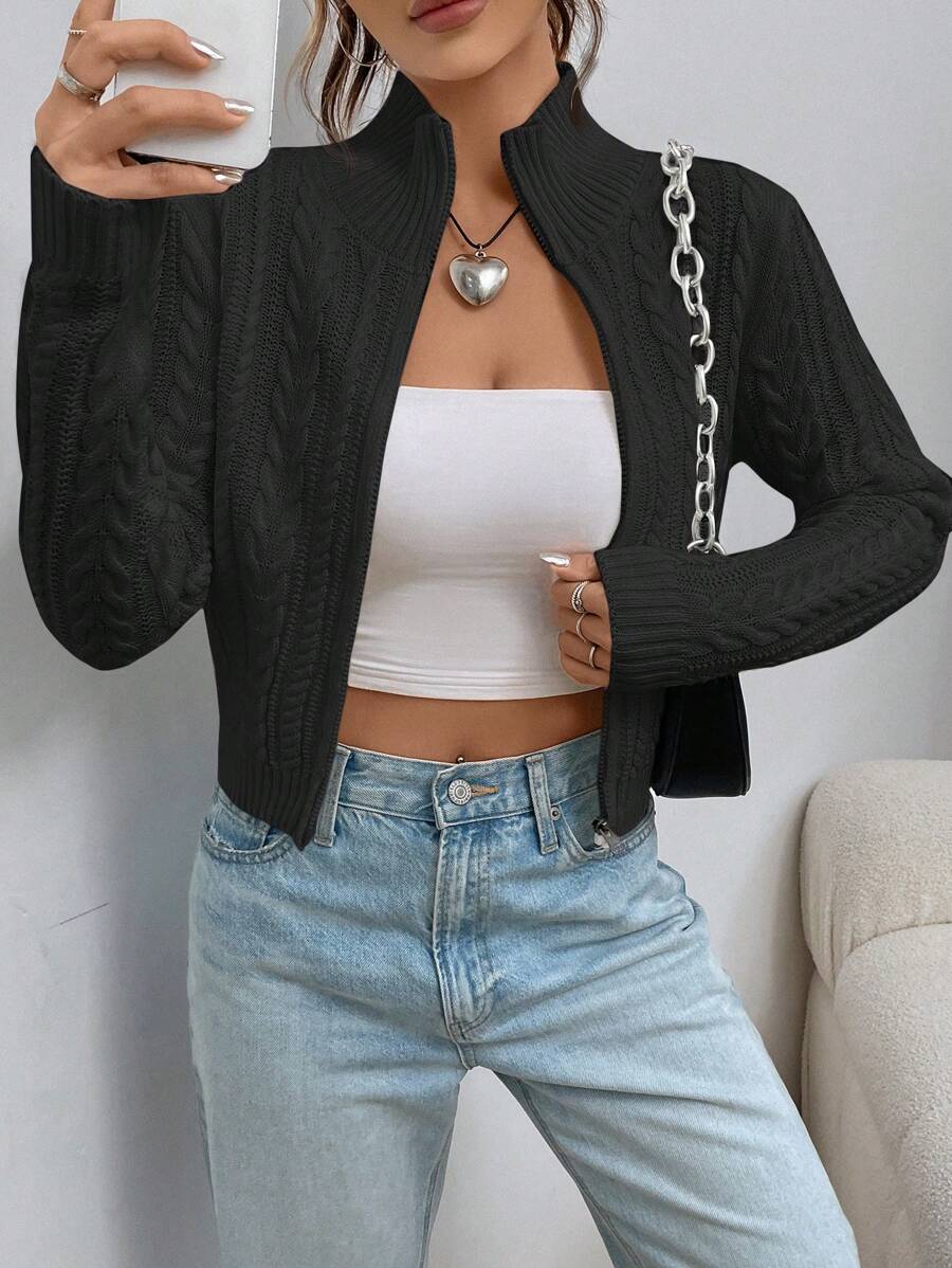 Cardigan casual a maniche lunghe con collo alto, tinta unita