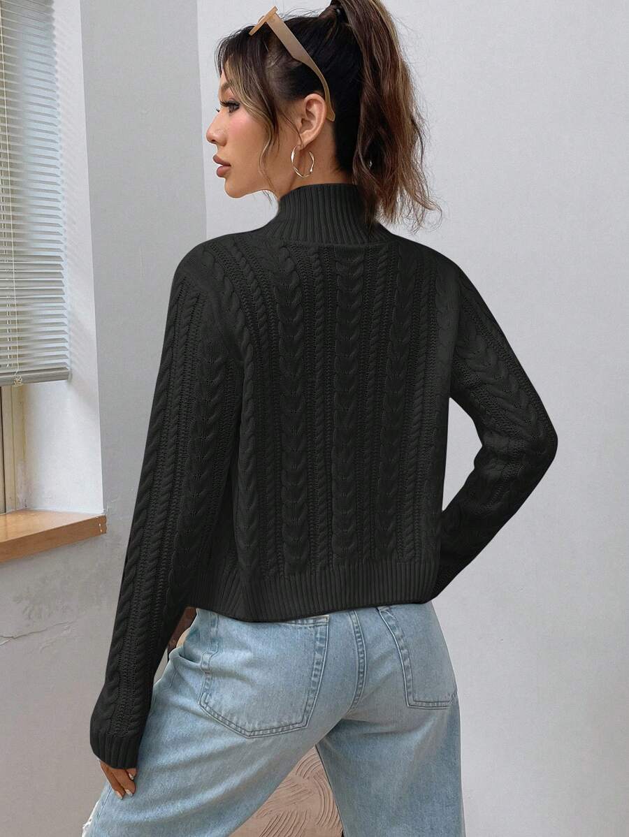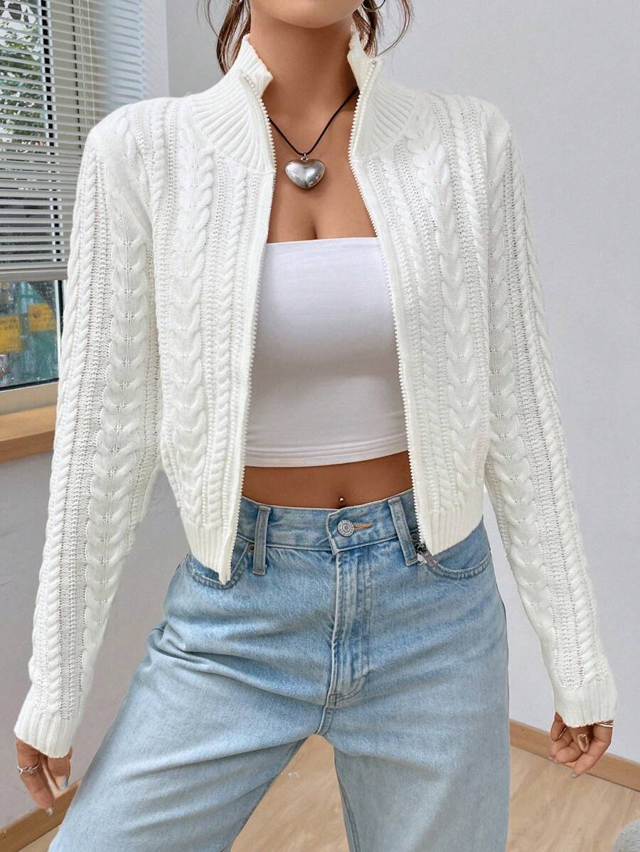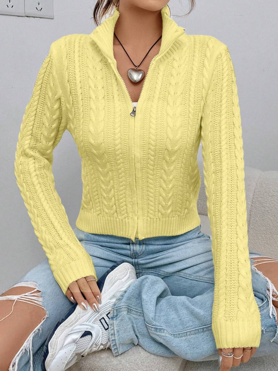 Cardigan casual a maniche lunghe con collo alto, tinta unita