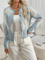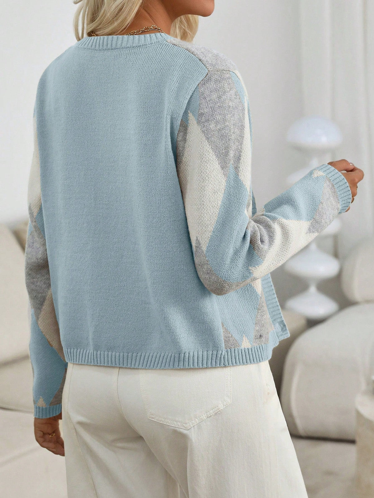 Cardigan casual con motivo a blocchi di colore e diamanti per donna
