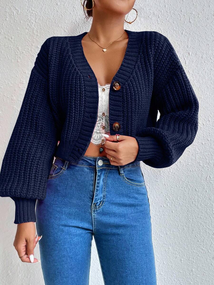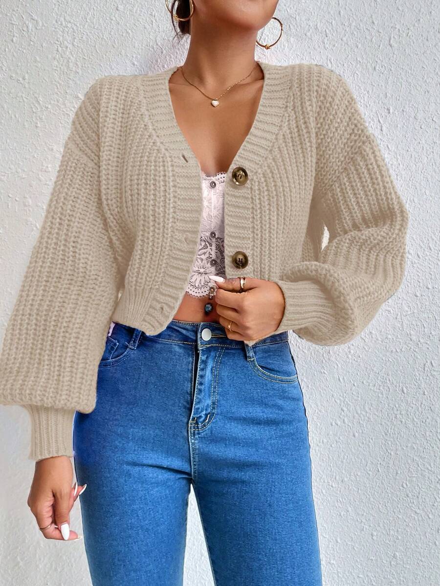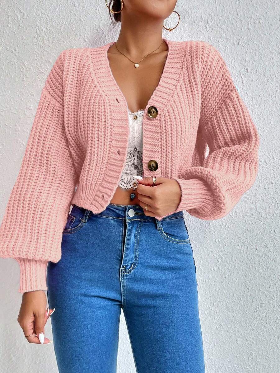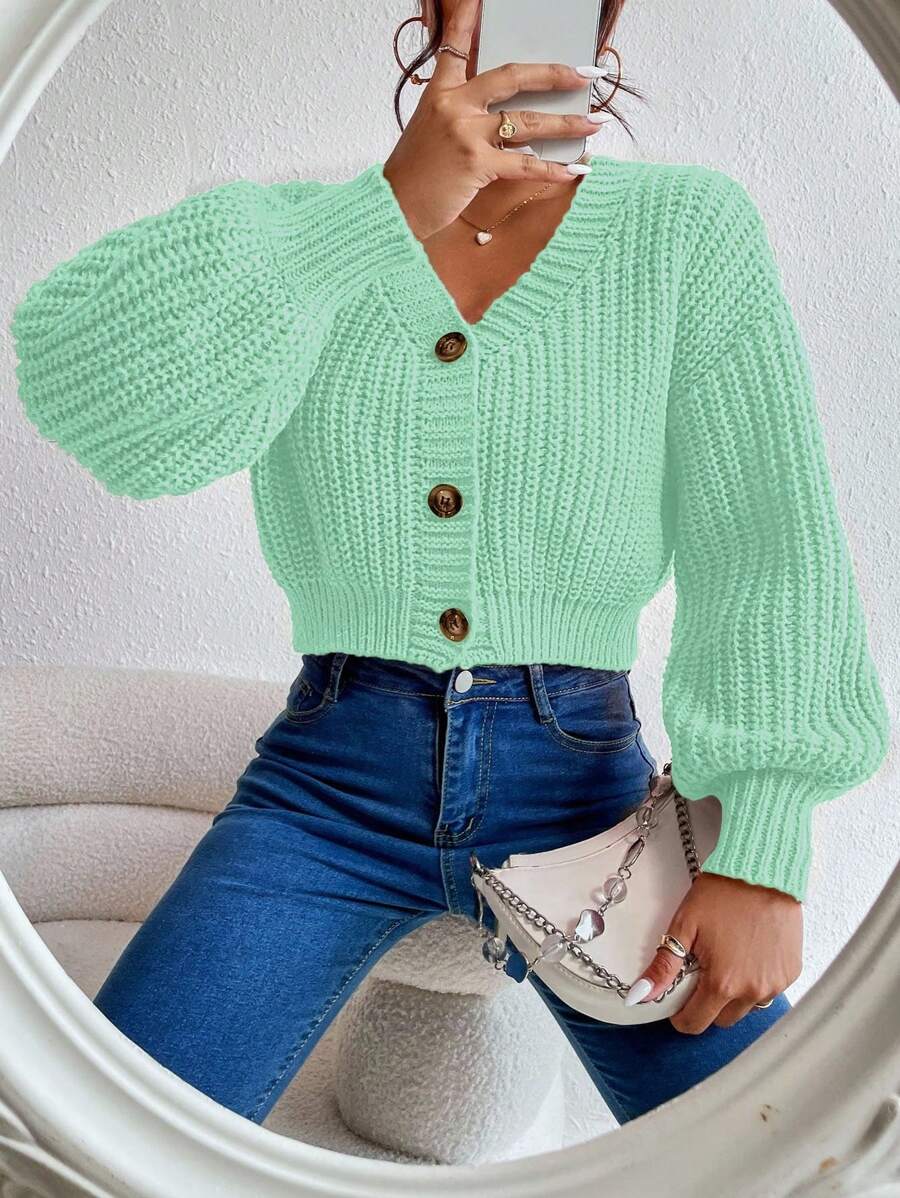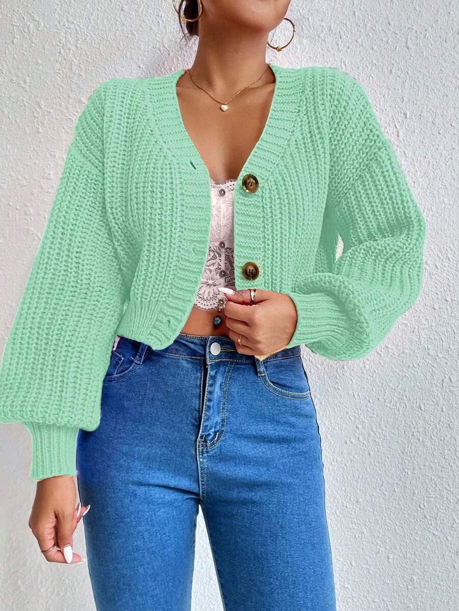 Cardigan casual da donna con bottoni sulla parte anteriore e maniche lunghe, di colore unito