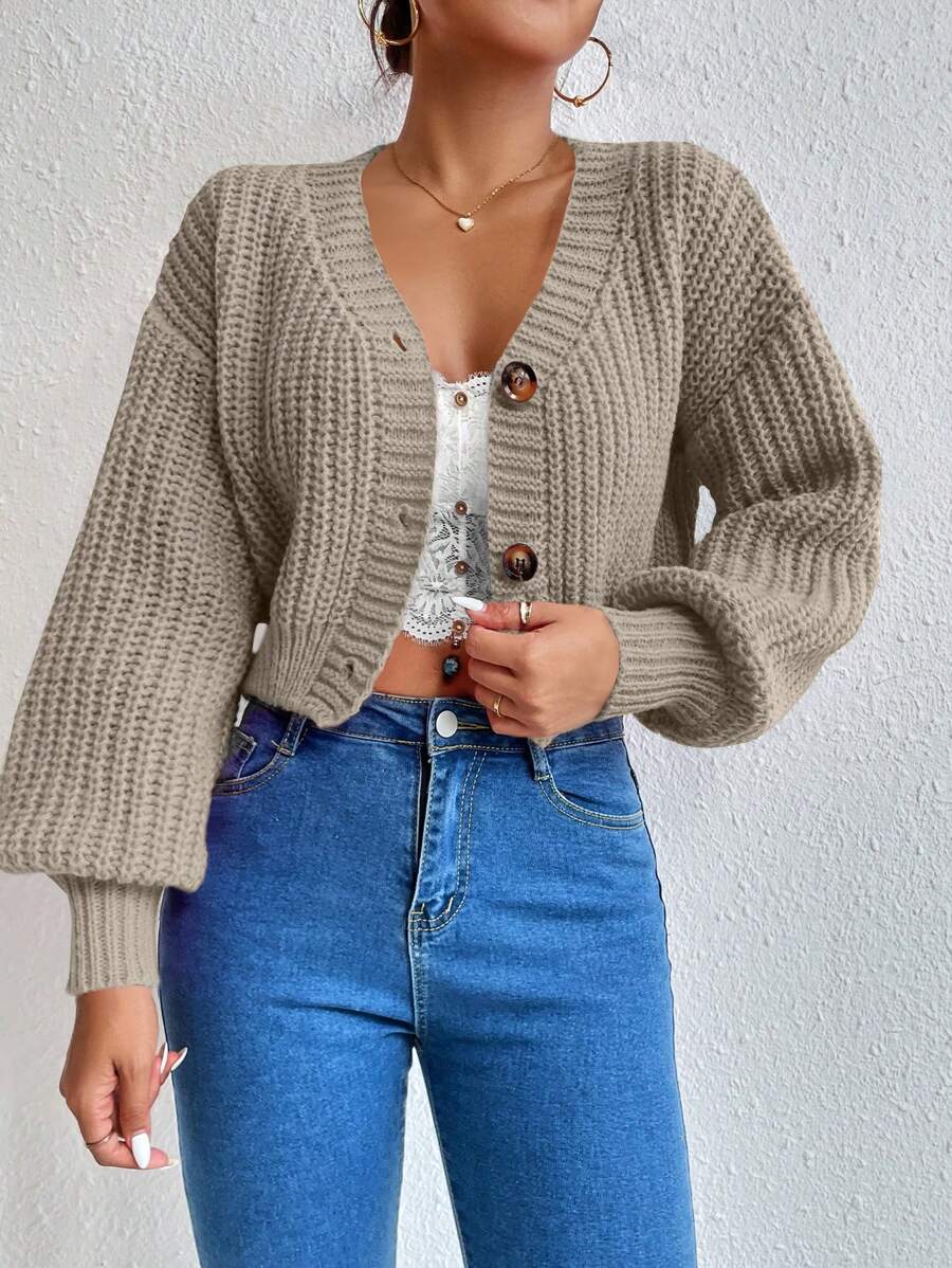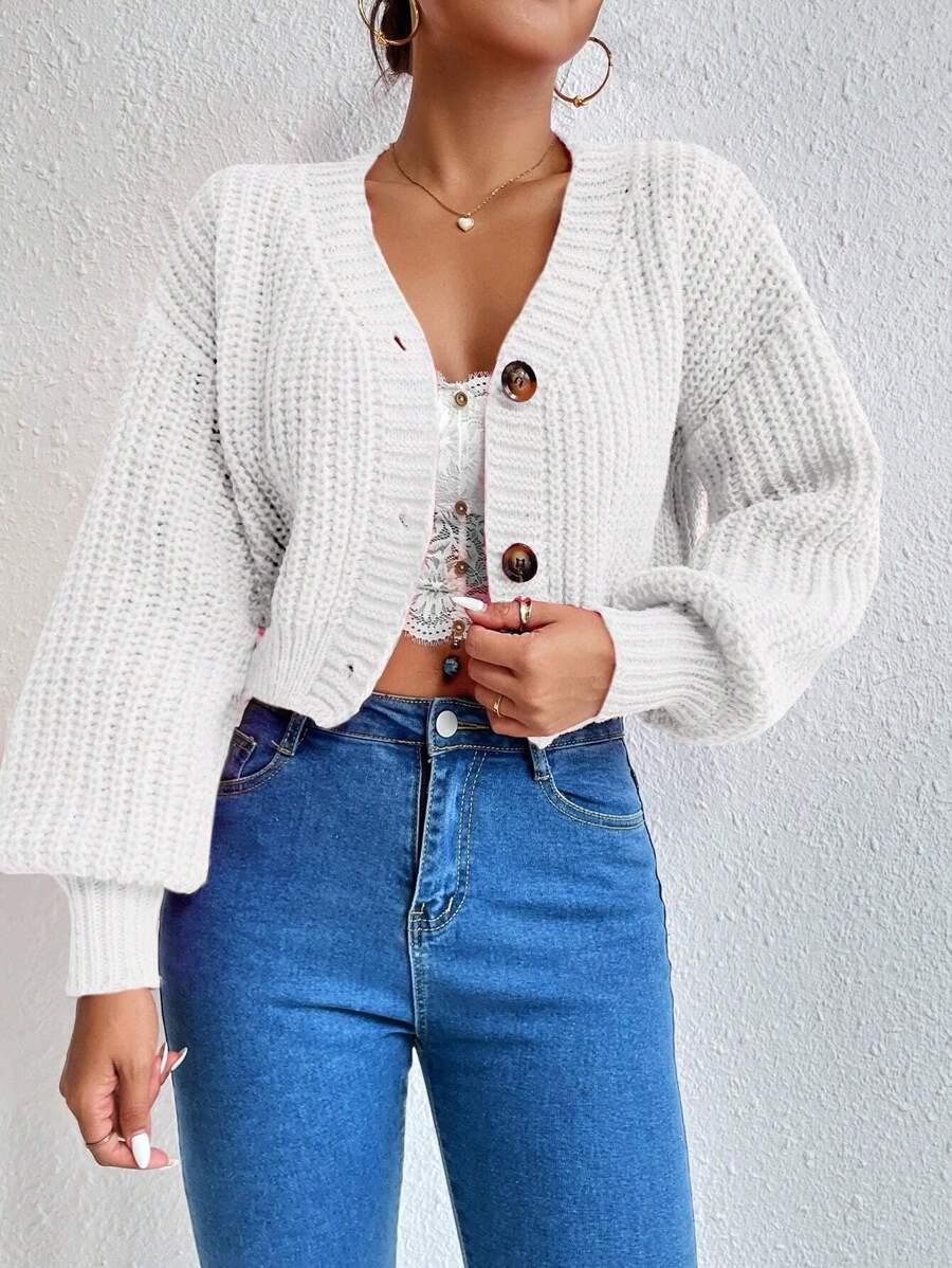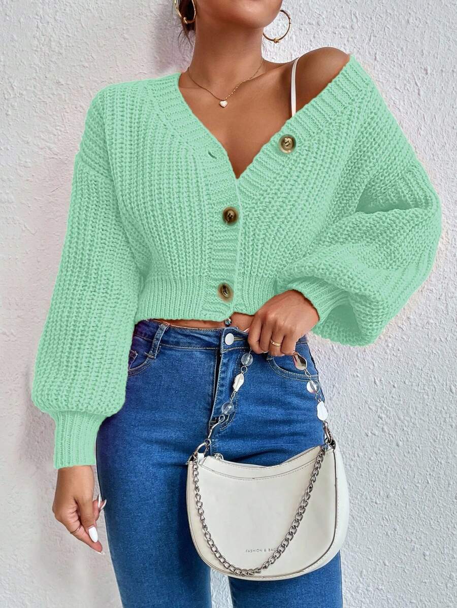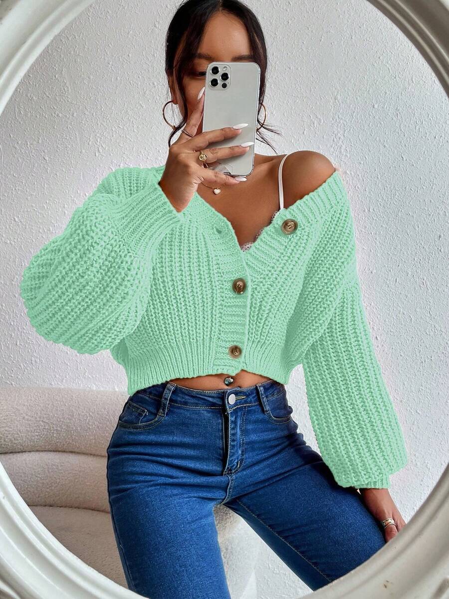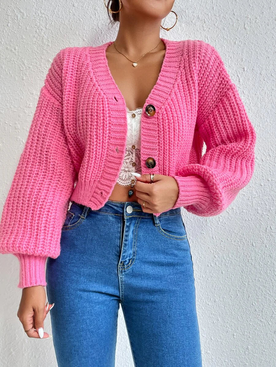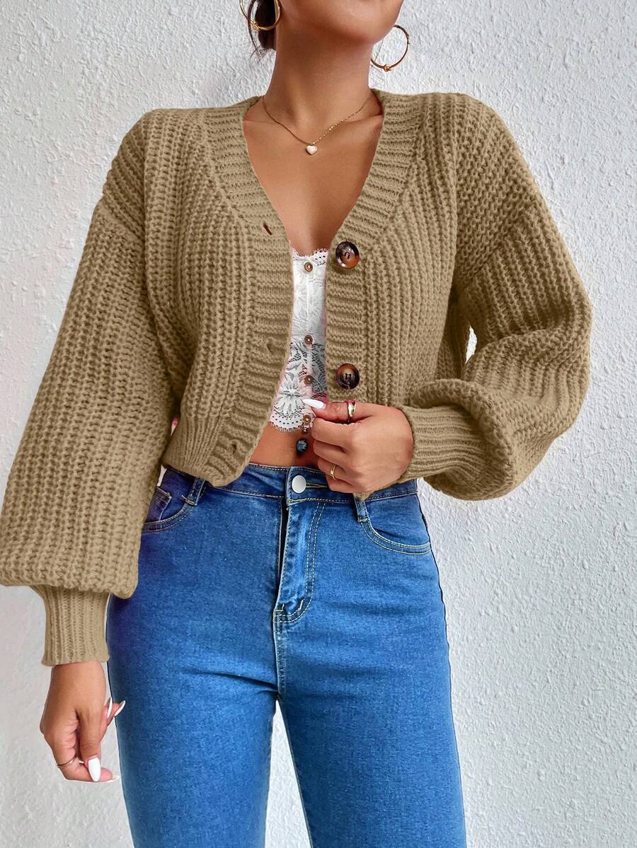 Cardigan casual da donna con bottoni sulla parte anteriore e maniche lunghe, di colore unito
