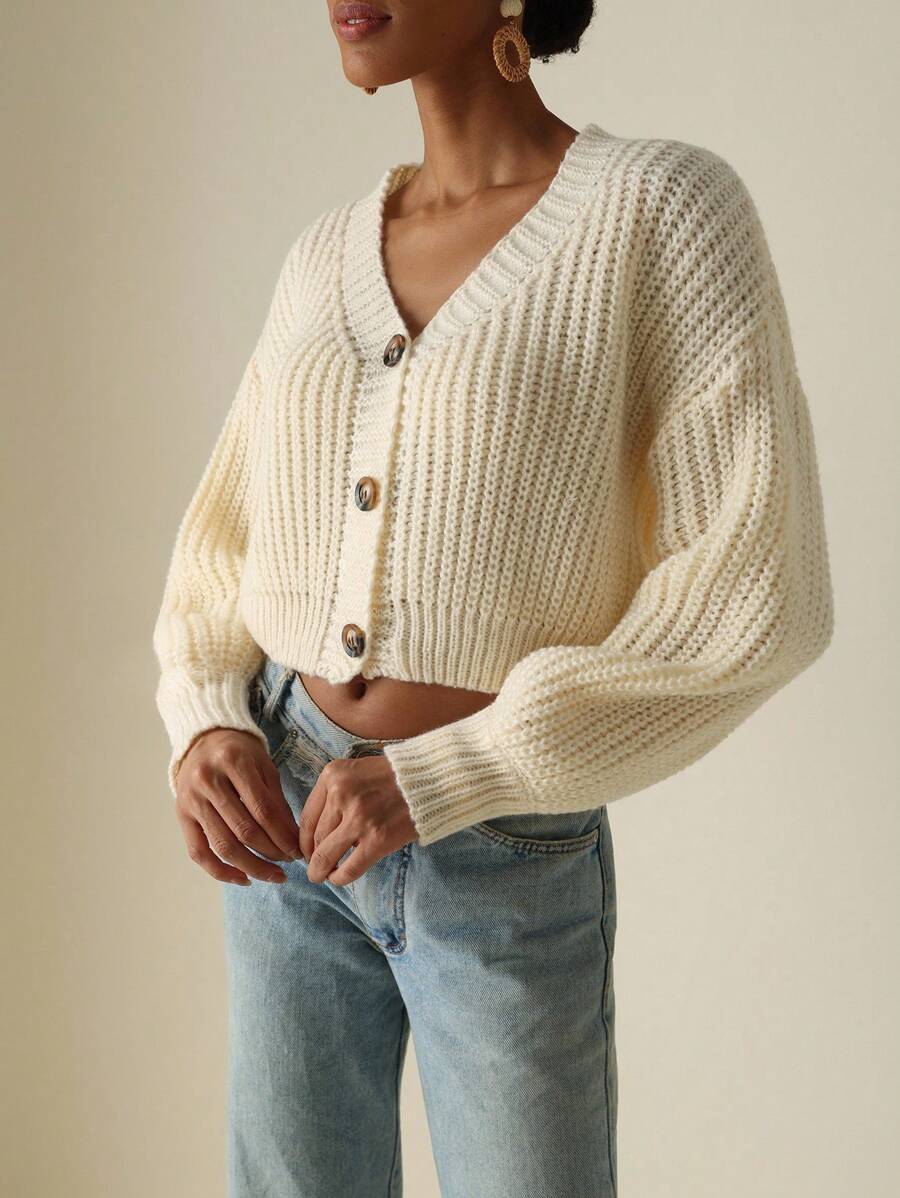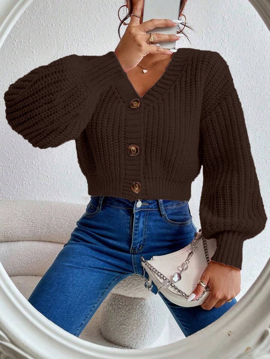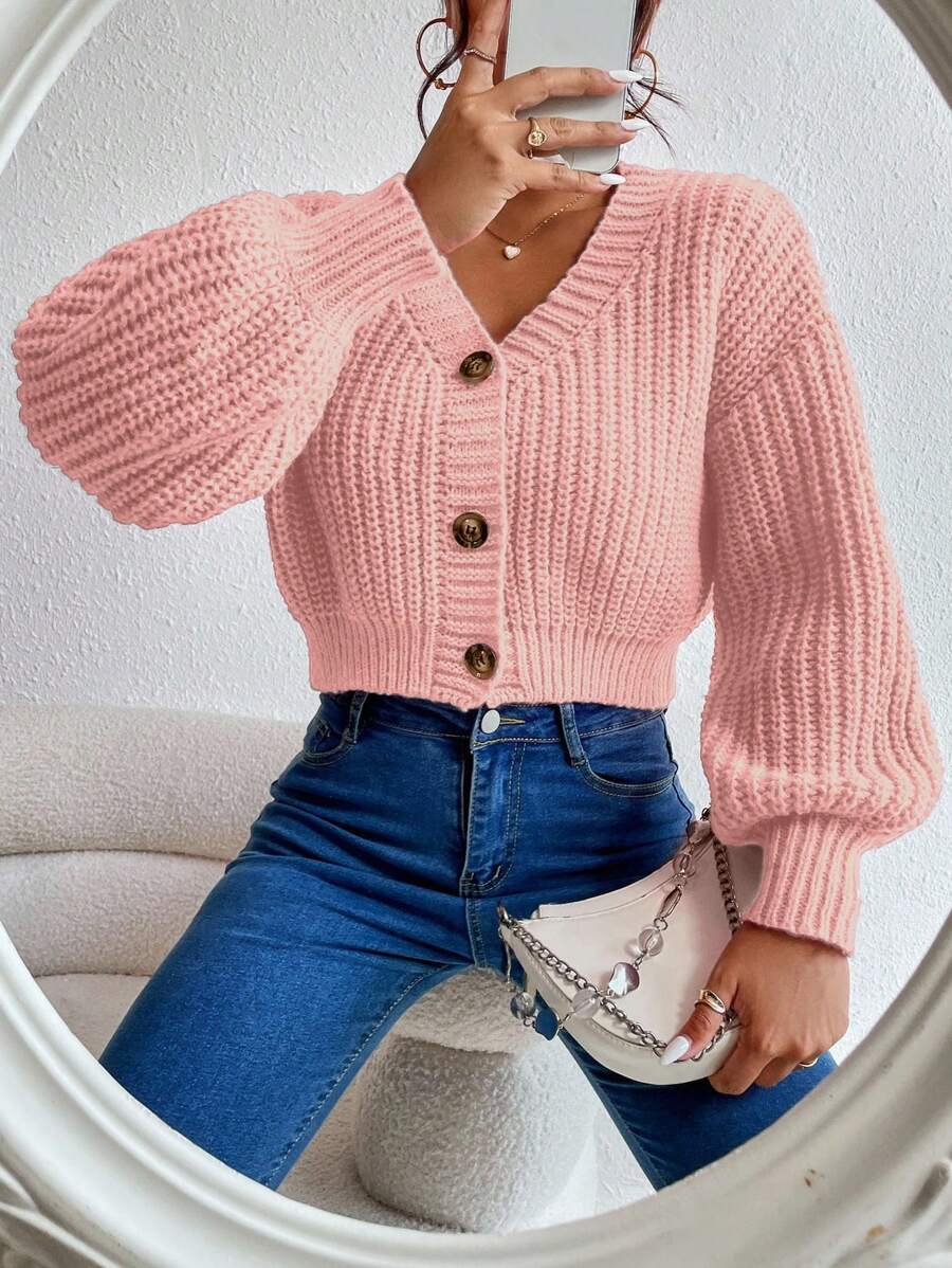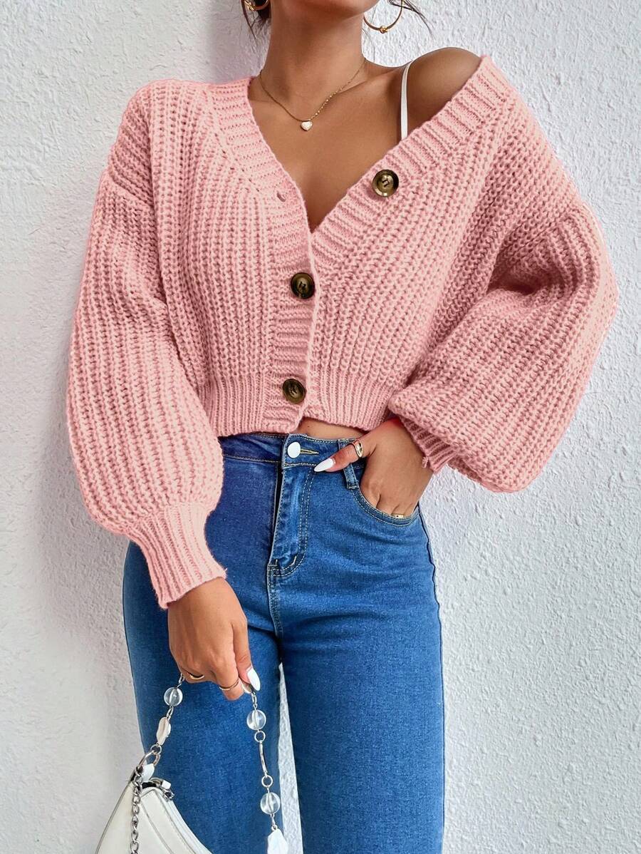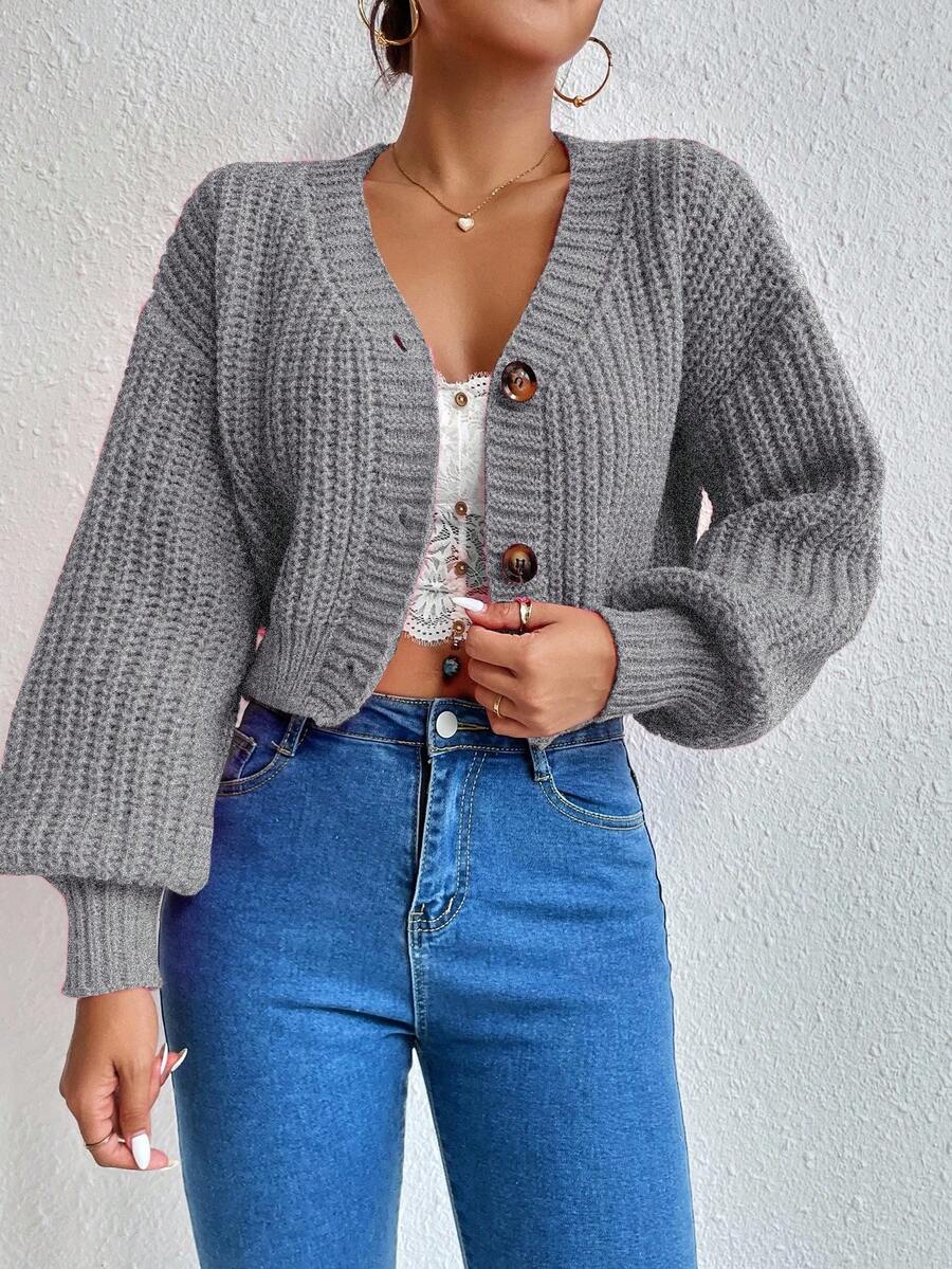Cardigan casual da donna con bottoni sulla parte anteriore e maniche lunghe, di colore unito