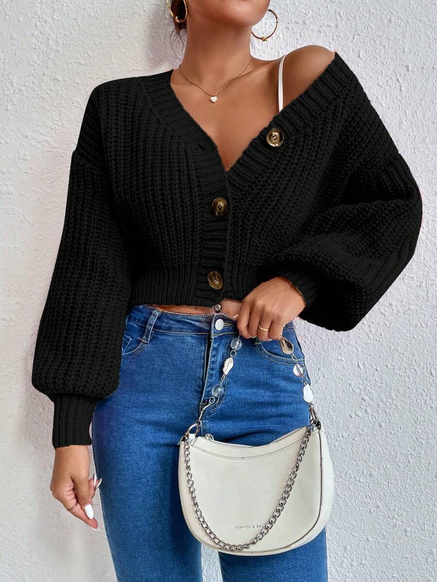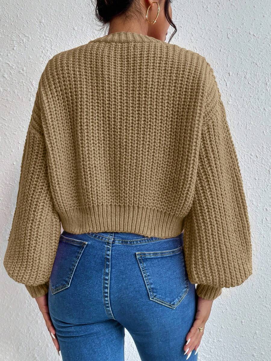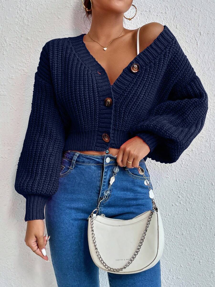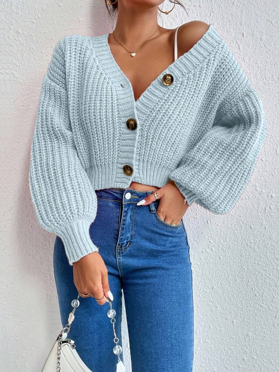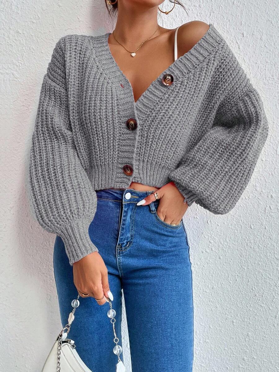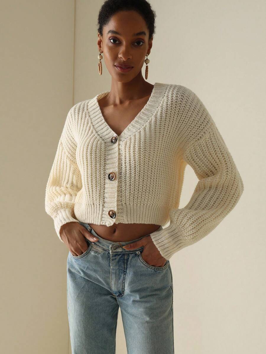 Cardigan casual da donna con bottoni sulla parte anteriore e maniche lunghe, di colore unito
