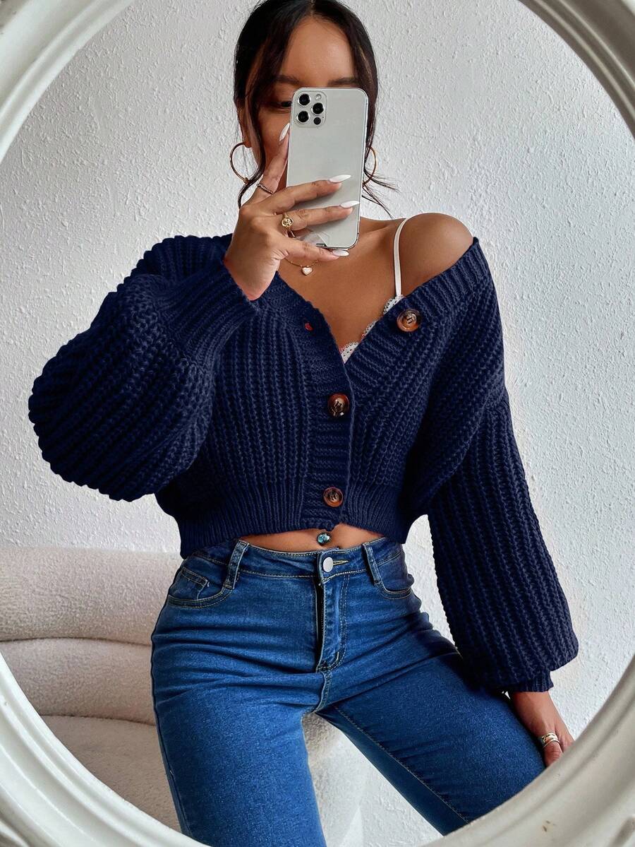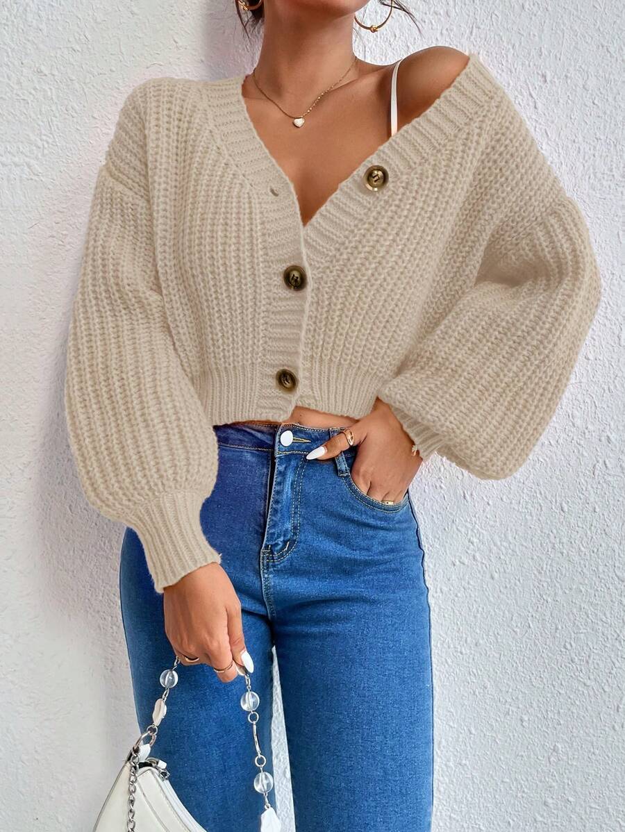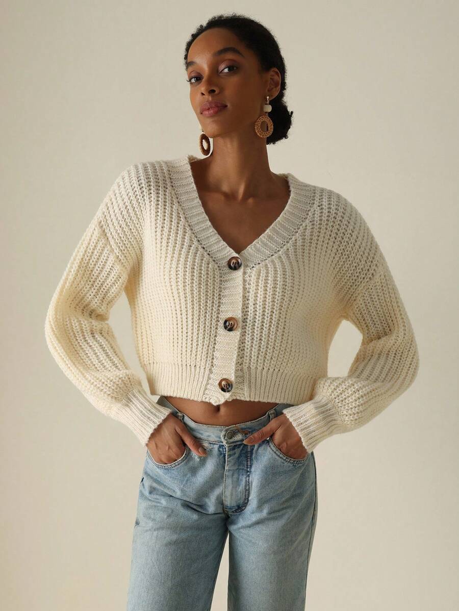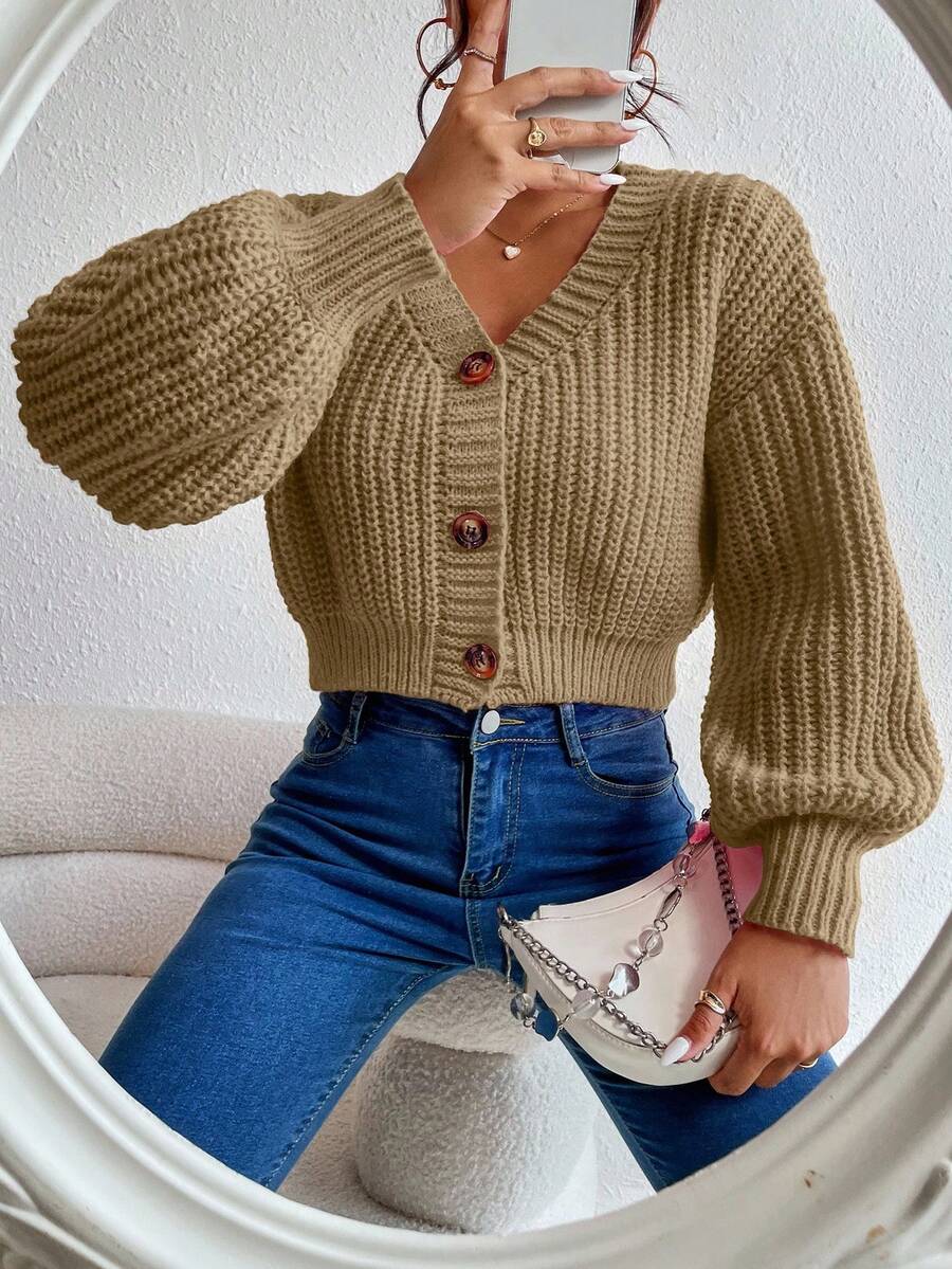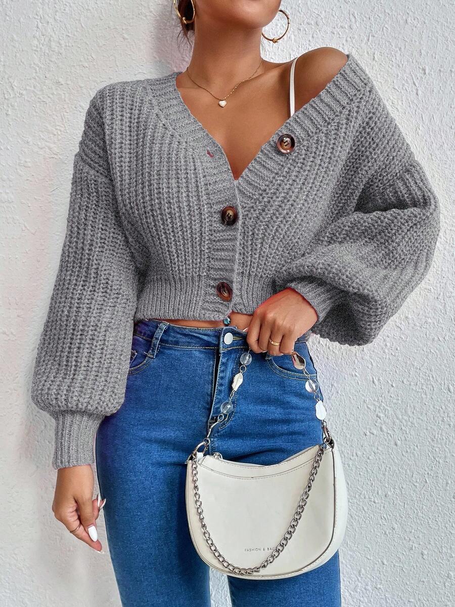 Cardigan casual da donna con bottoni sulla parte anteriore e maniche lunghe, di colore unito