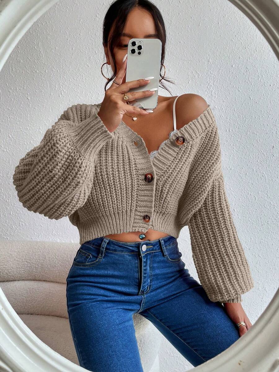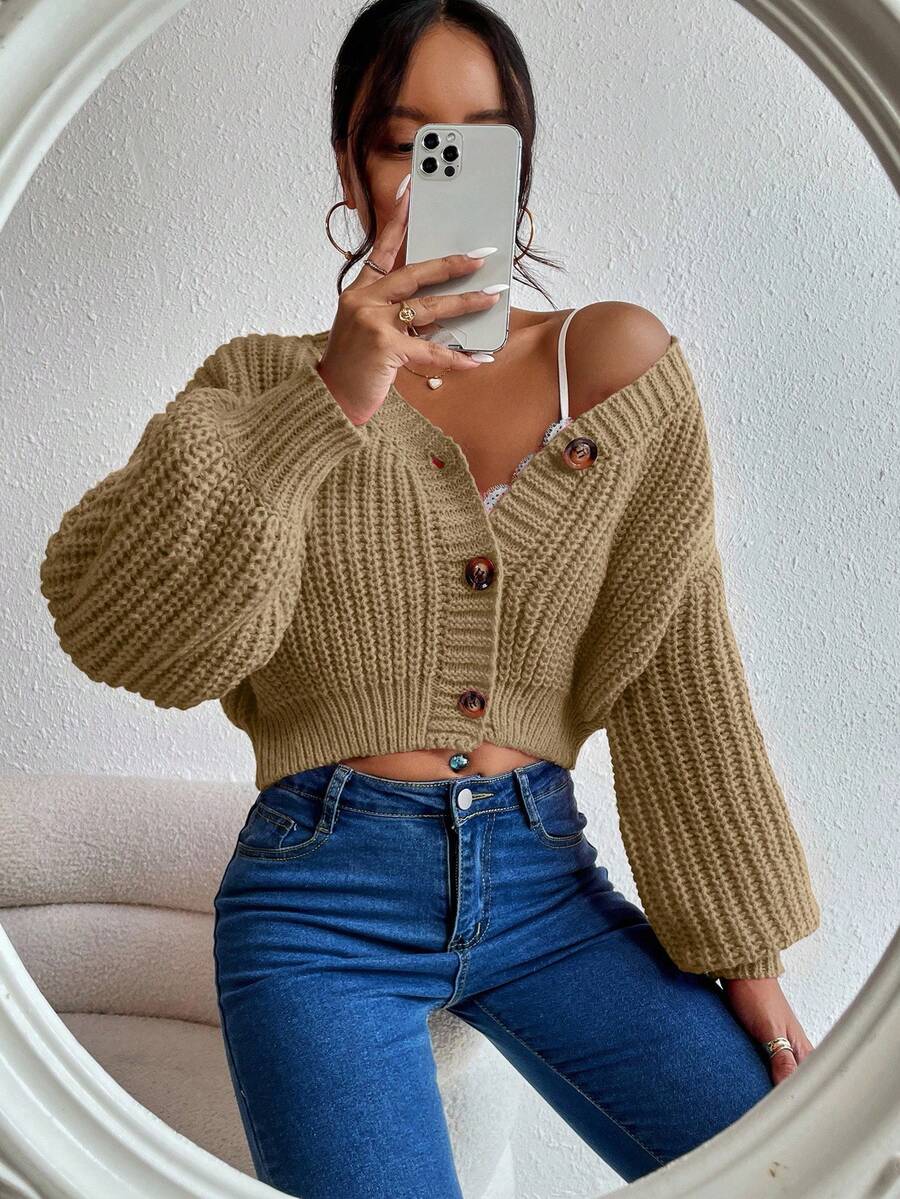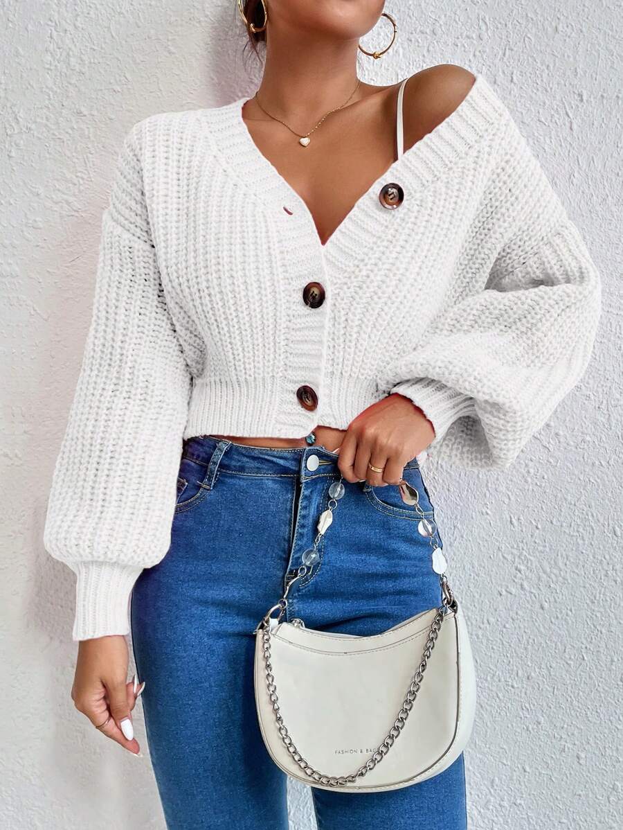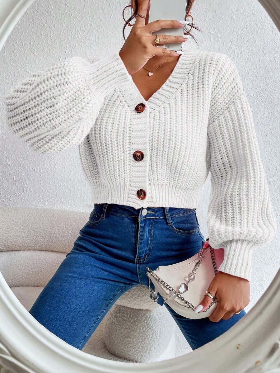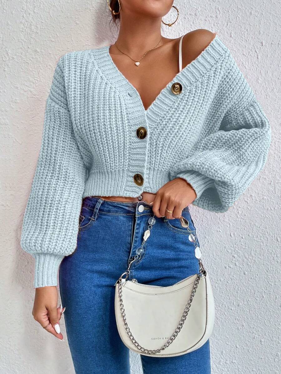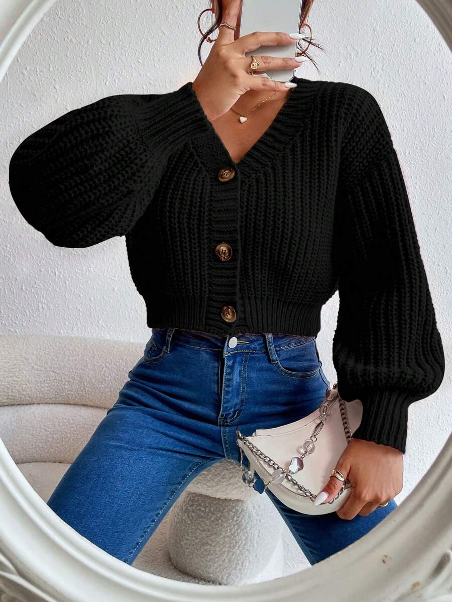 Cardigan casual da donna con bottoni sulla parte anteriore e maniche lunghe, di colore unito