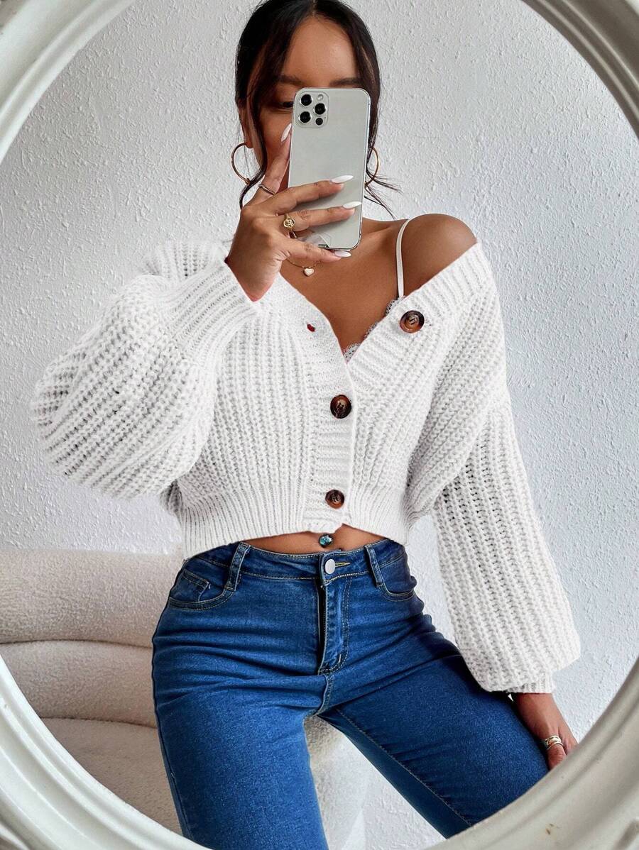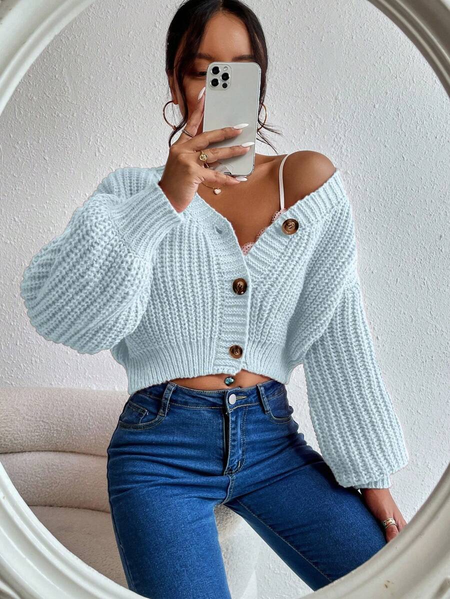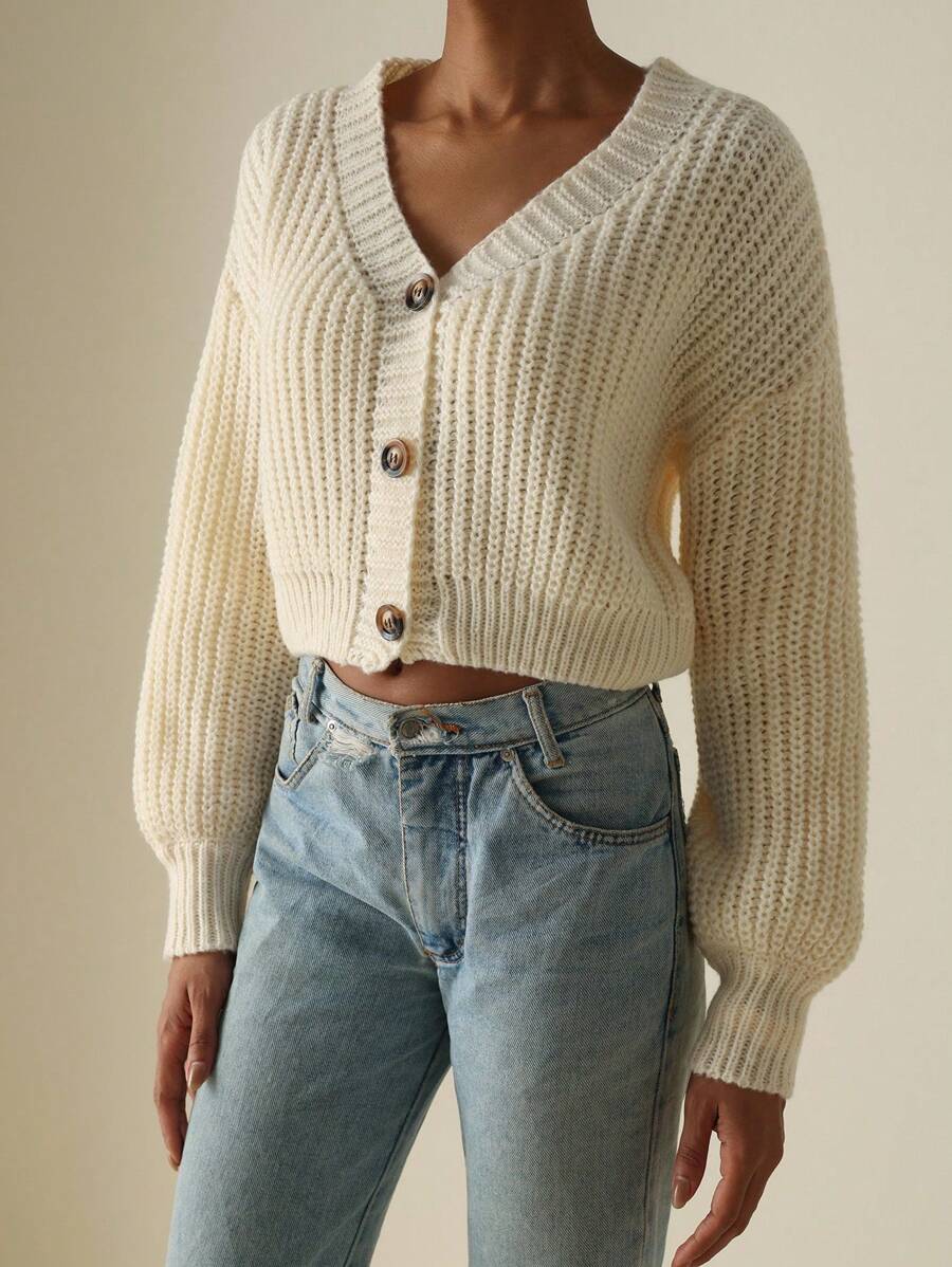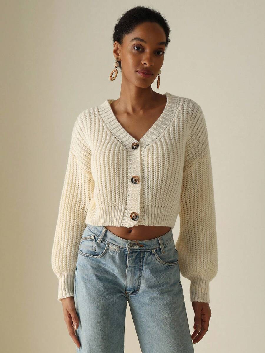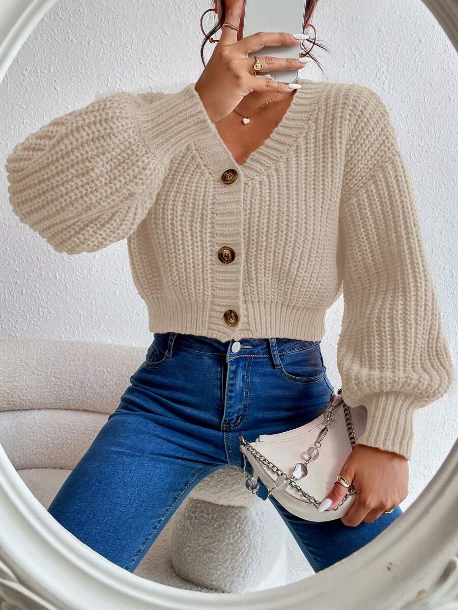 Cardigan casual da donna con bottoni sulla parte anteriore e maniche lunghe, di colore unito