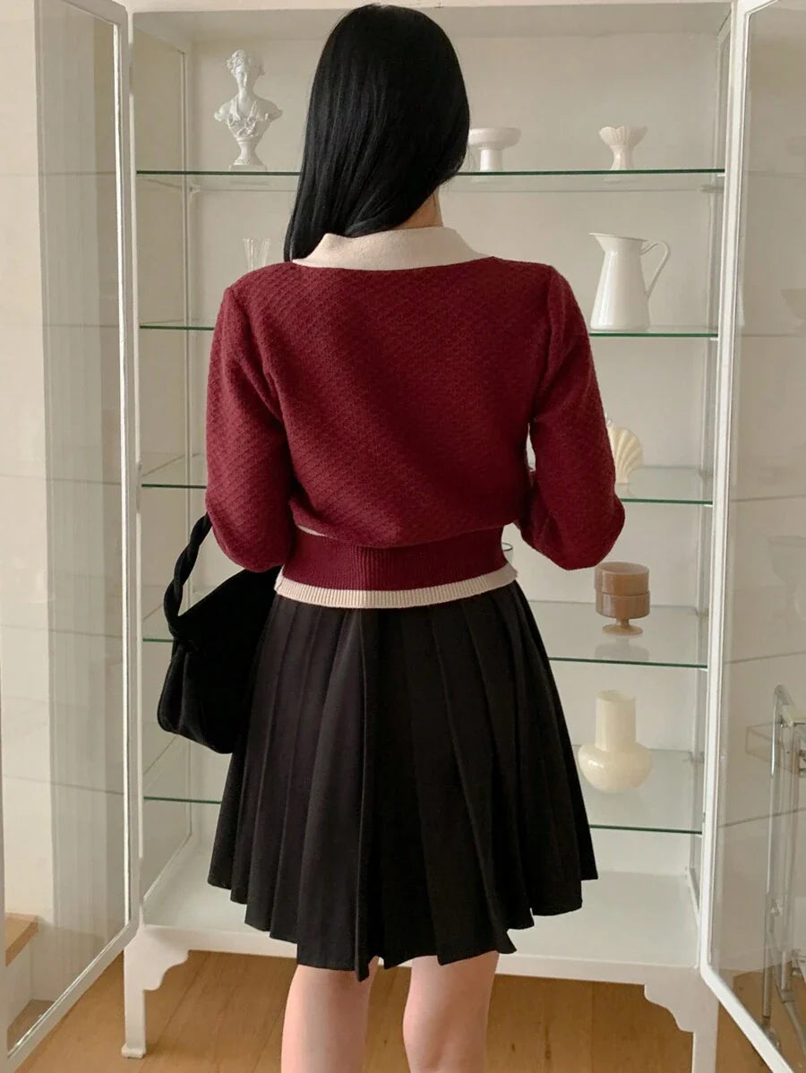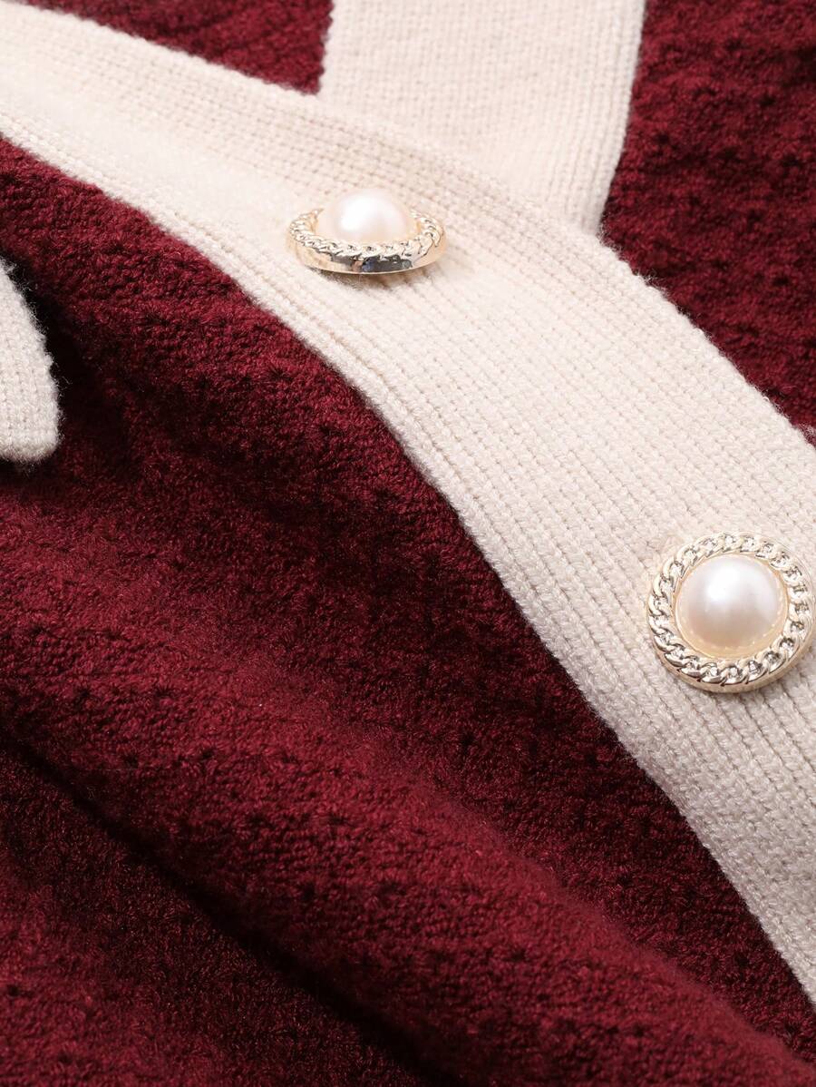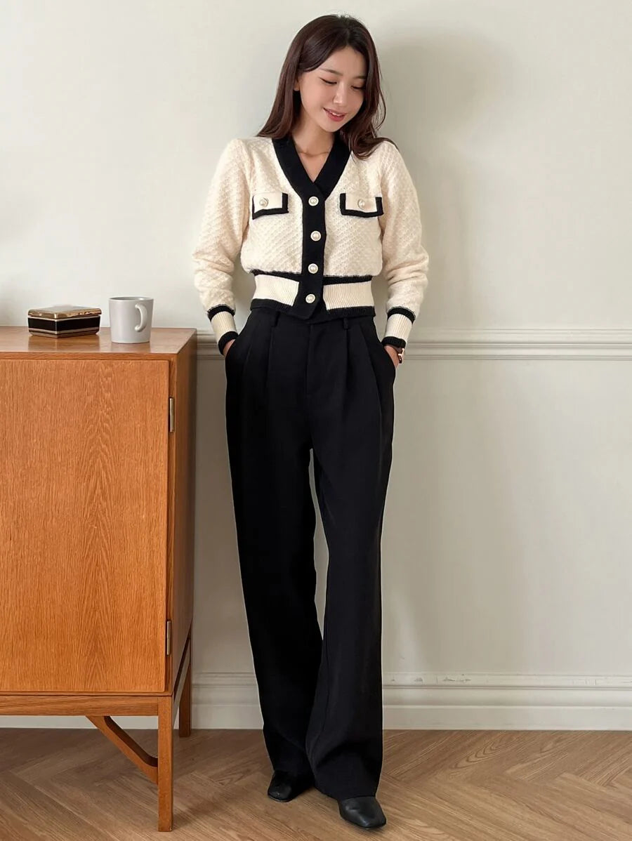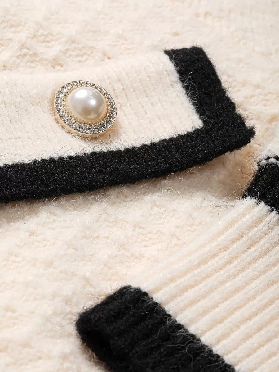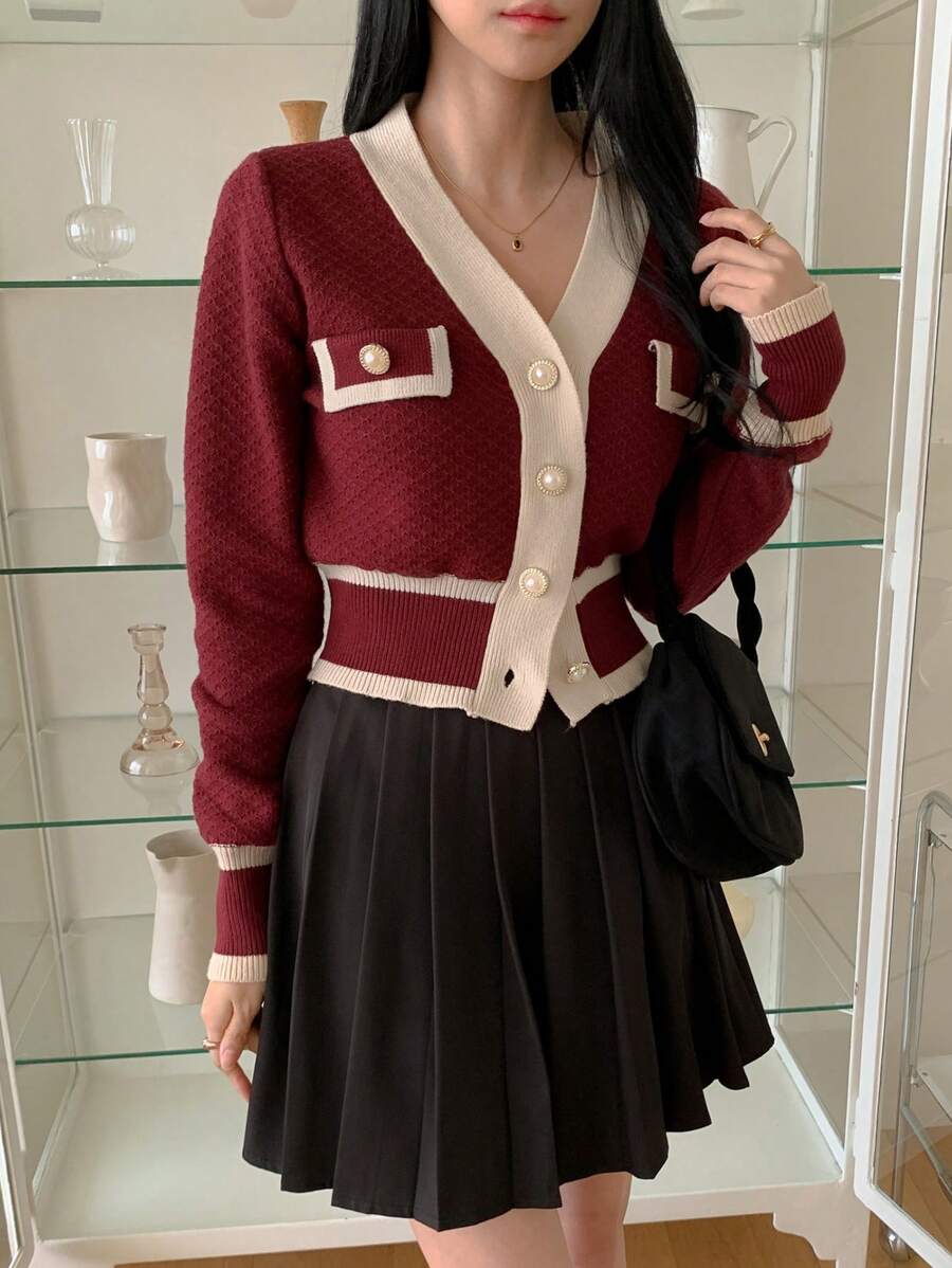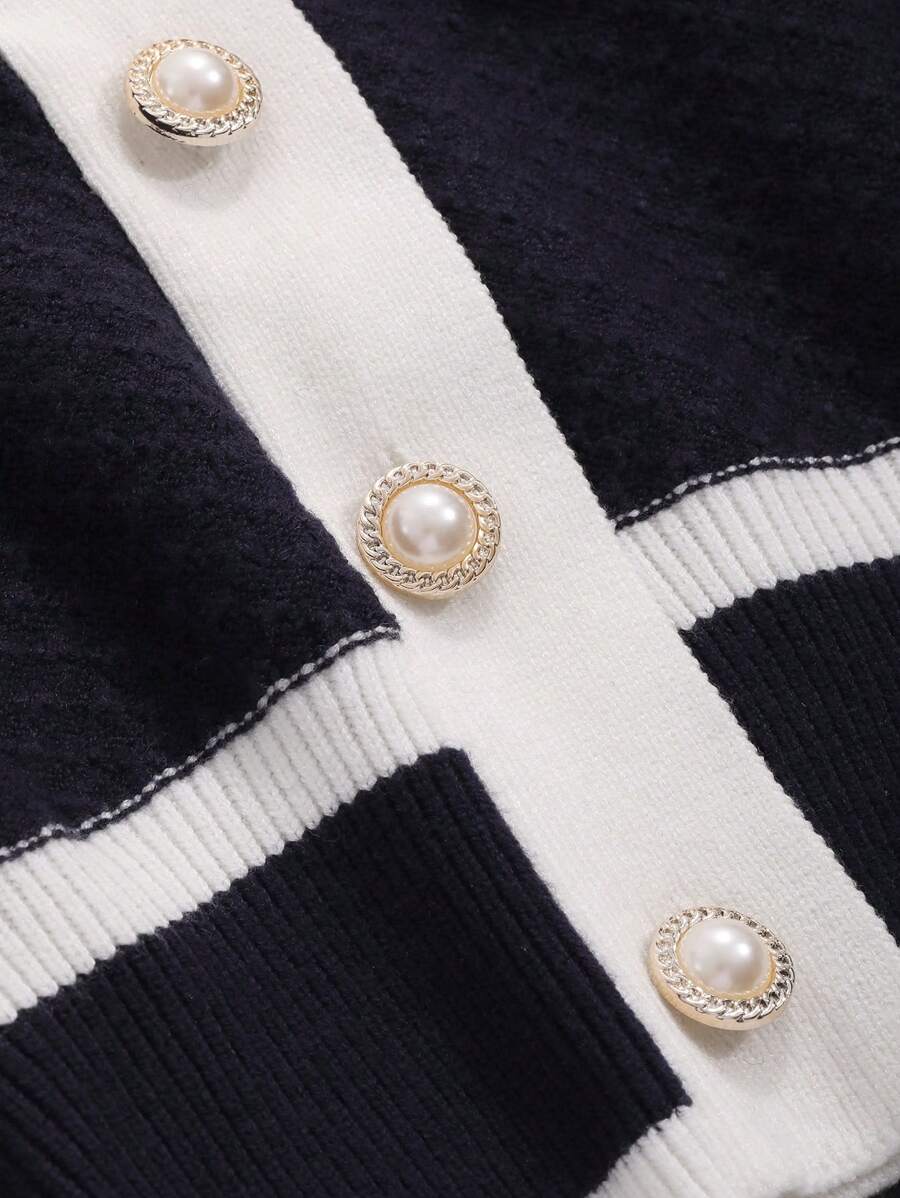 Cardigan con bottoni e bordi a contrasto, top a maniche lunghe