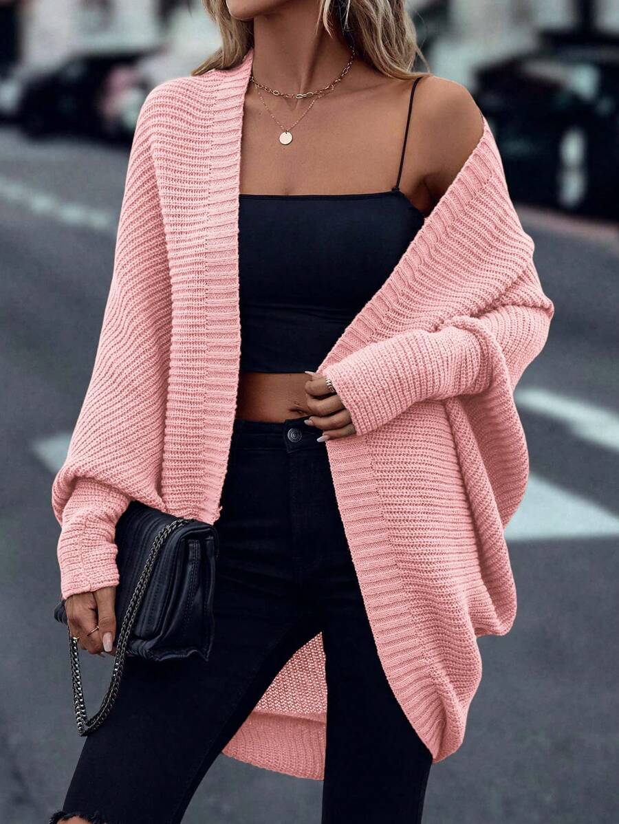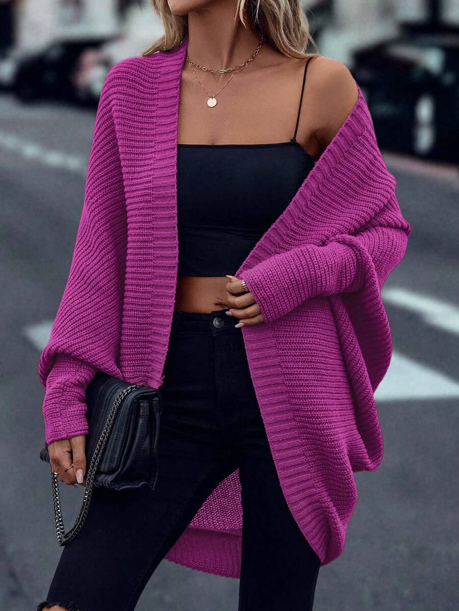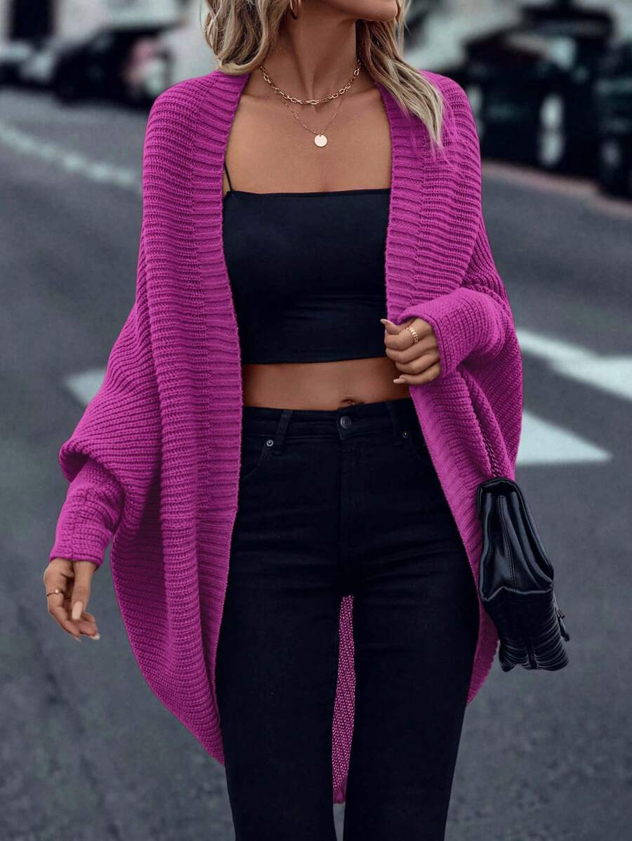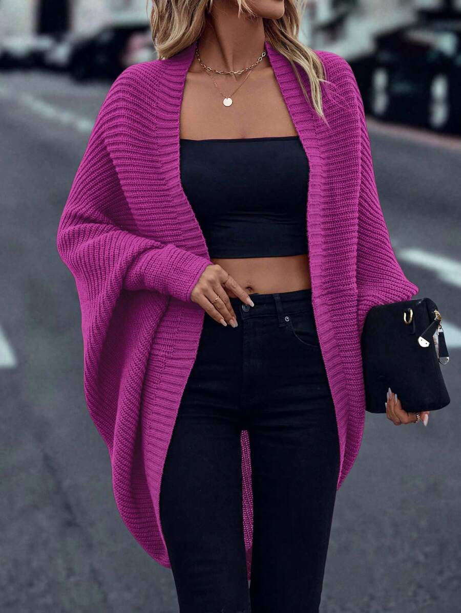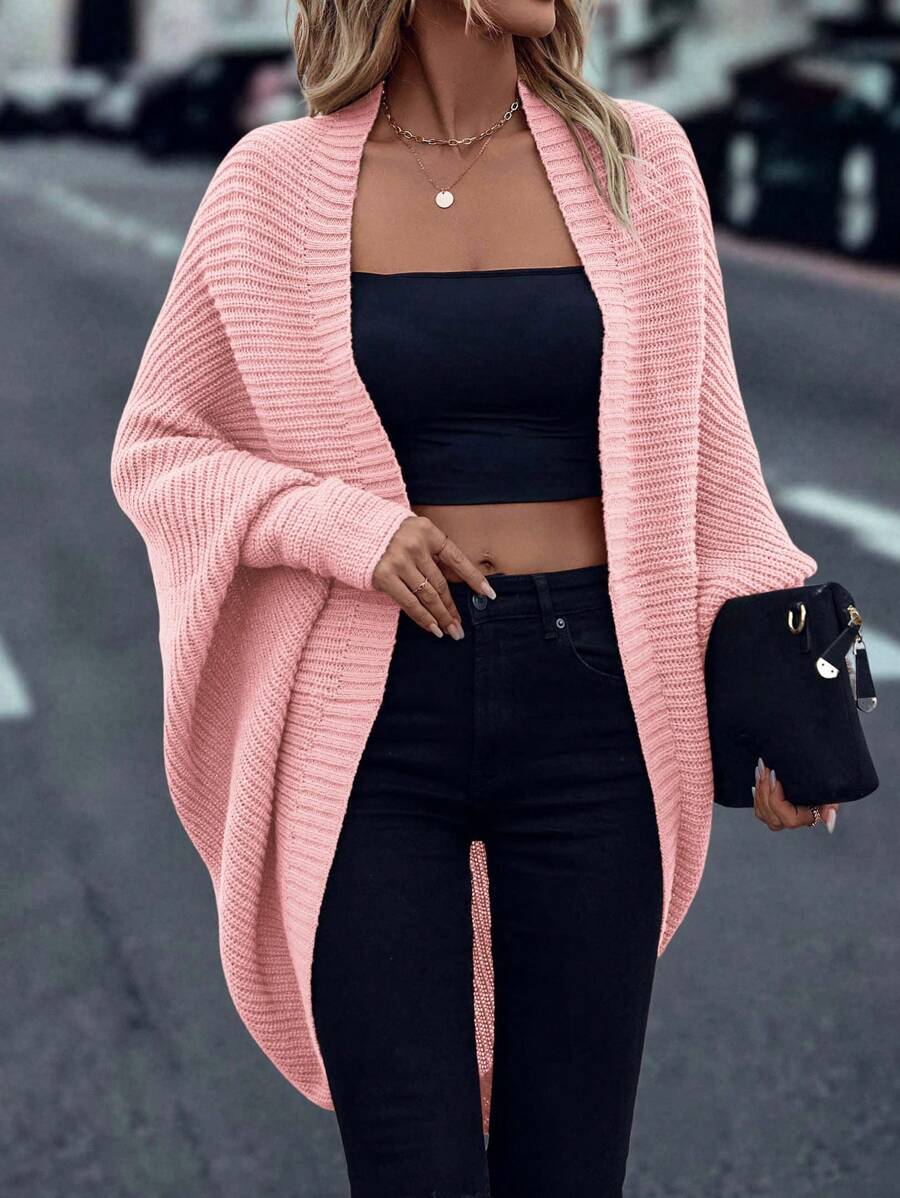 Cardigan in maglia casual versatile a tinta unita con orlo asimmetrico