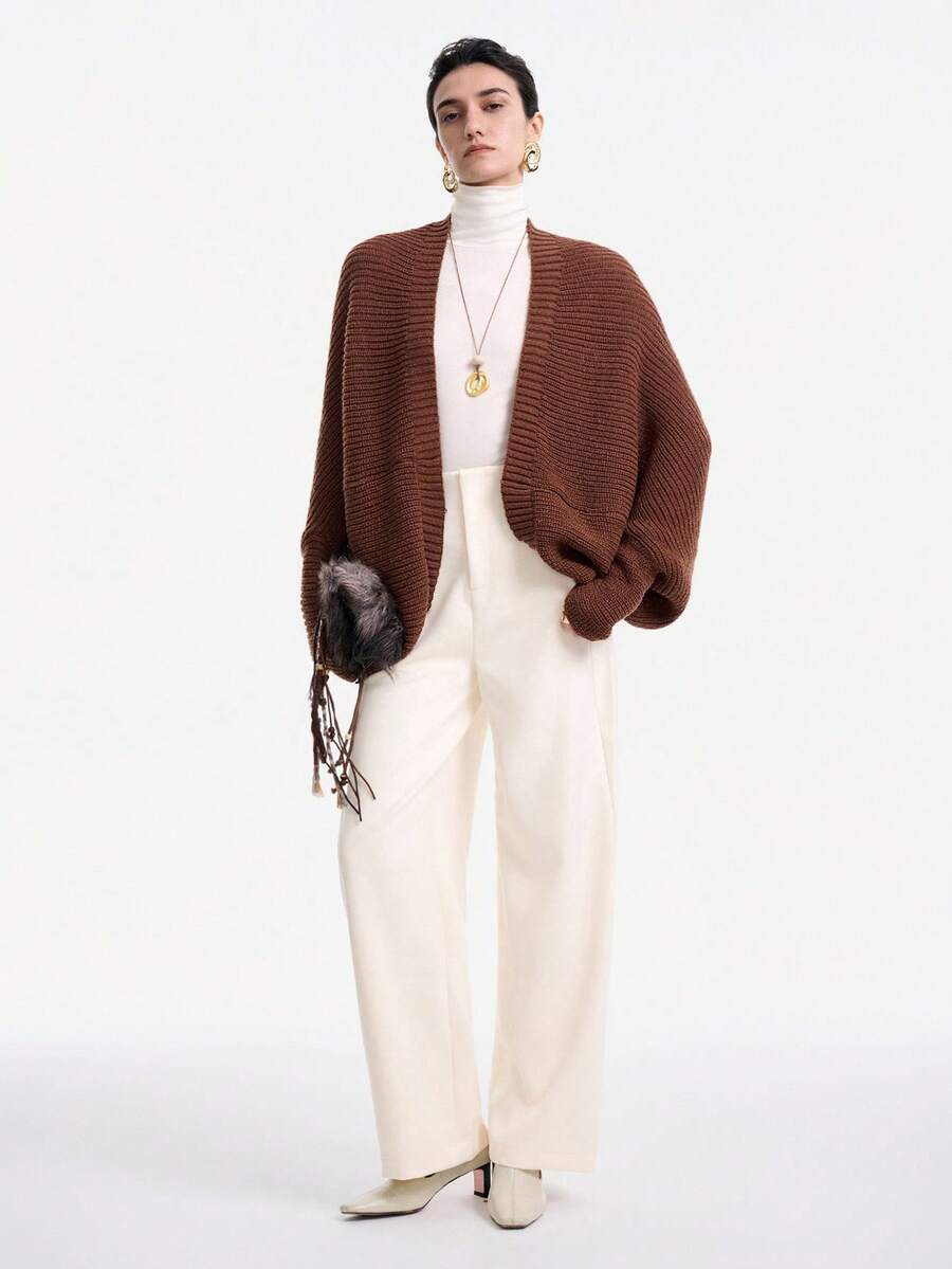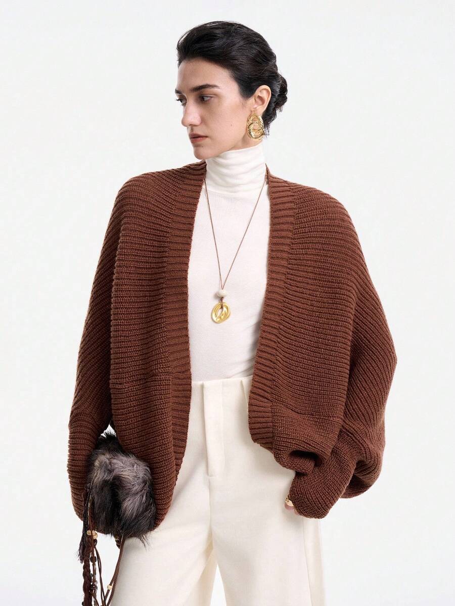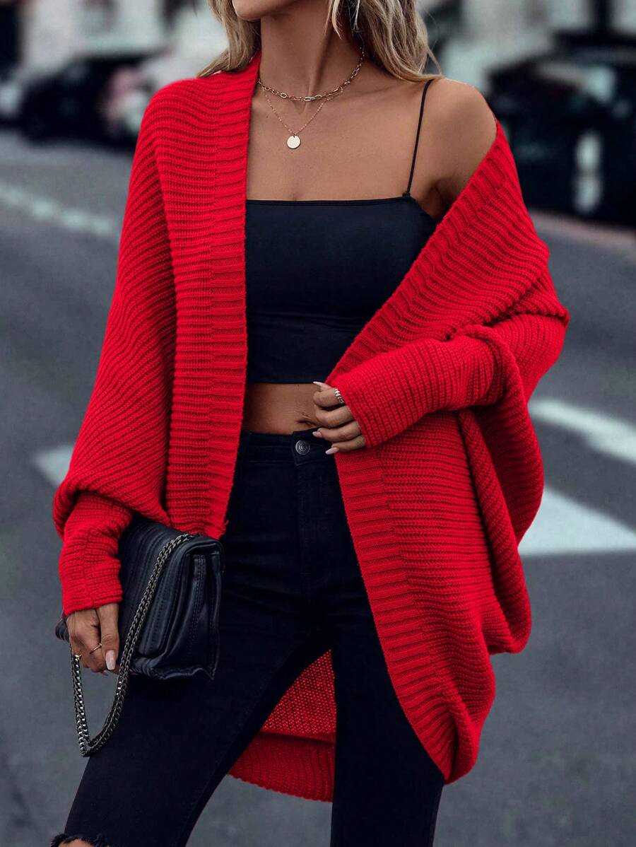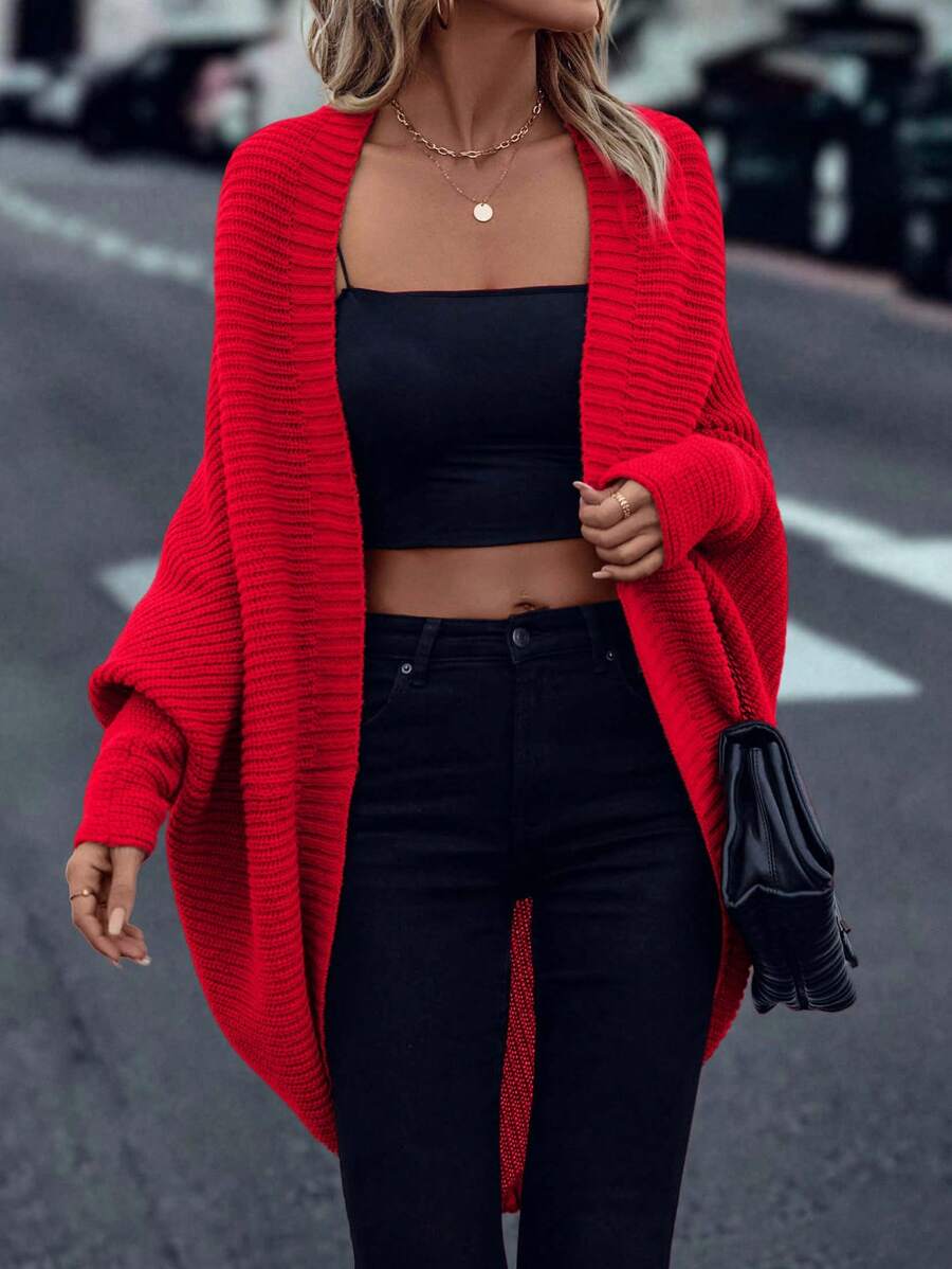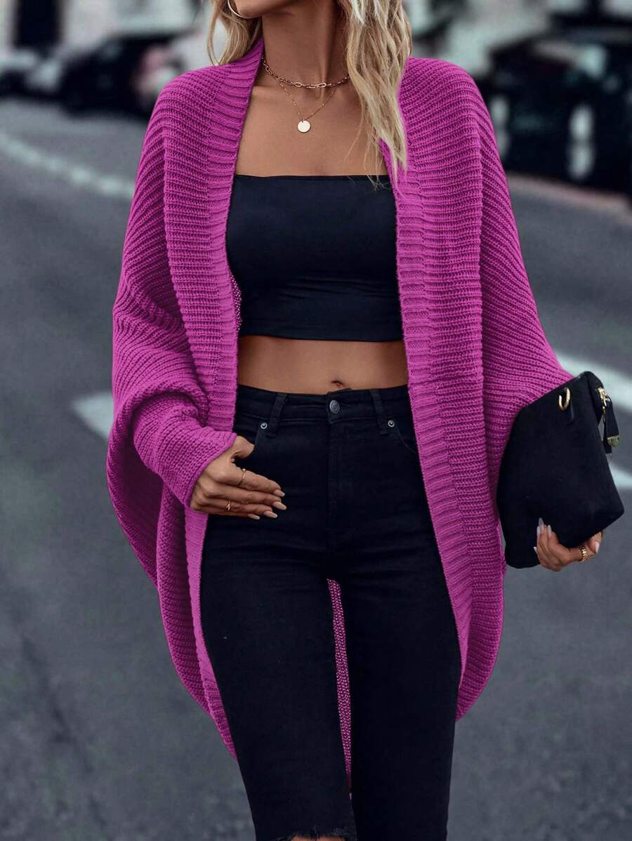 Cardigan in maglia casual versatile a tinta unita con orlo asimmetrico