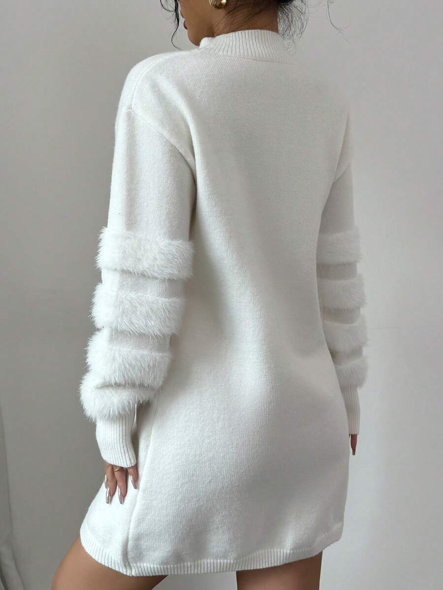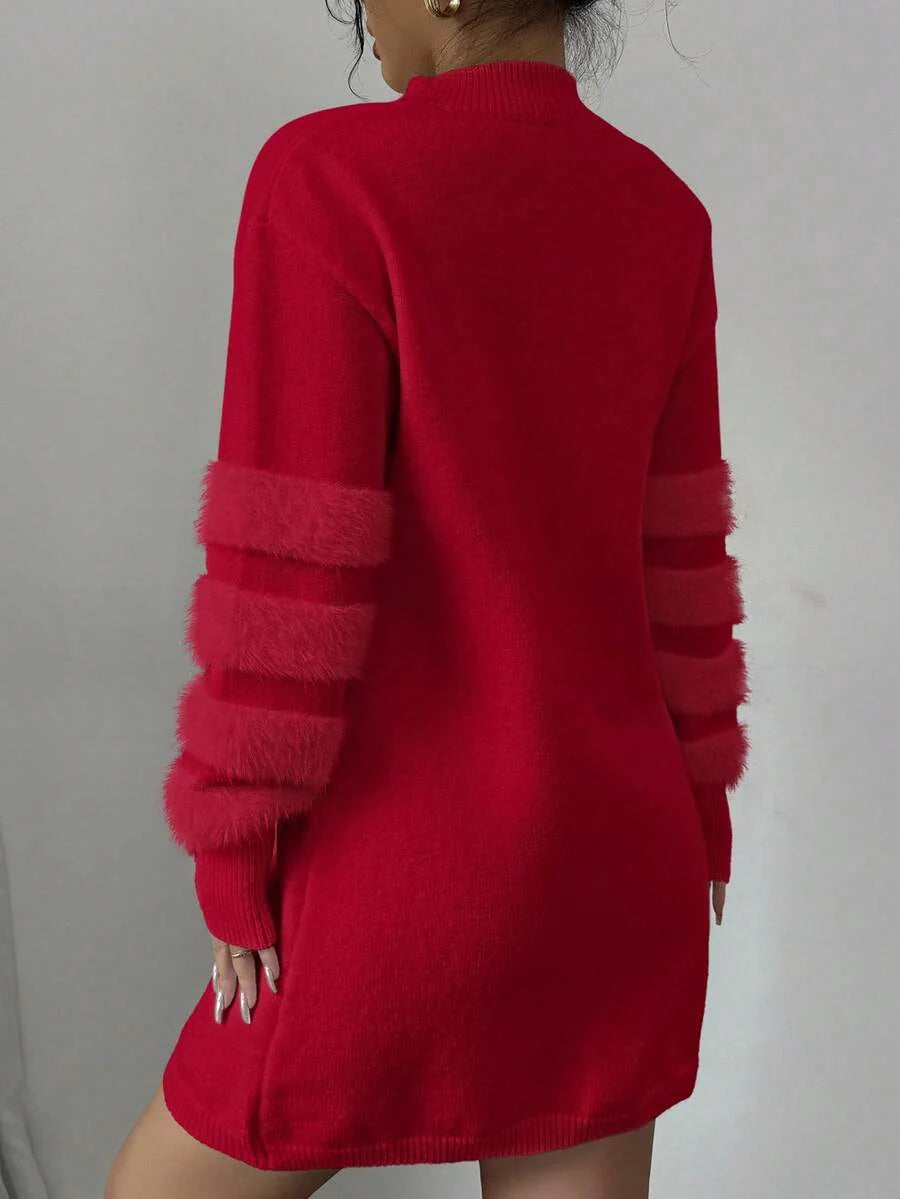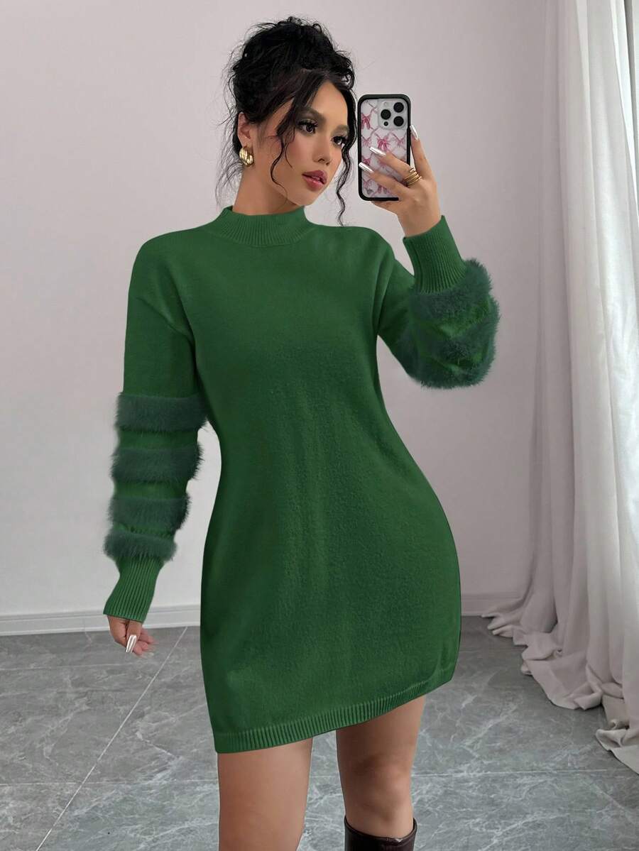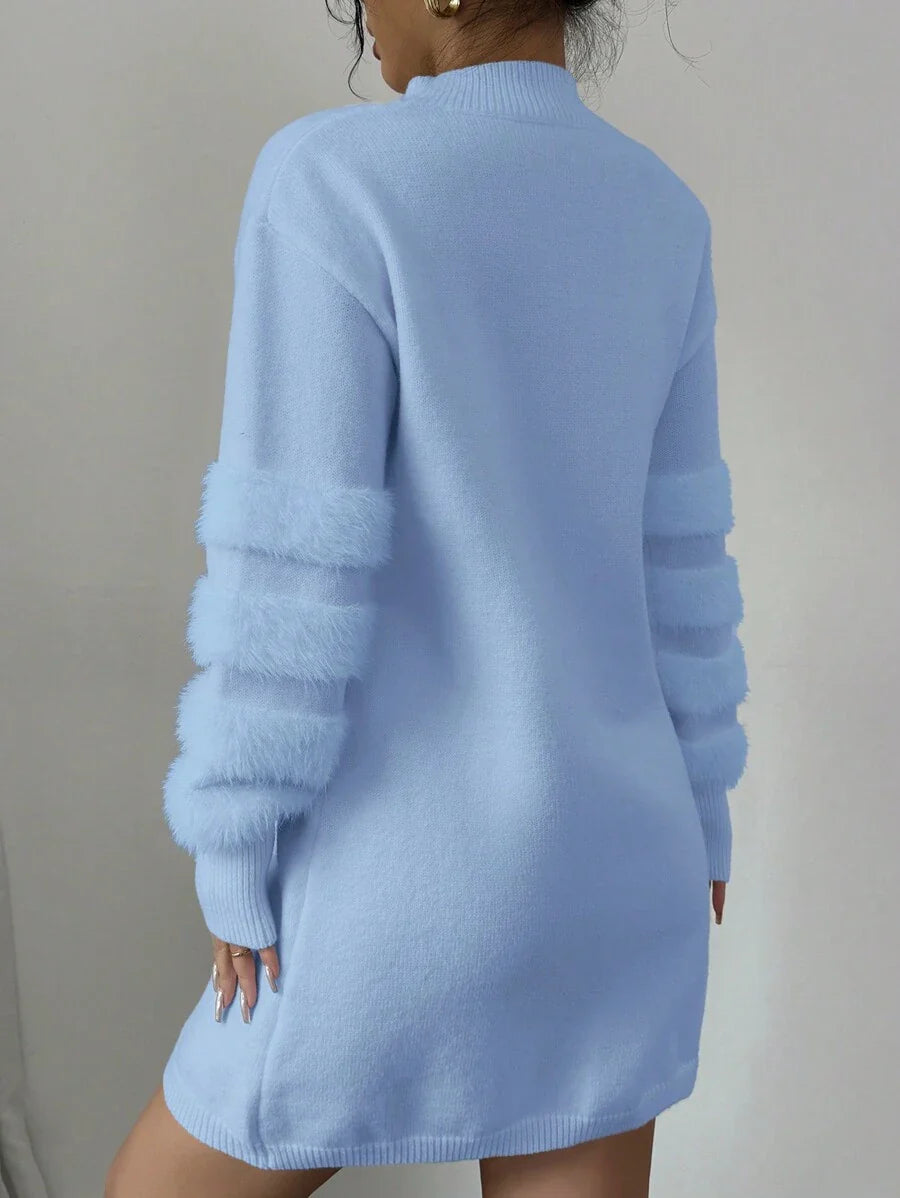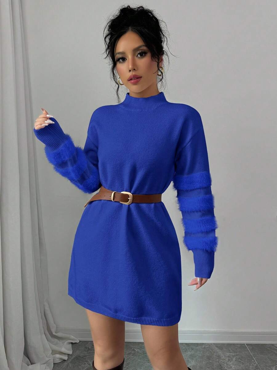 Abito maglione corto a maniche lunghe in maglia a collo alto, in tinta unita