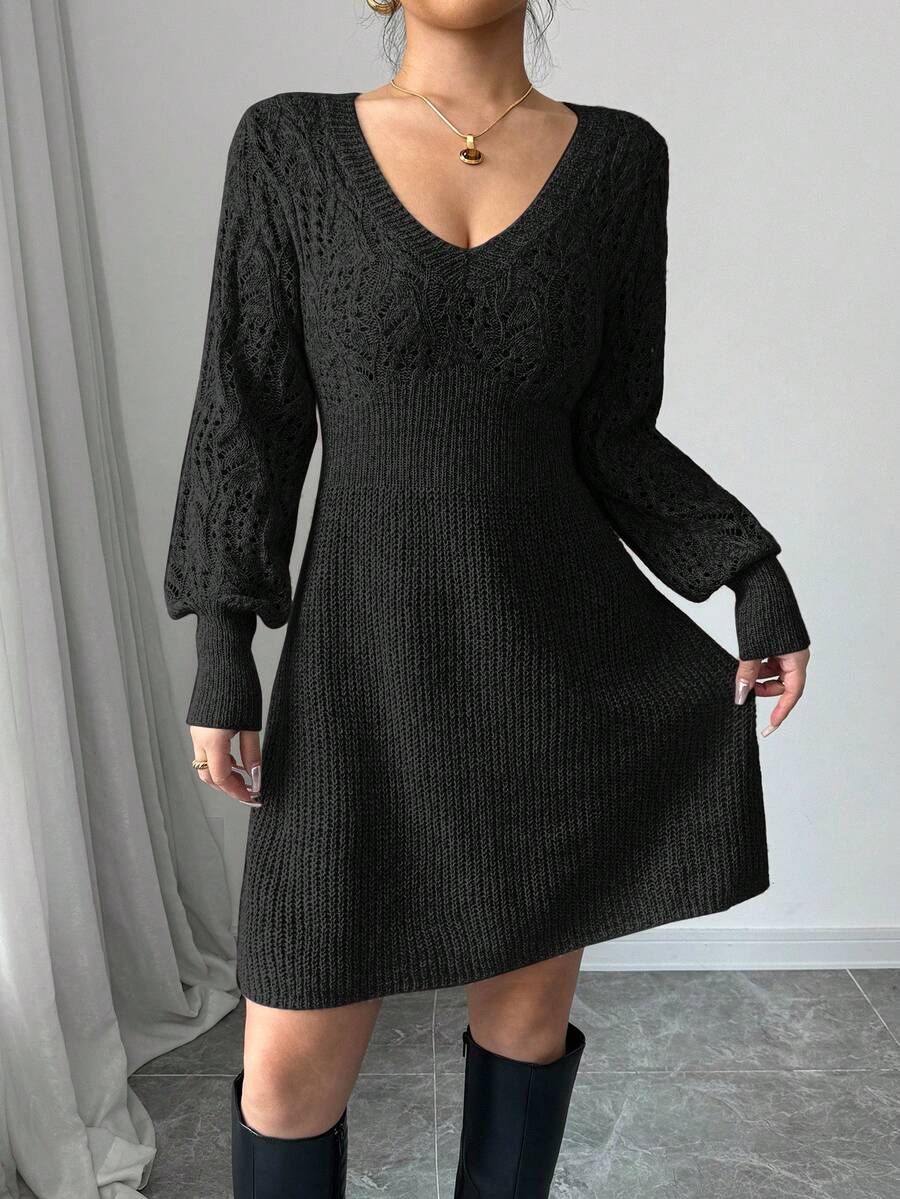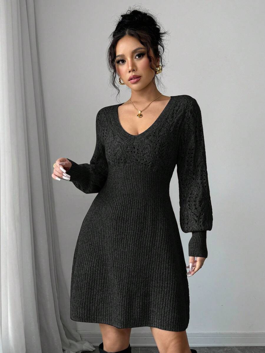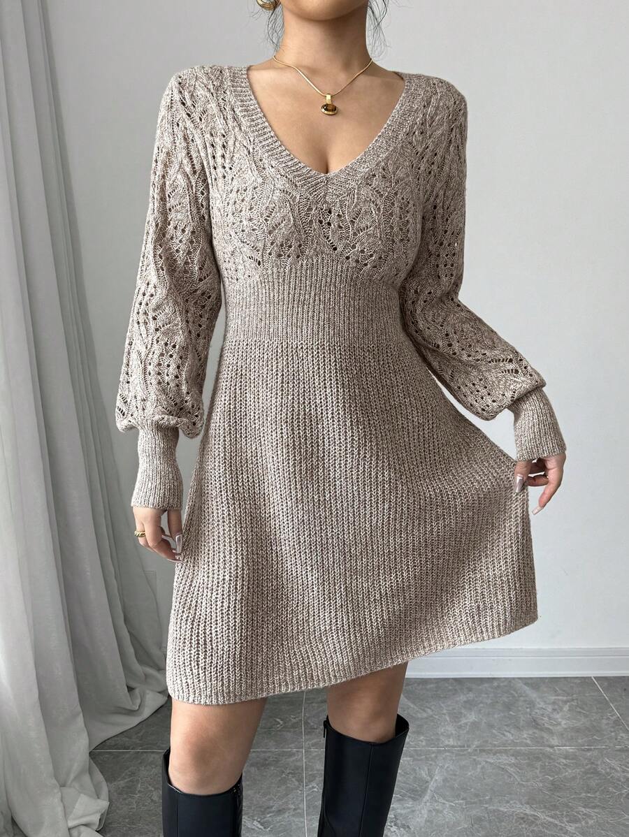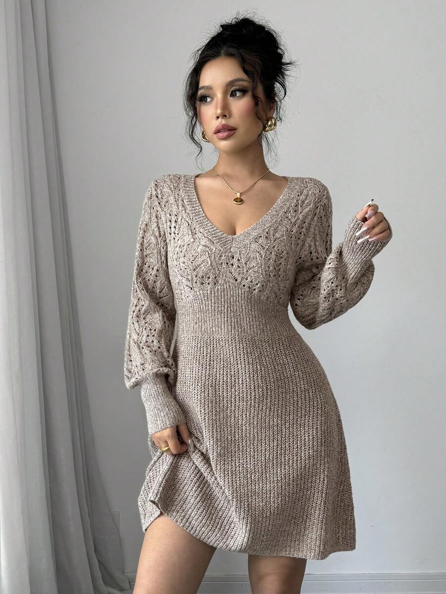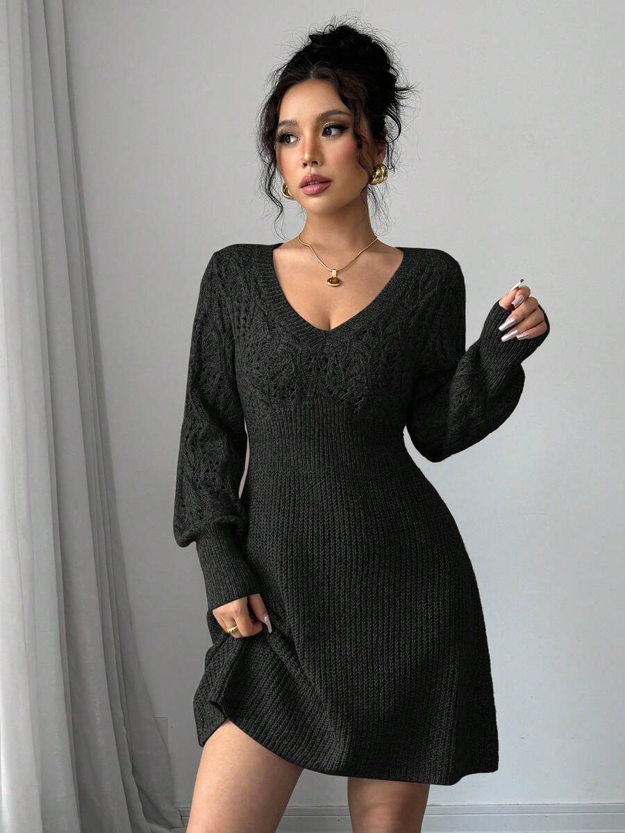 Abito-maglione corto da donna con maniche lunghe e scollo a cuore