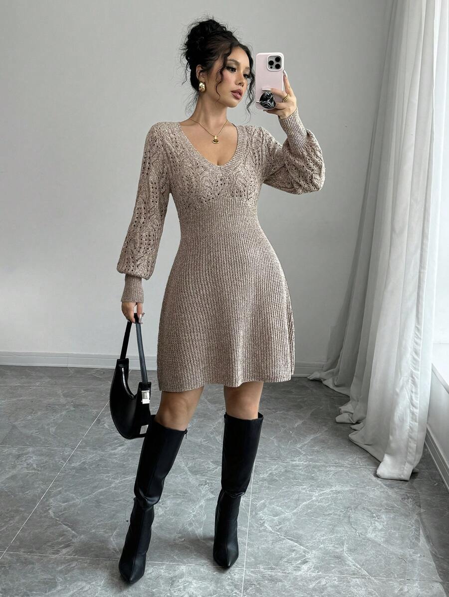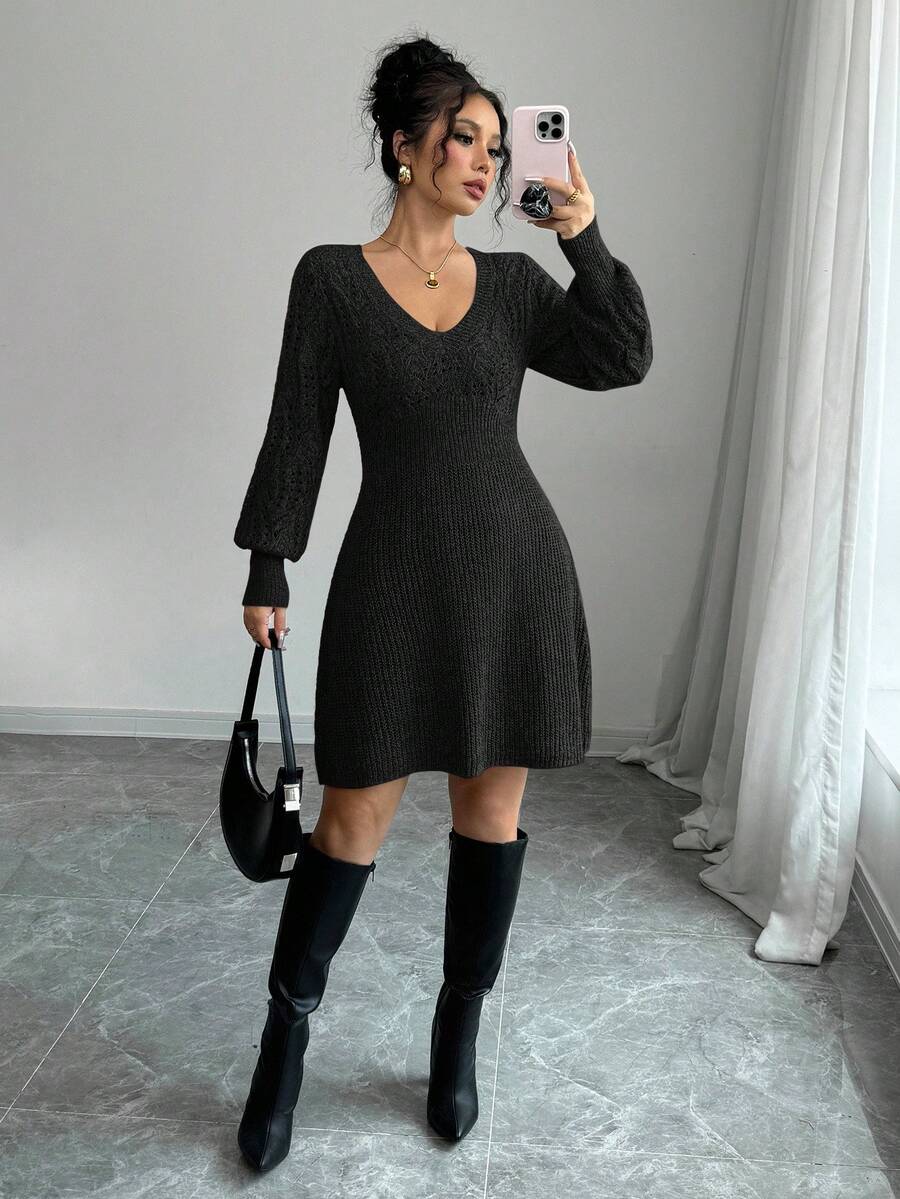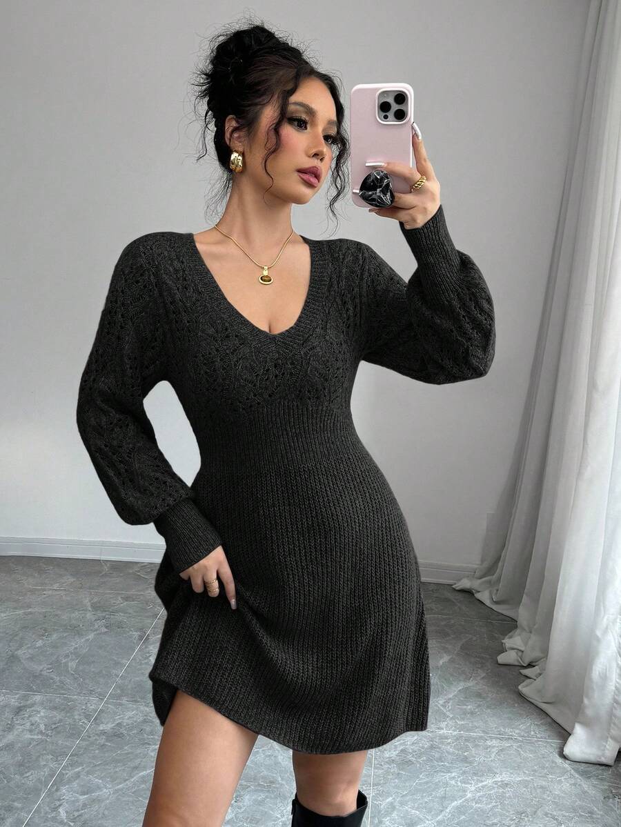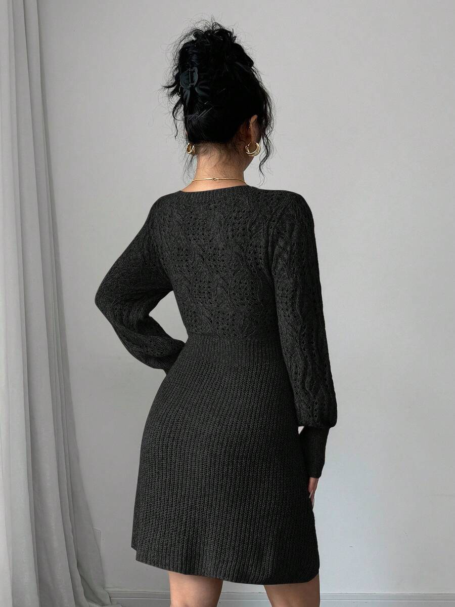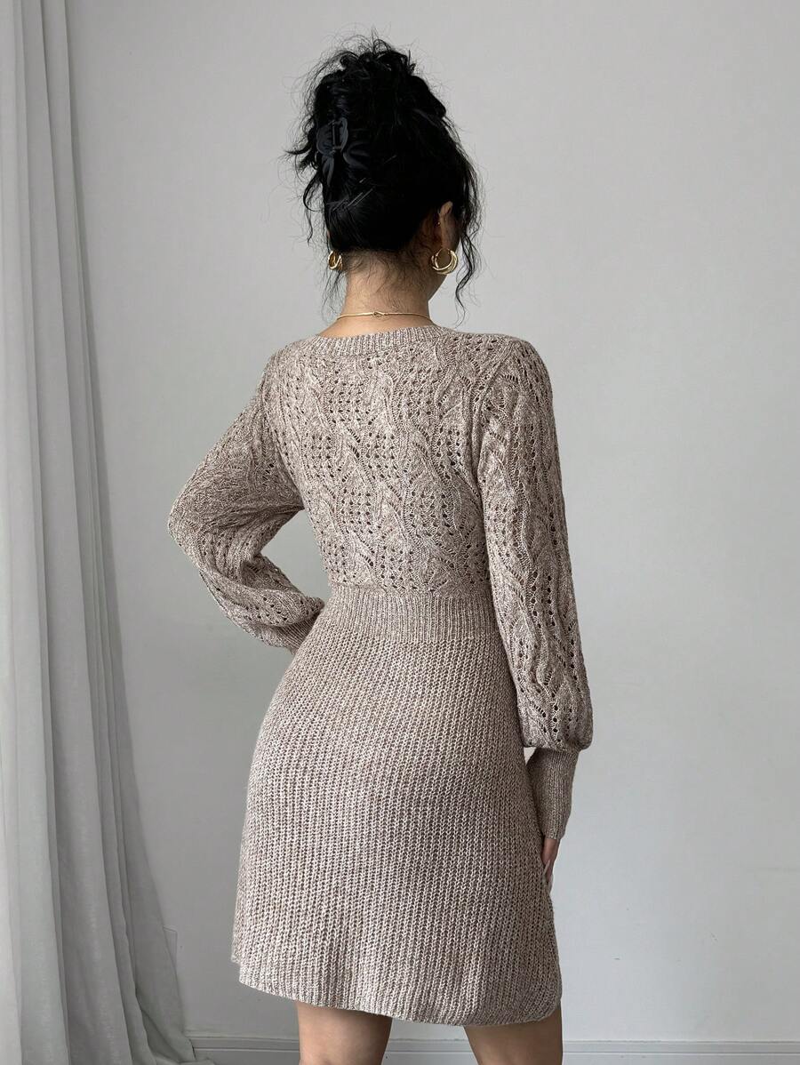 Abito-maglione corto da donna con maniche lunghe e scollo a cuore