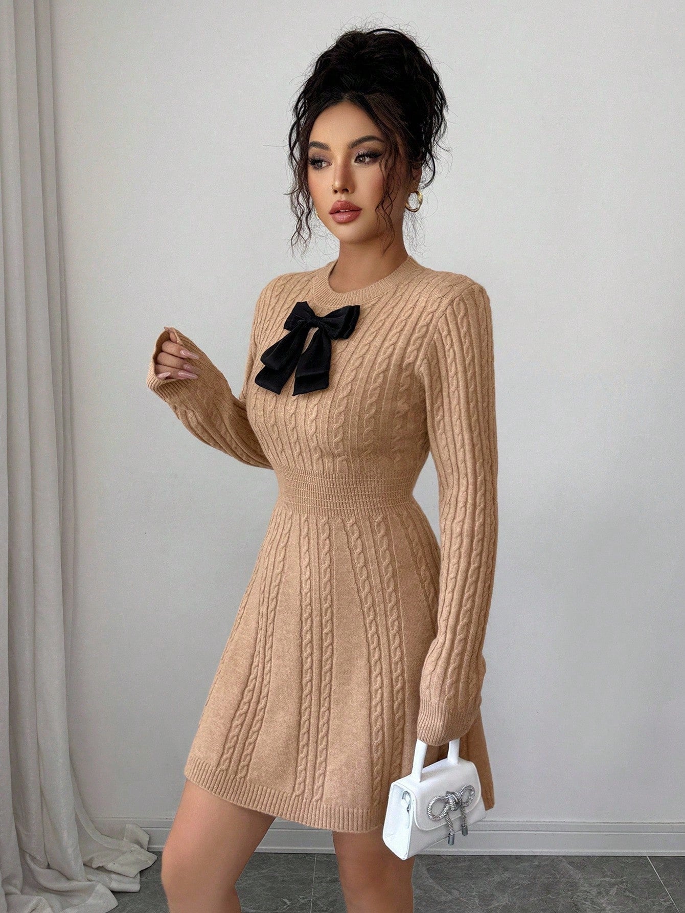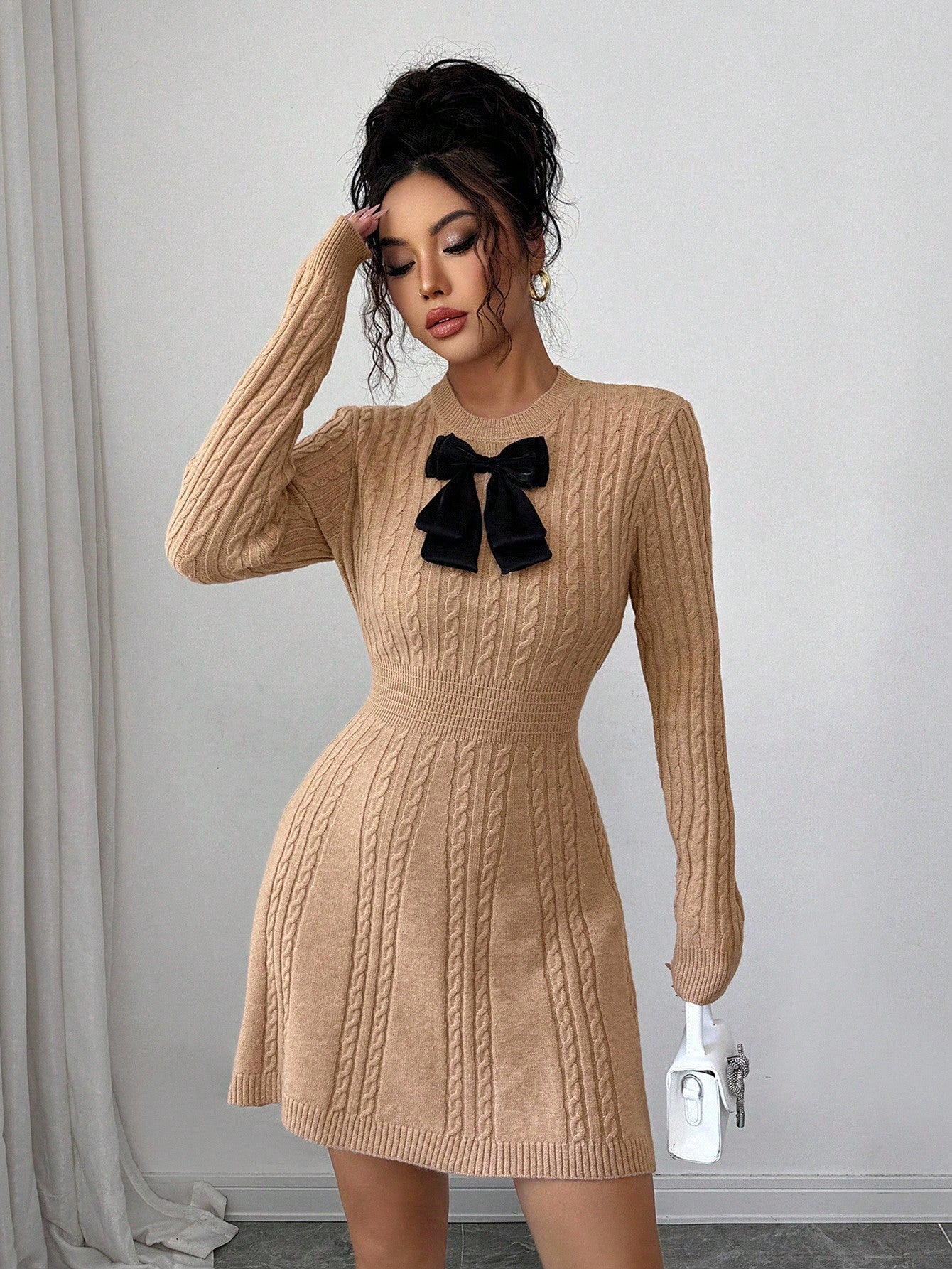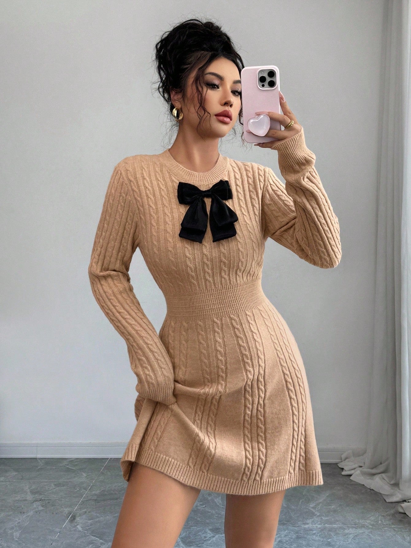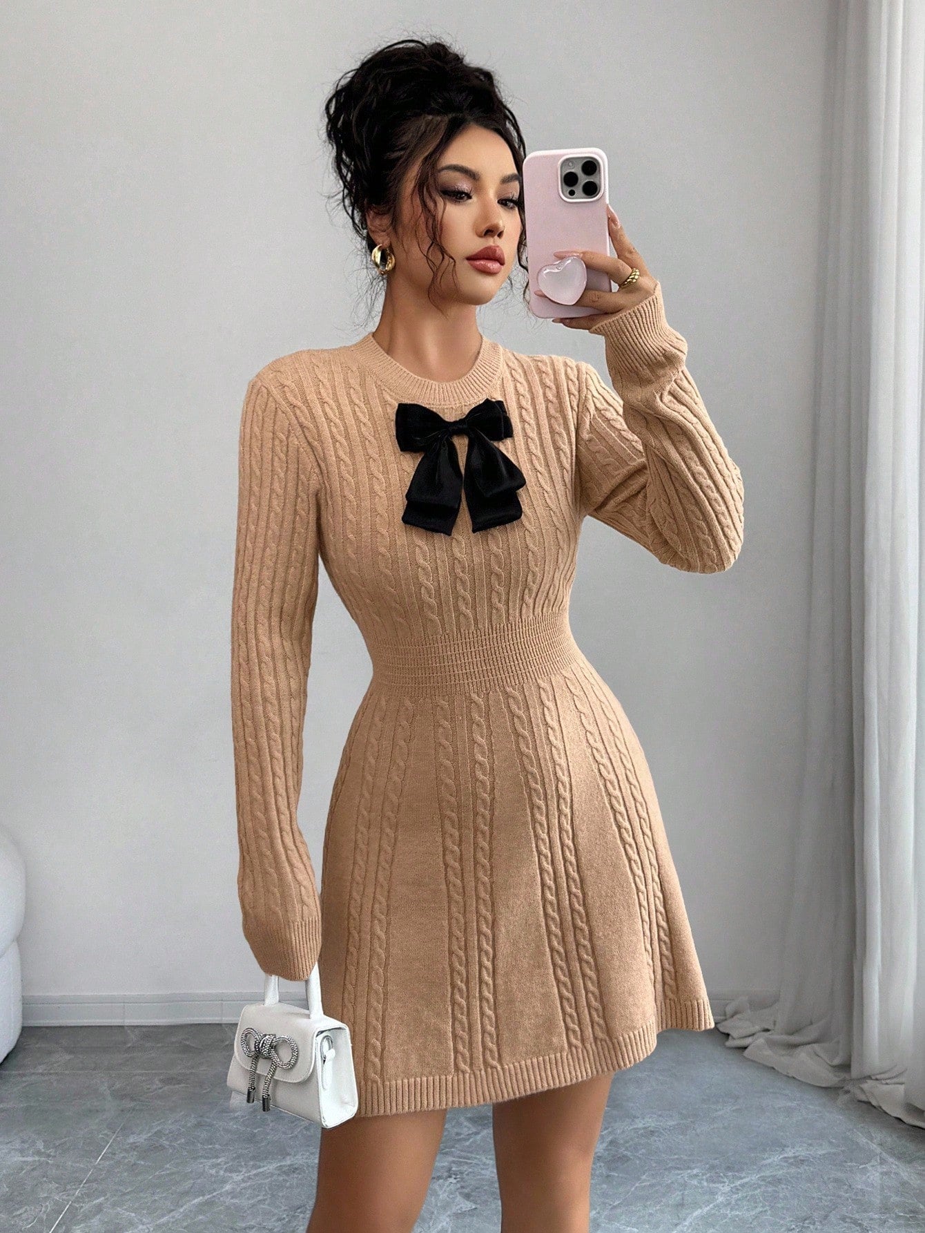 Abito-maglione elegante da donna con decorazione a farfalla, lavorazione a costine, aderente
