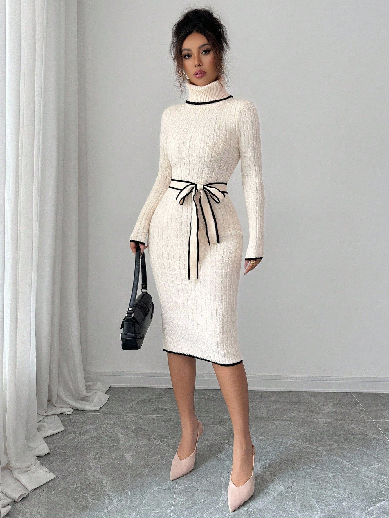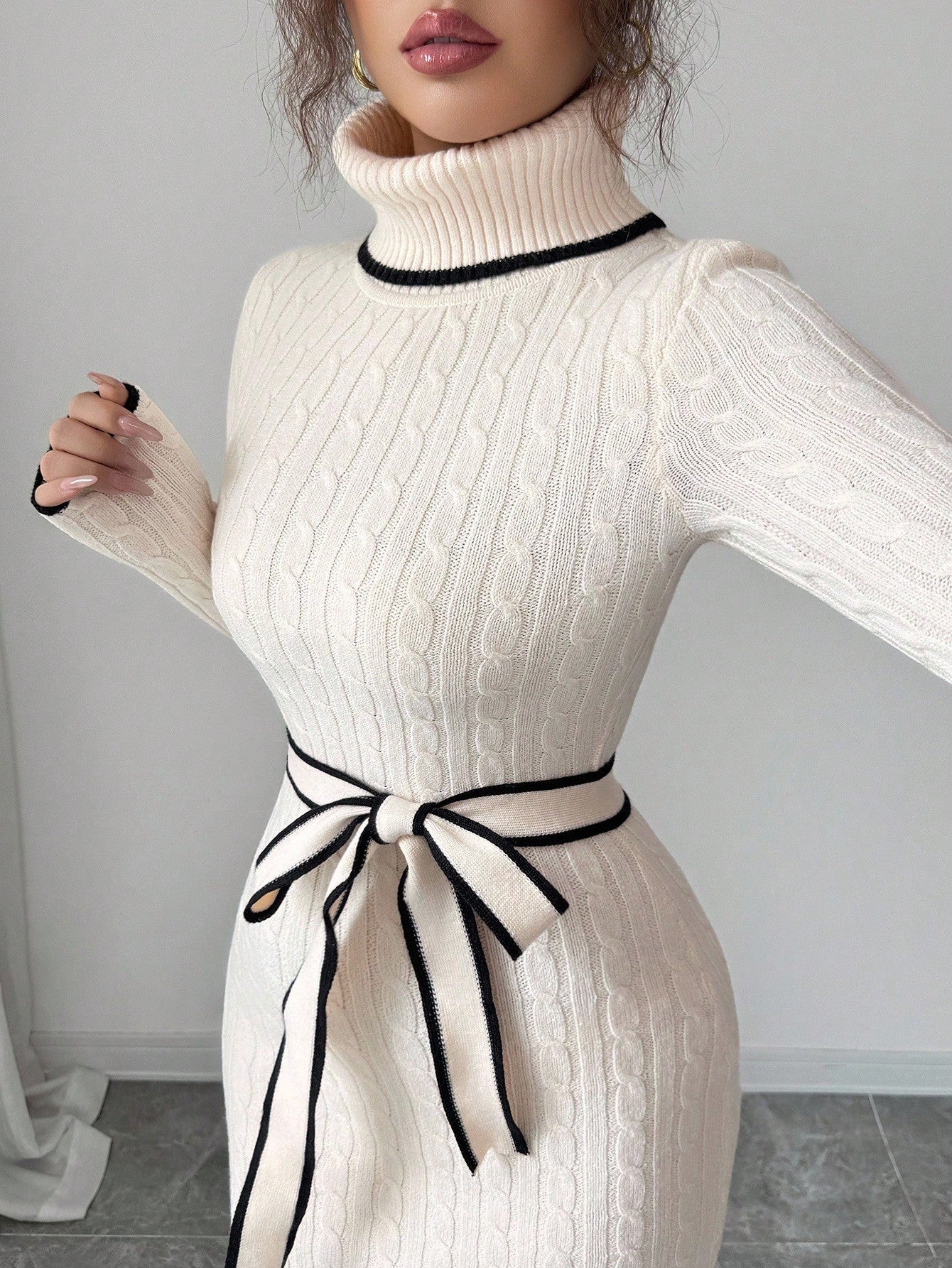 Abito maglione elegante e aderente con costine a torsione, a maniche lunghe