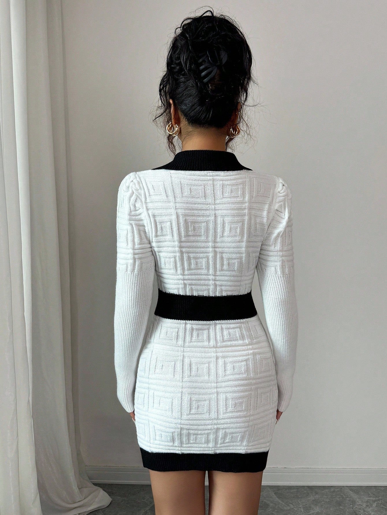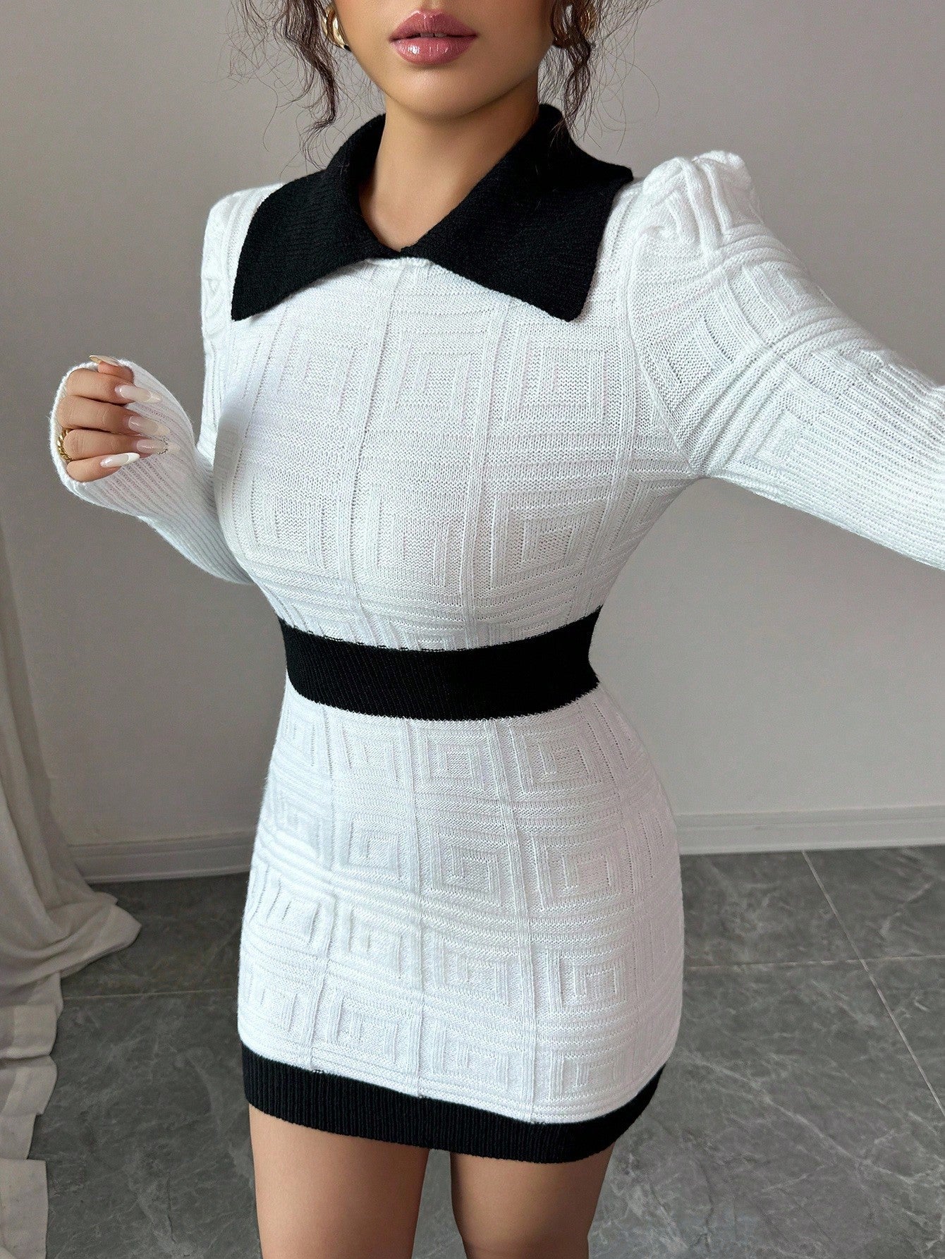 Abito maglione lavorato a maglia con colletto alla moda