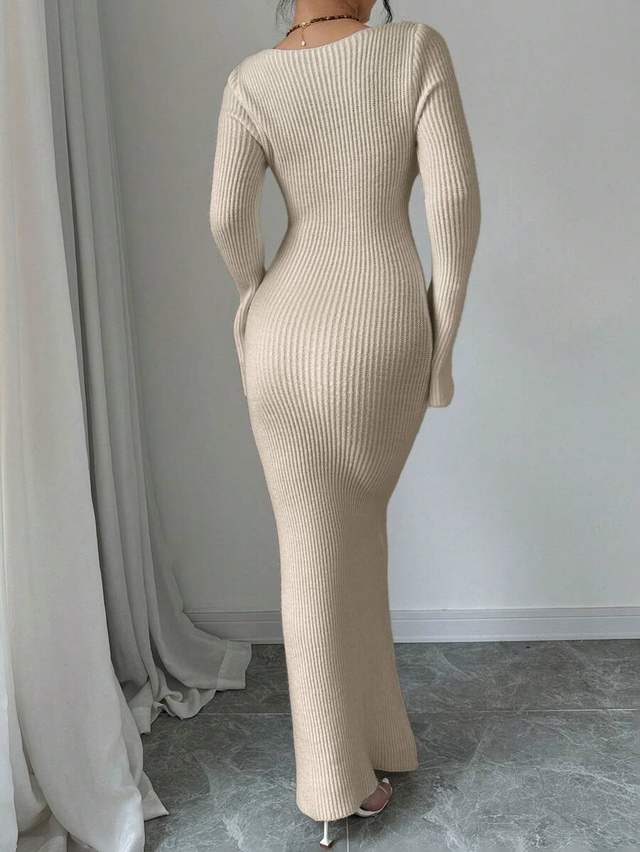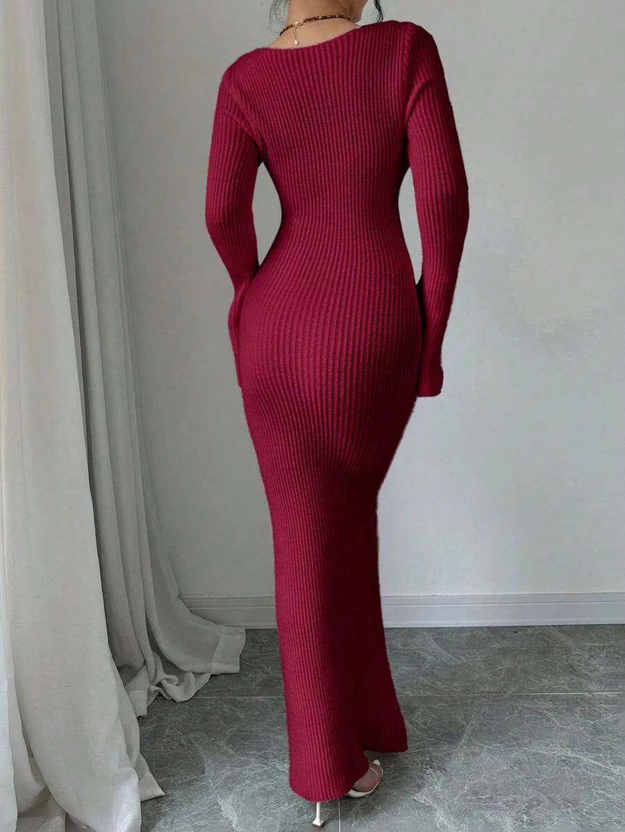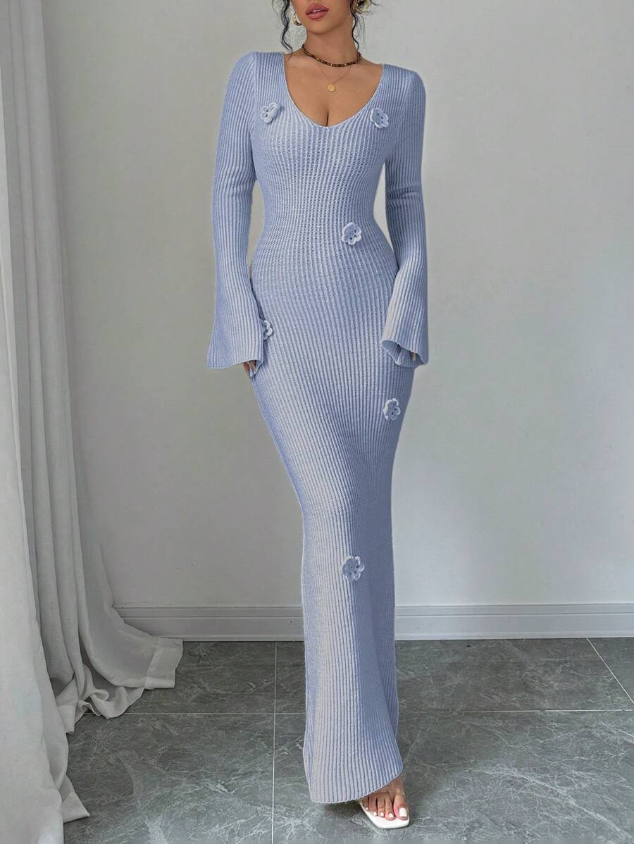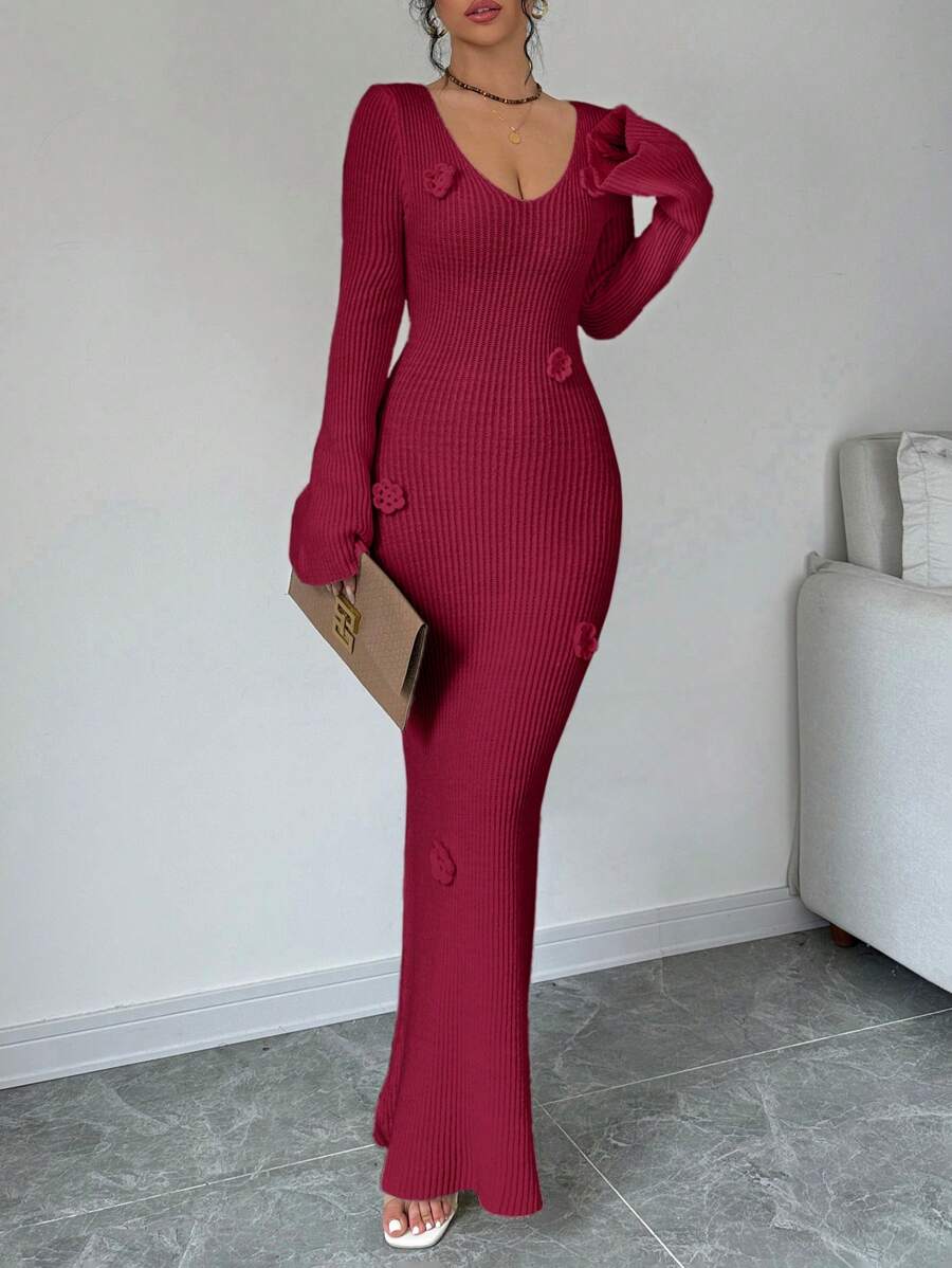 Abito maglione lungo a maniche lunghe con decorazione floreale 3D per donne