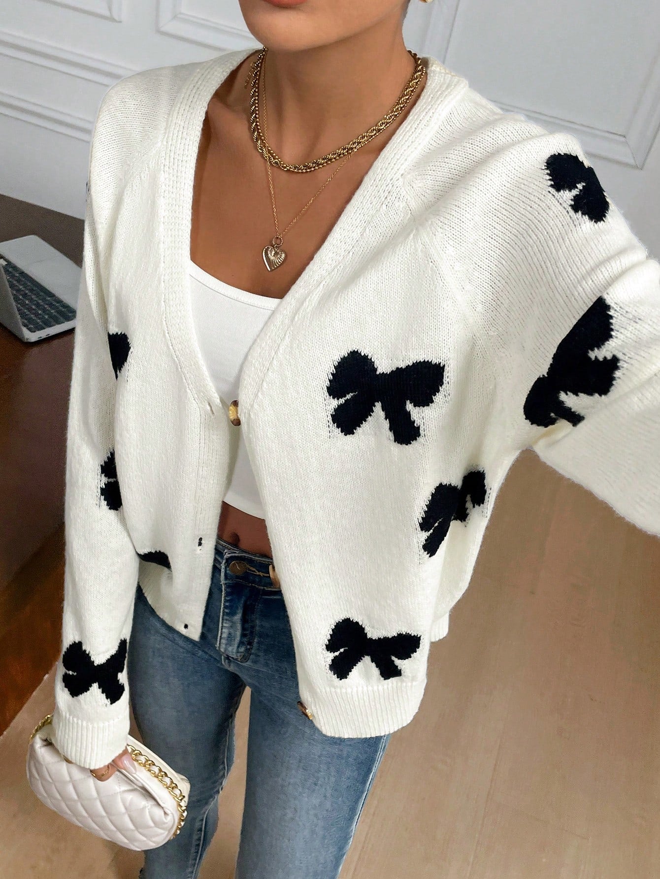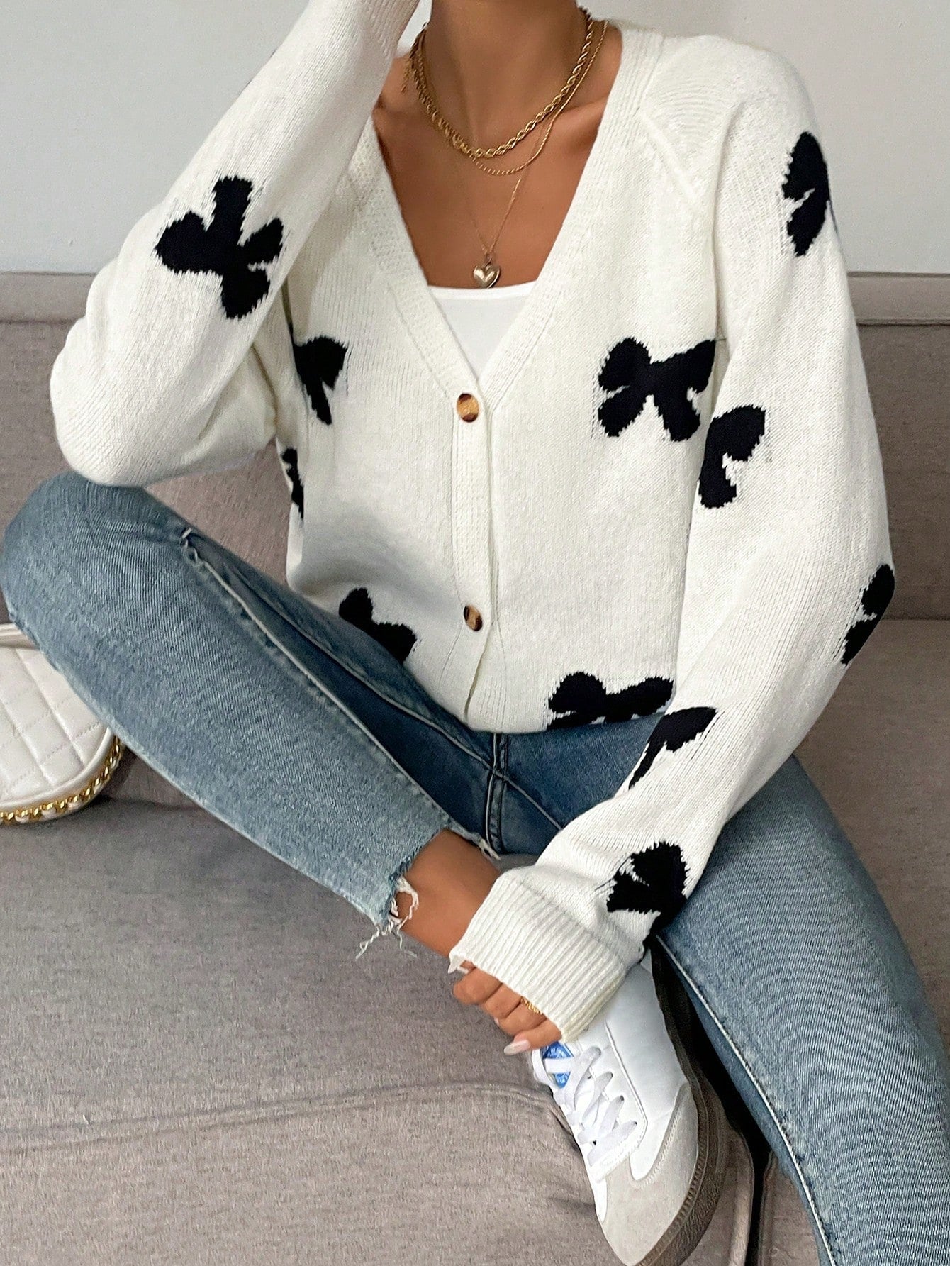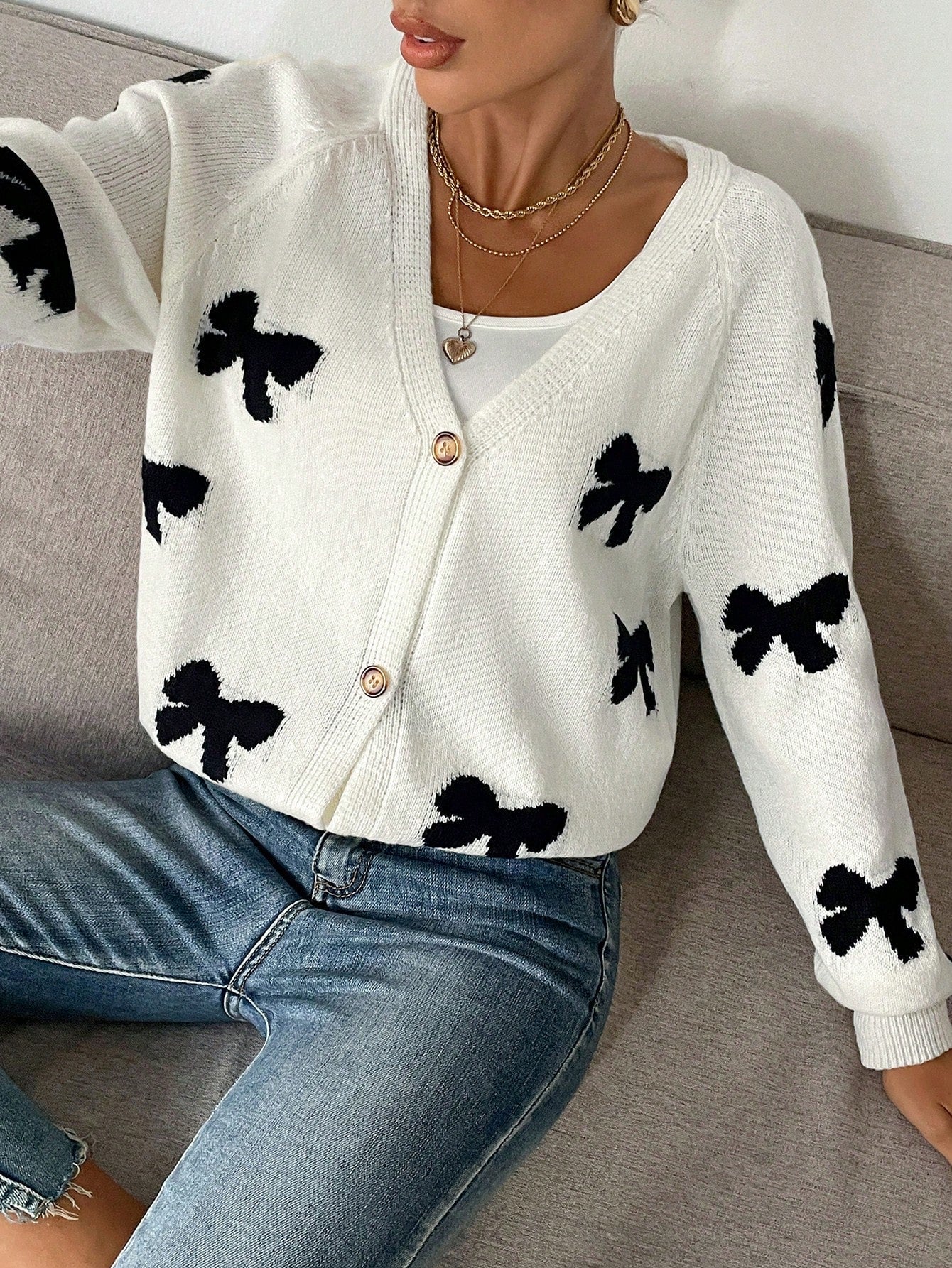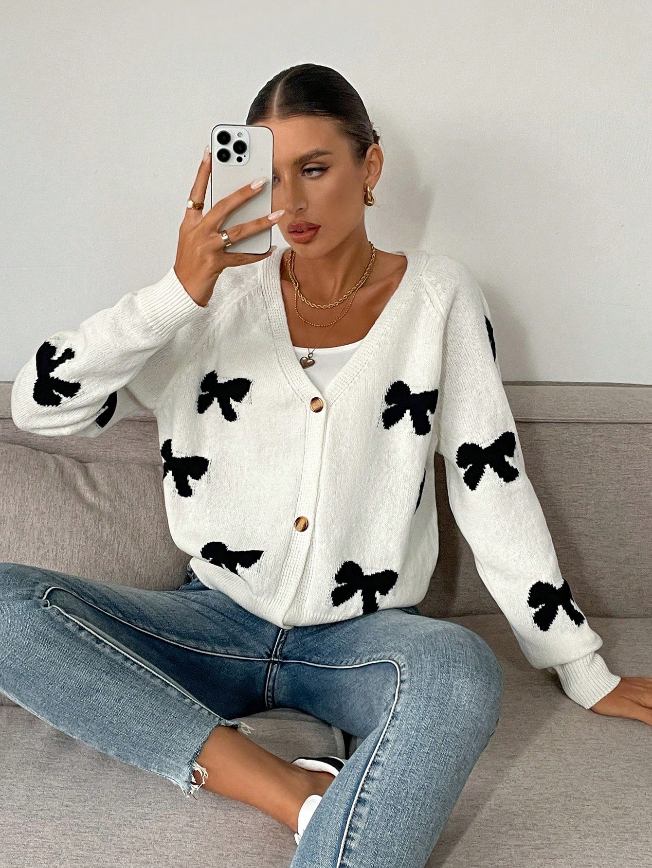 Cardigan a maniche lunghe con bottoni sul davanti e fiocco