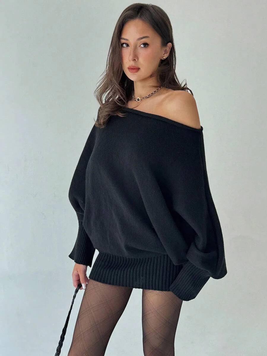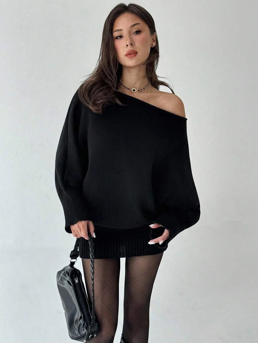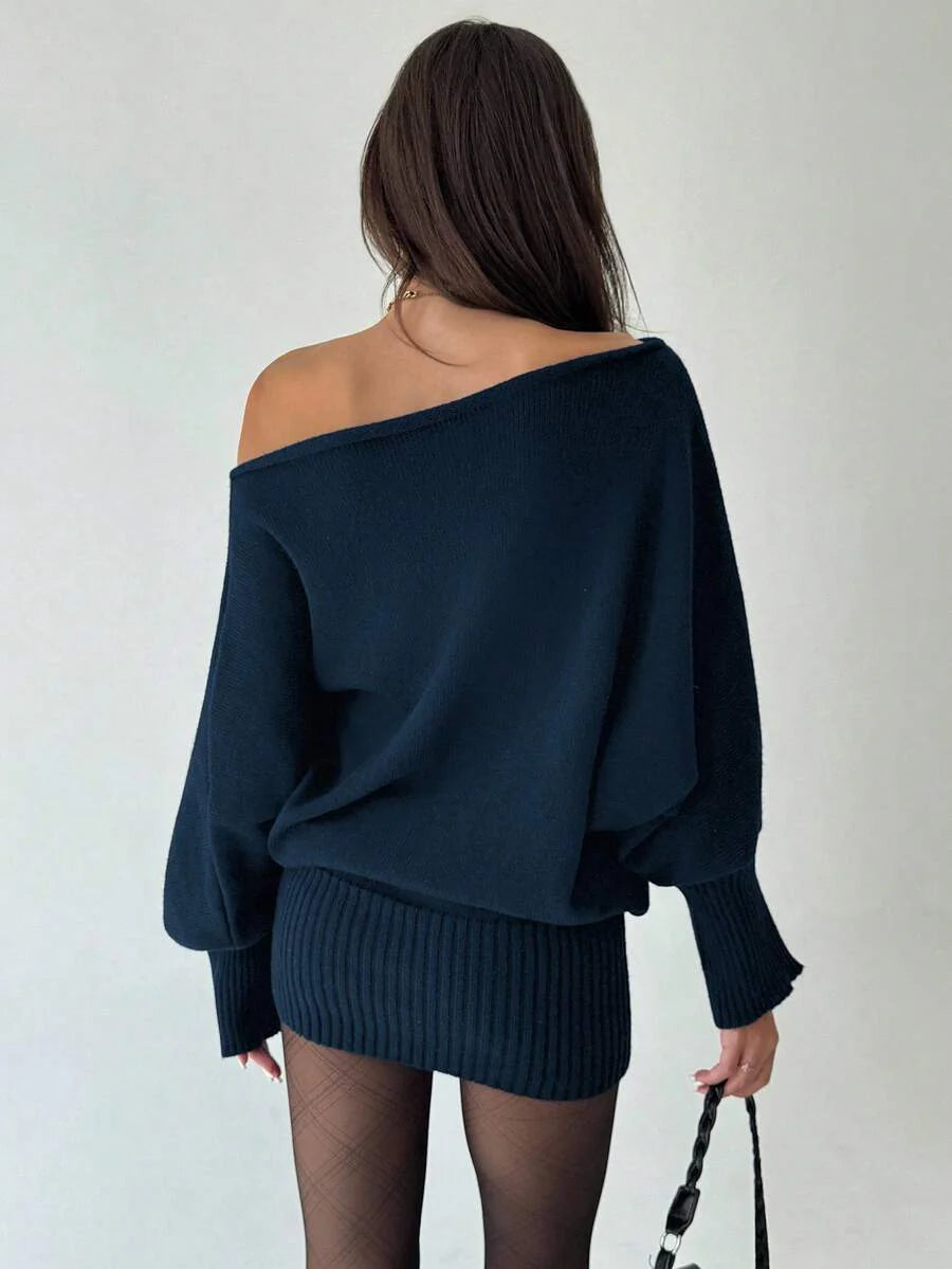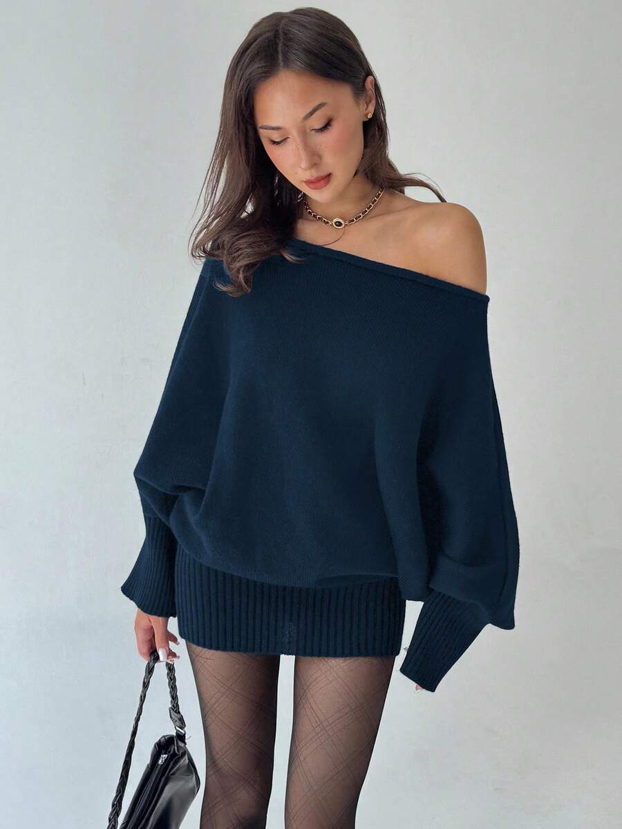 Abito a maglia aderente con vita segnata, maniche lunghe, spalla asimmetrica, stile versatile Y2K
