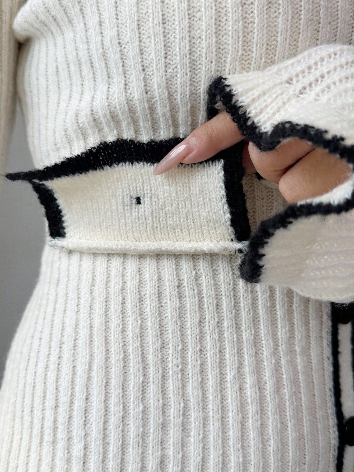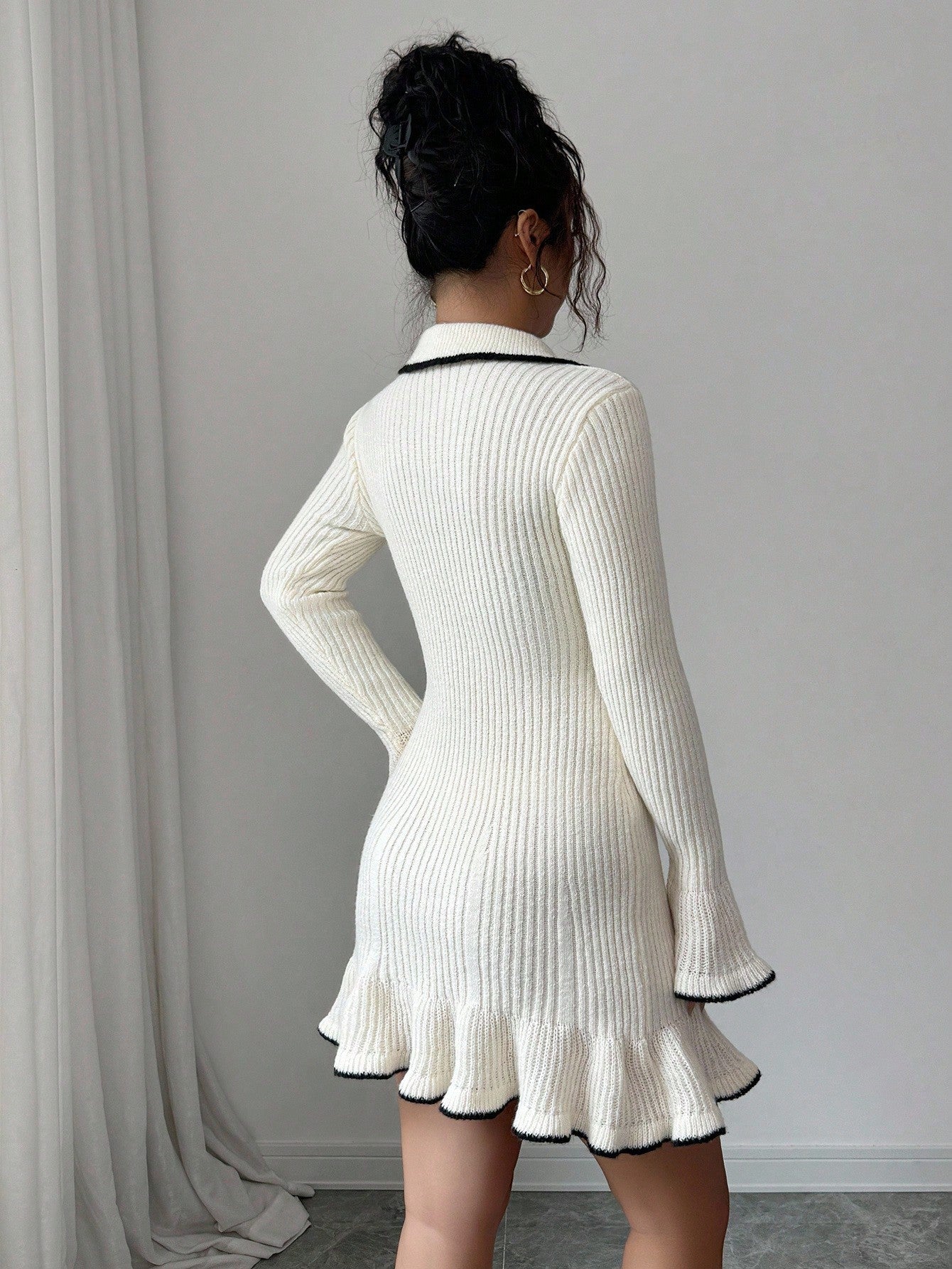 Abito maglione elegante da donna con colletto vintage e balza in vita