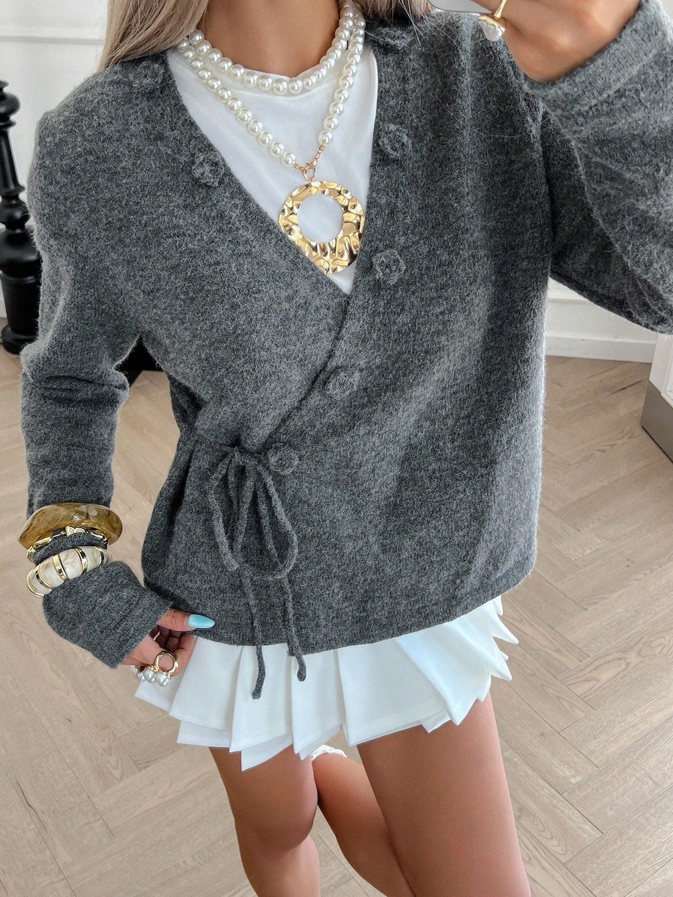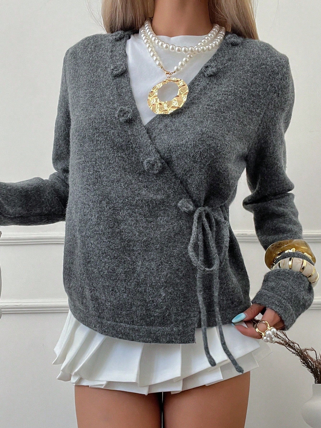 Cardigan avvolgente con fiocco e decorazione floreale 3D per donna