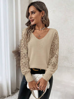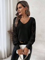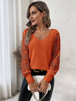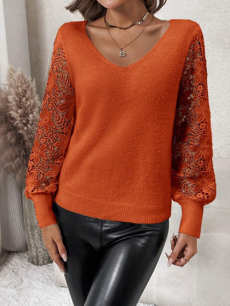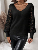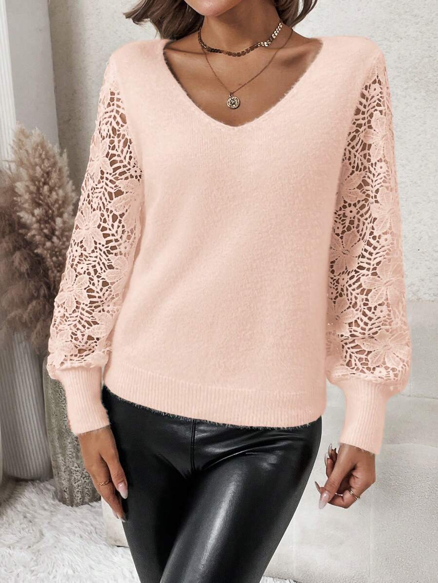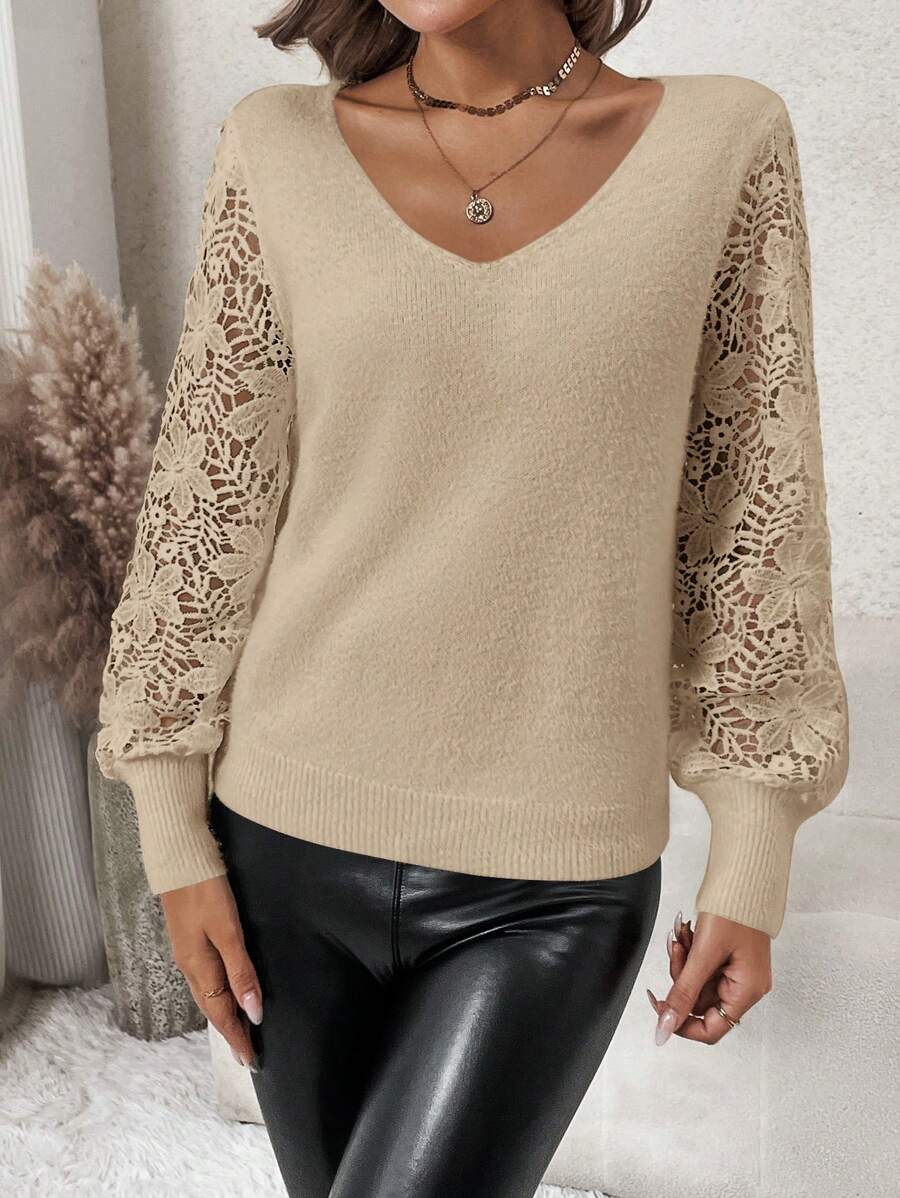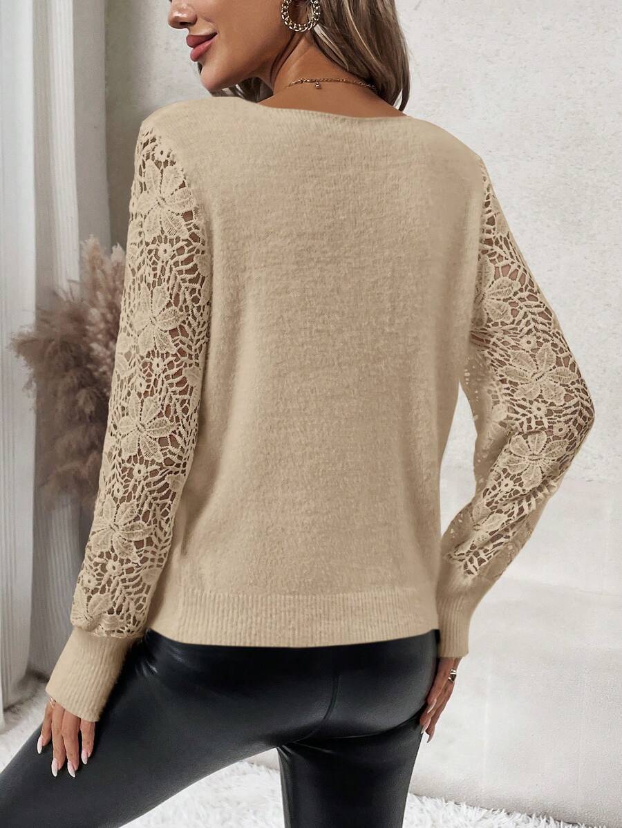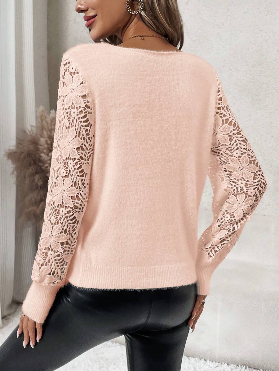 Maglione con maniche a lanterna e pizzo a contrasto