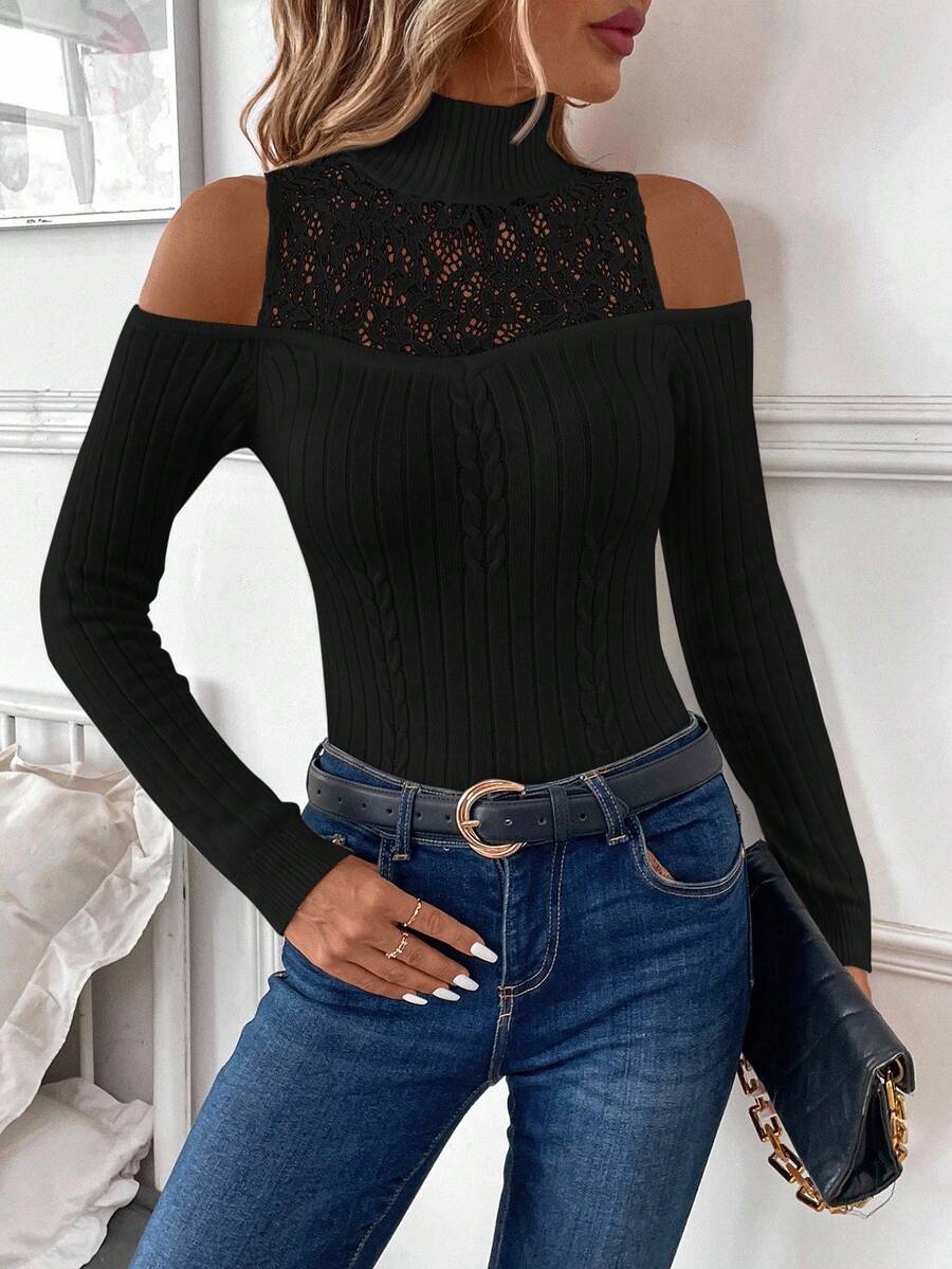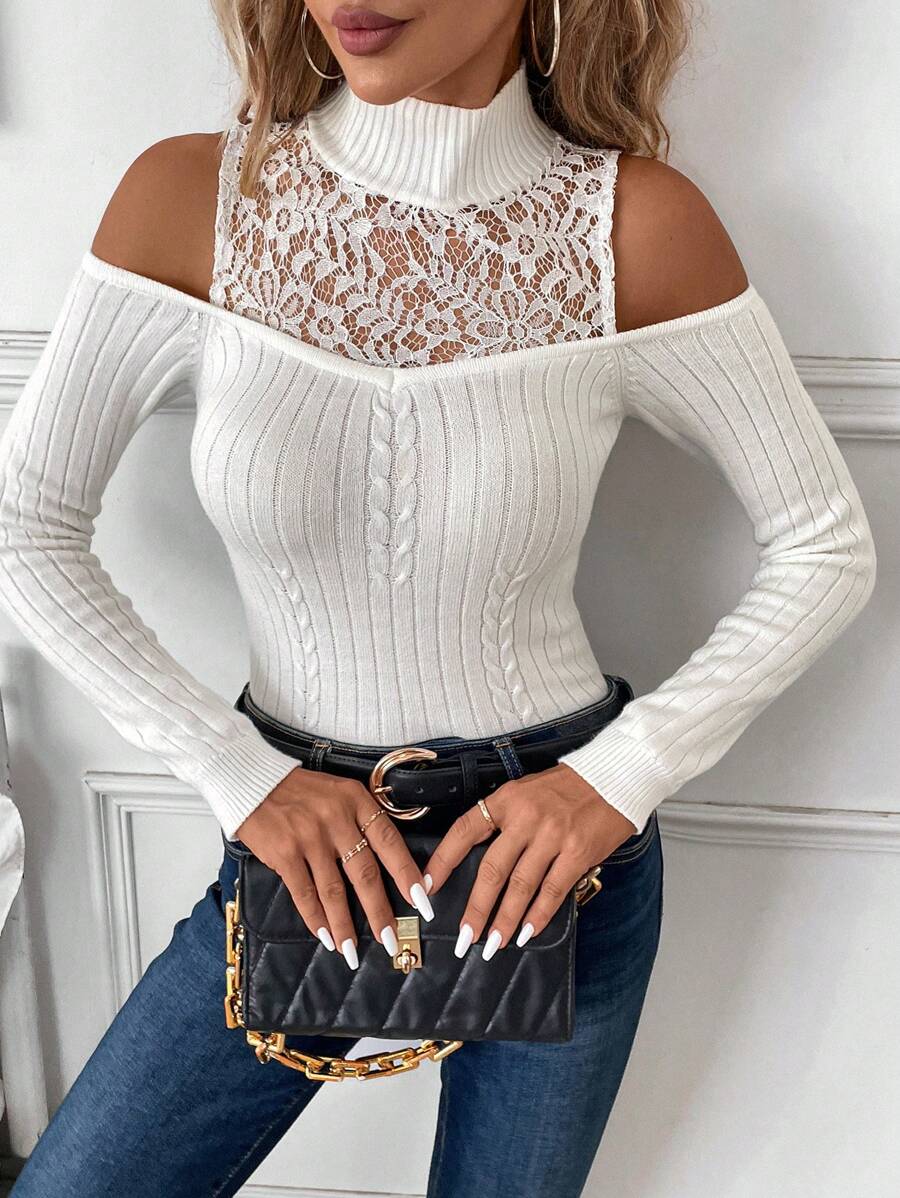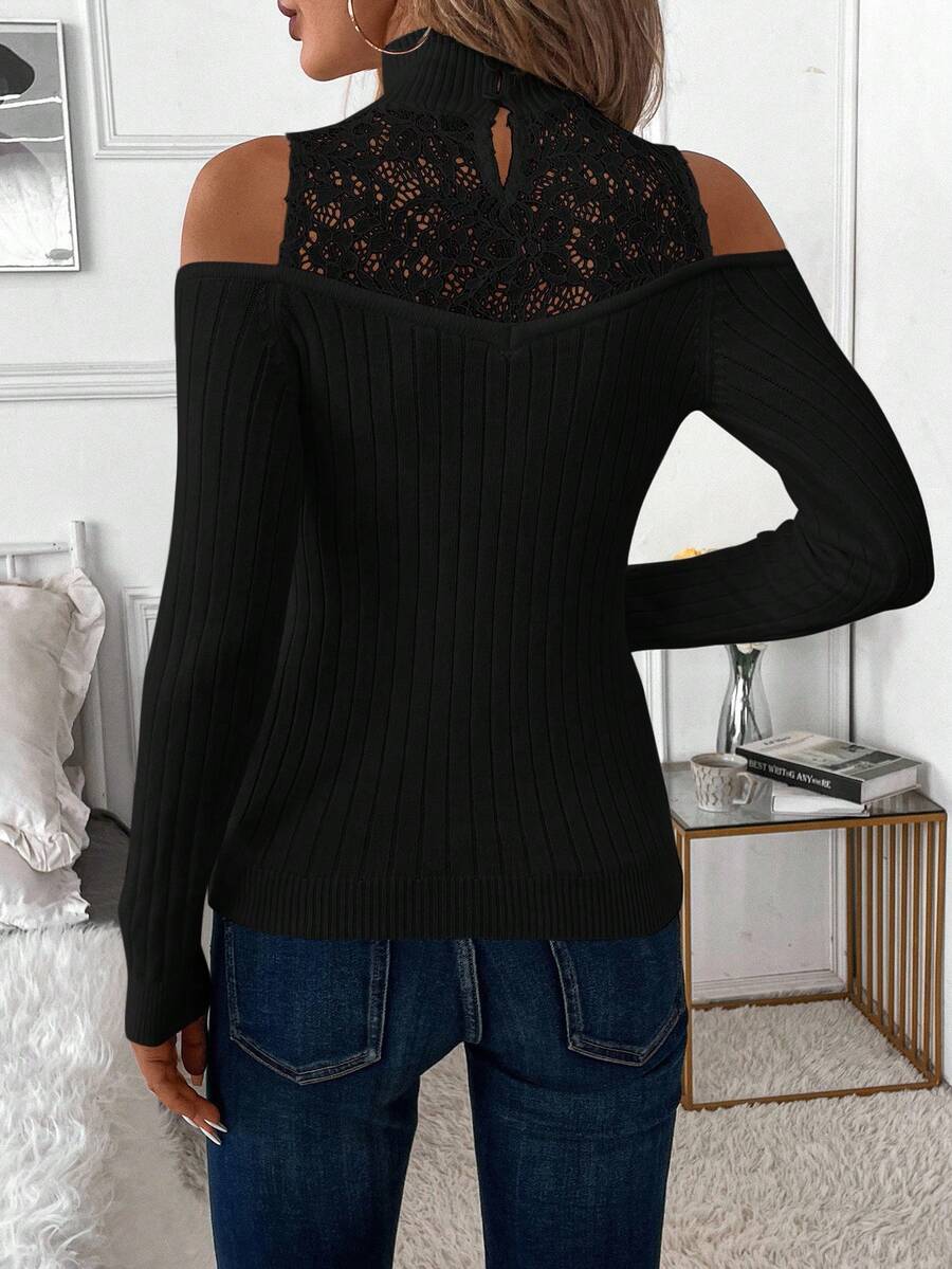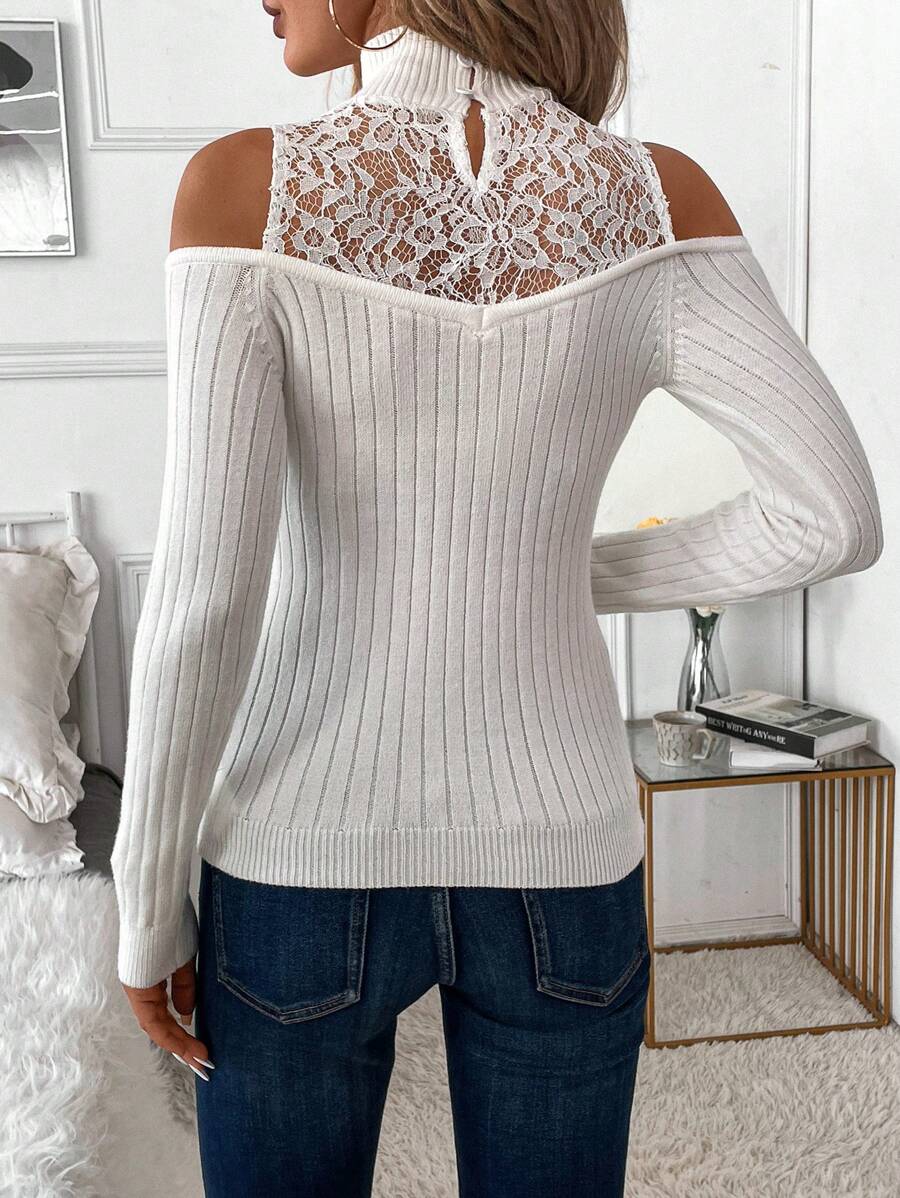 Maglione da donna invernale con design manica traforata, con elegante applicazione di pizzo