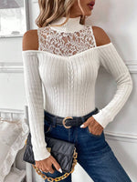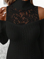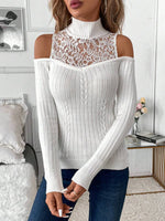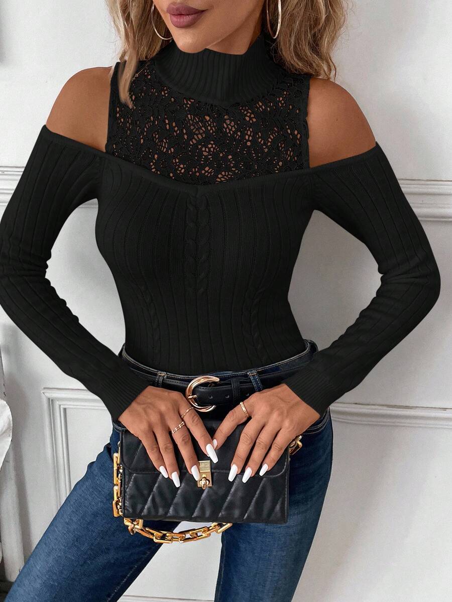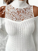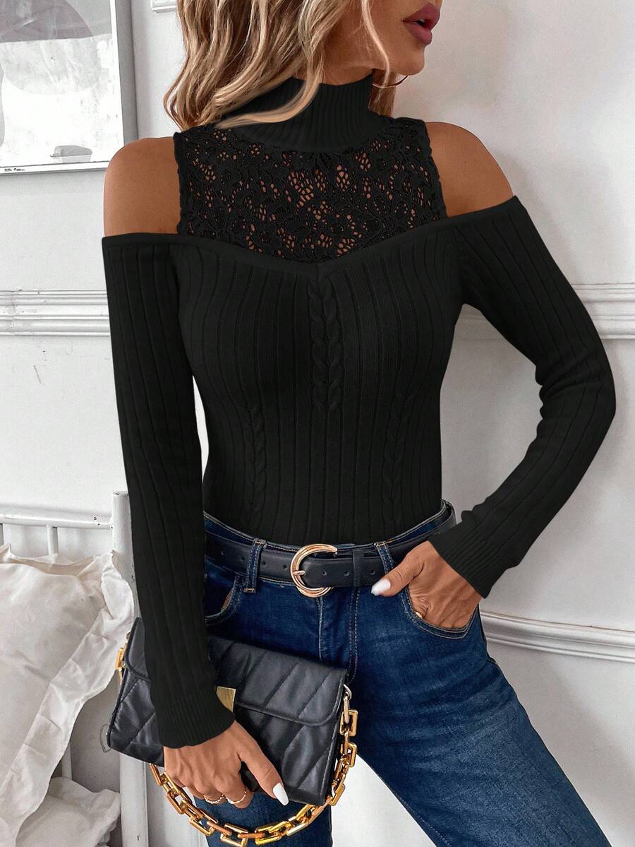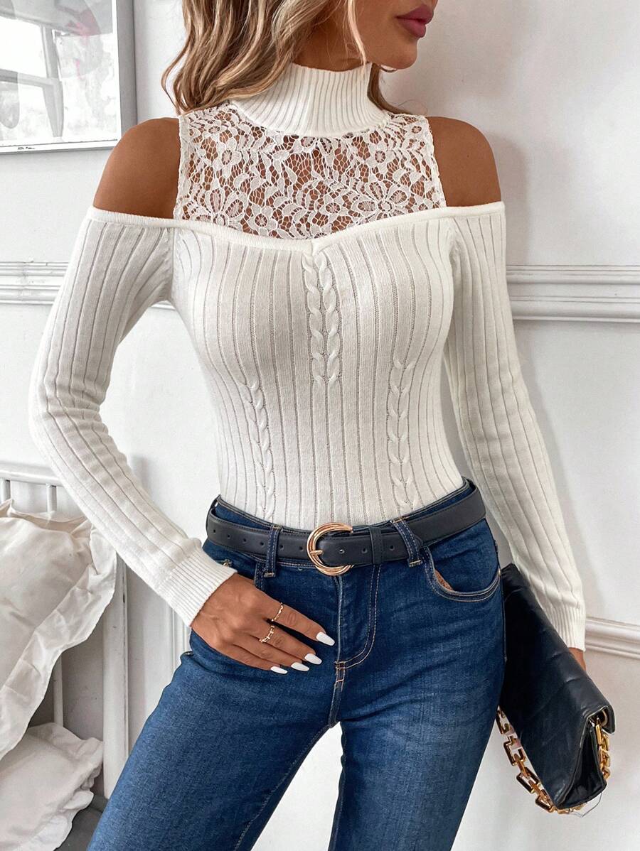 Maglione da donna invernale con design manica traforata, con elegante applicazione di pizzo