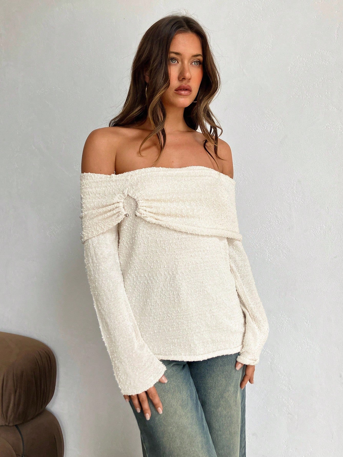 Maglione lavorato a maglia oversize con colletto alla coreana