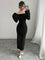 Abito lungo maxi elegante a maniche lunghe, spalle scoperte, slim fit e tinta unita