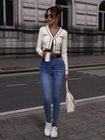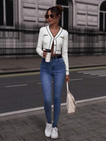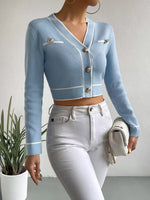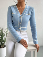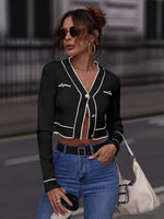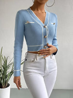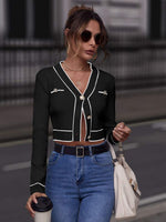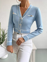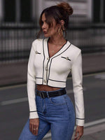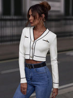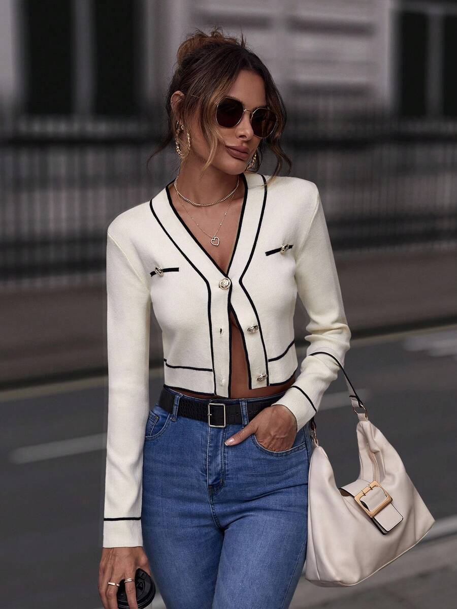 Cardigan bianco con bordi a contrasto e bottoni davanti