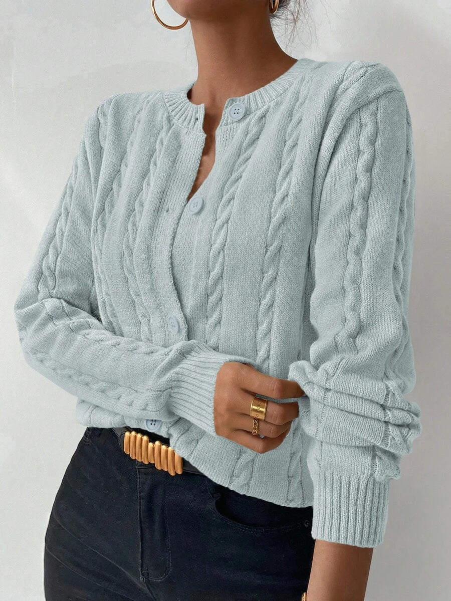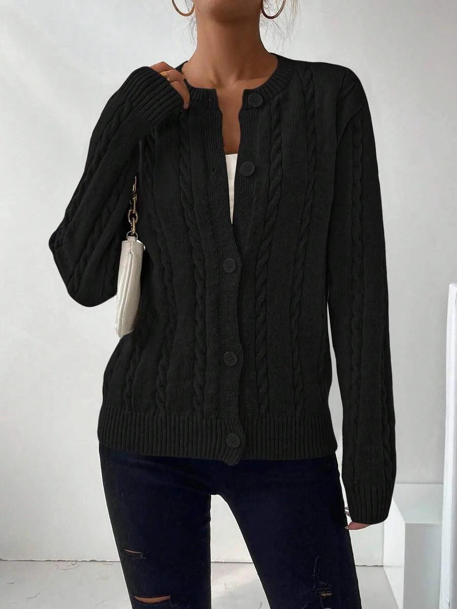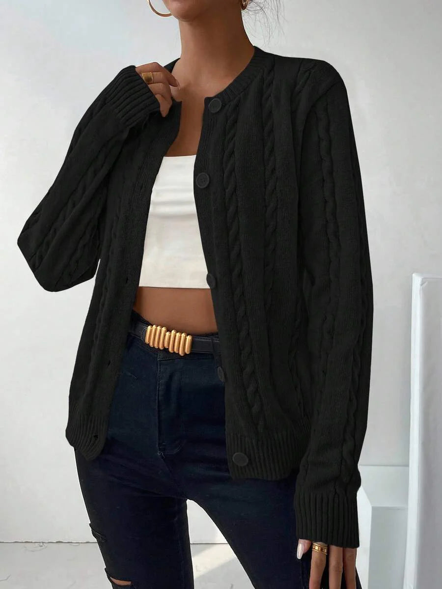 Cardigan donna con bottoni sul davanti a maniche lunghe tinta unita