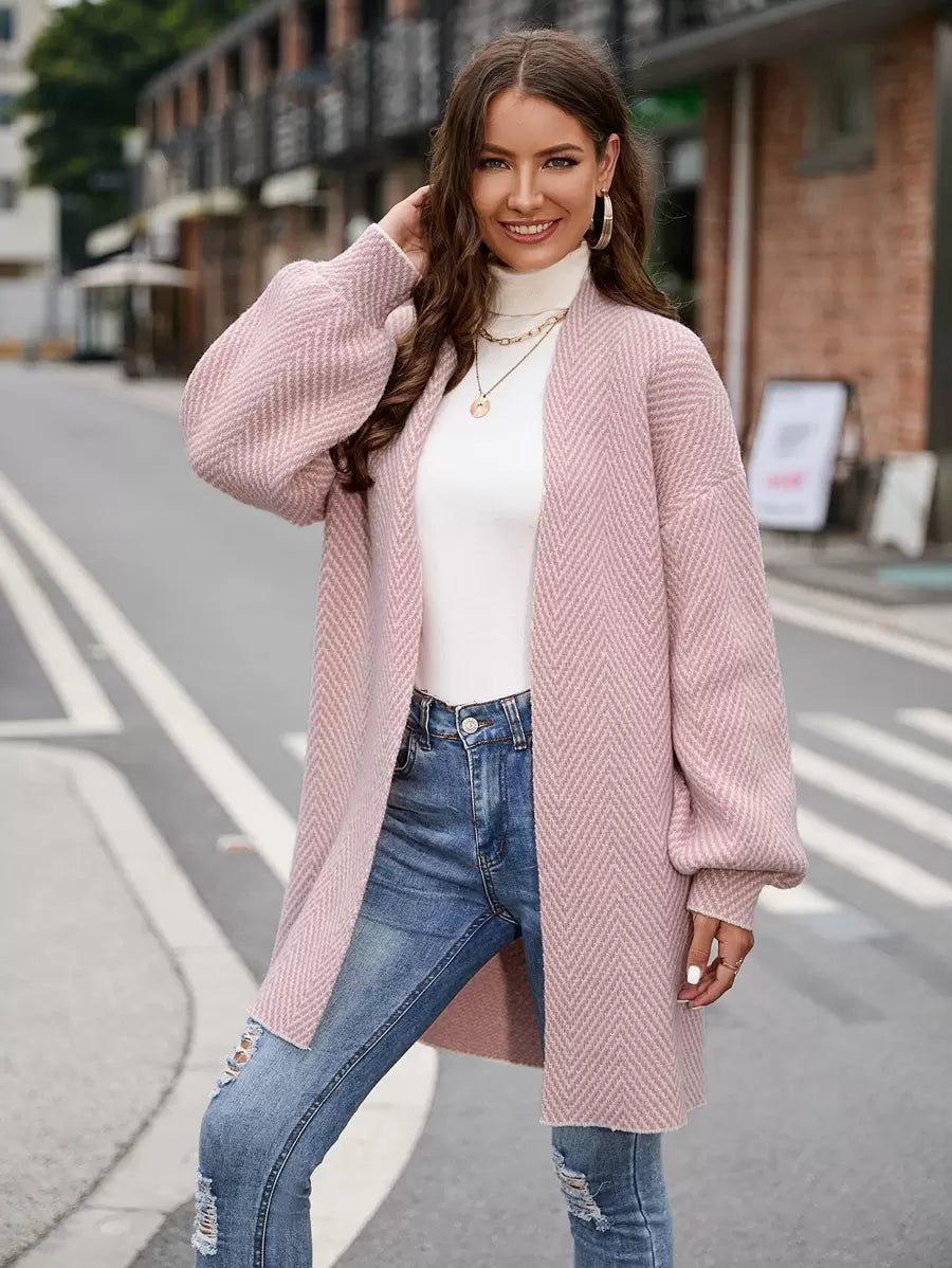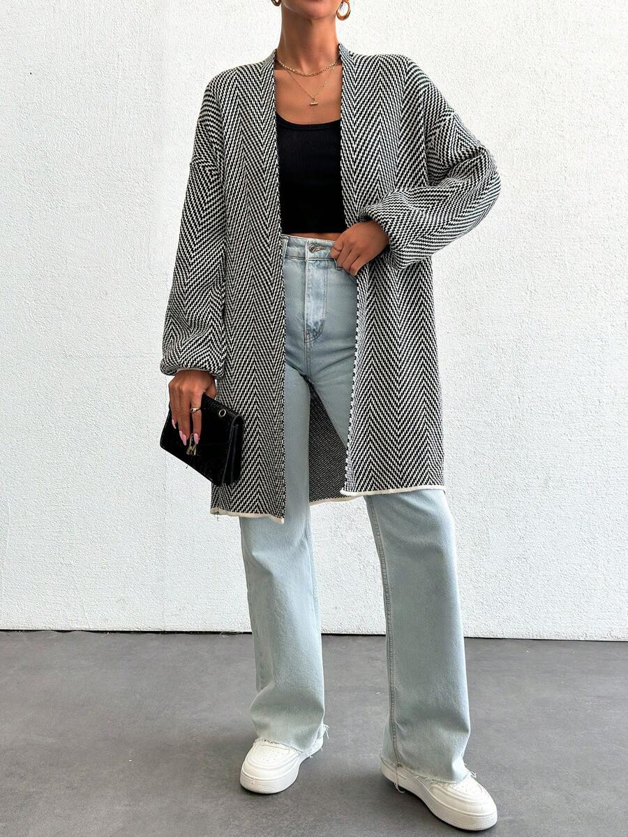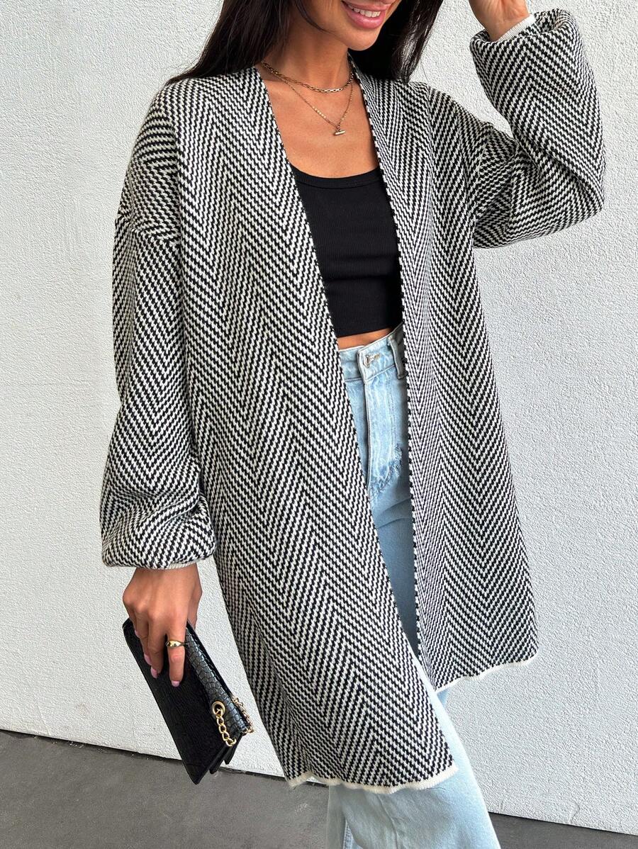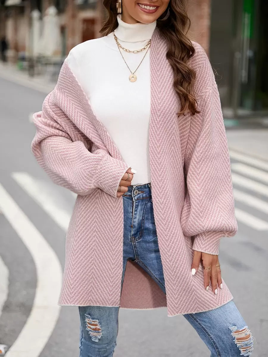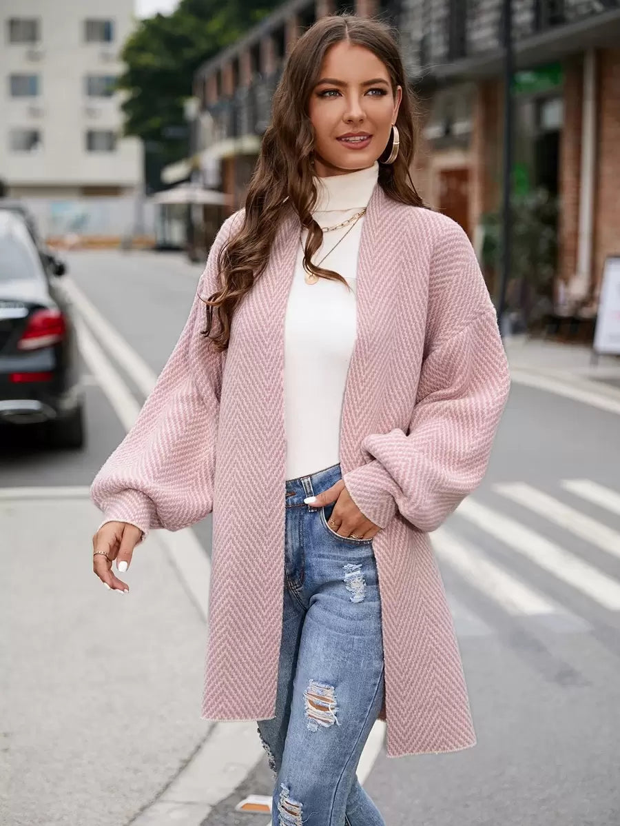 Cardigan lungo a maniche a palloncino con motivo a righe