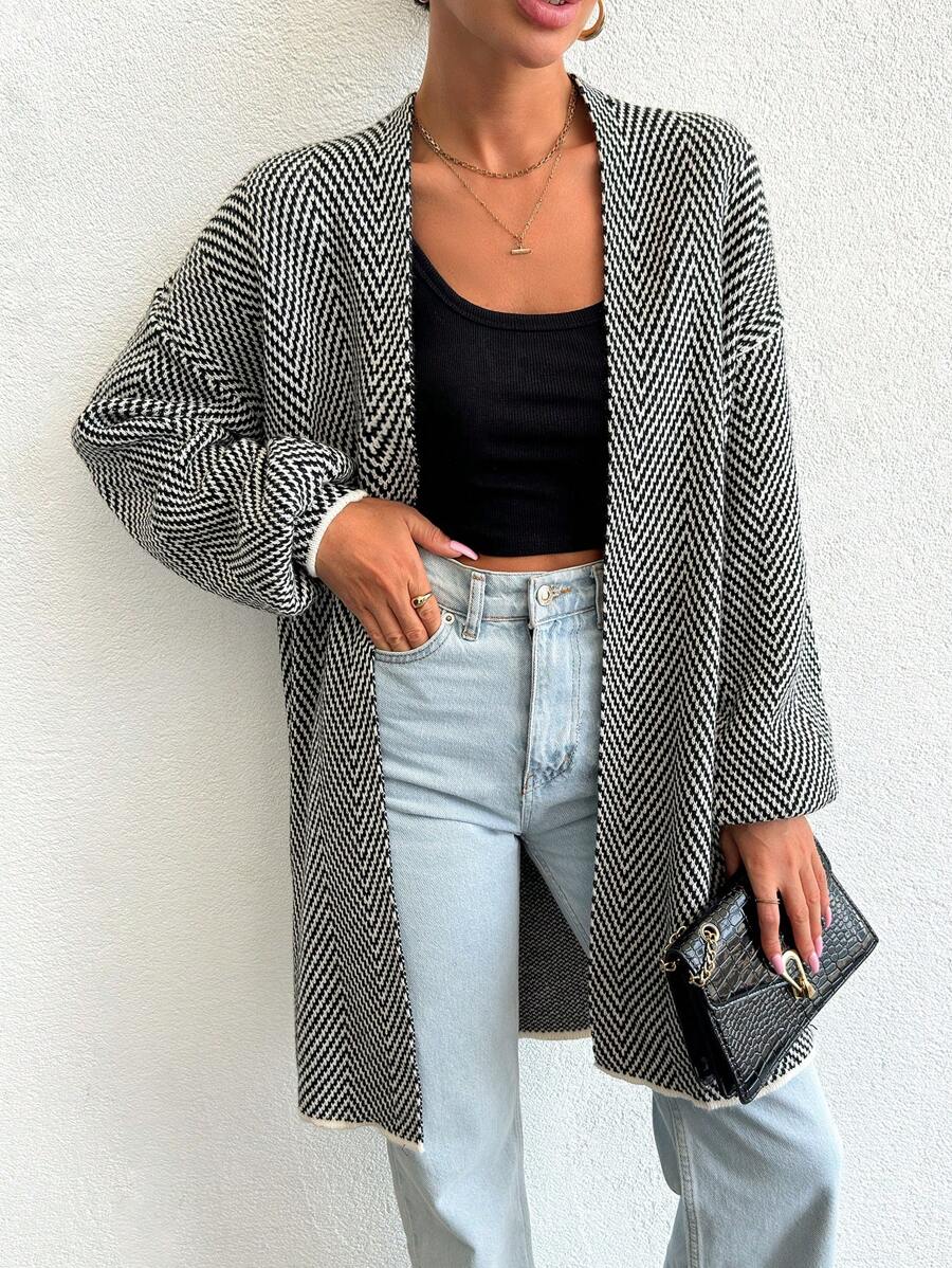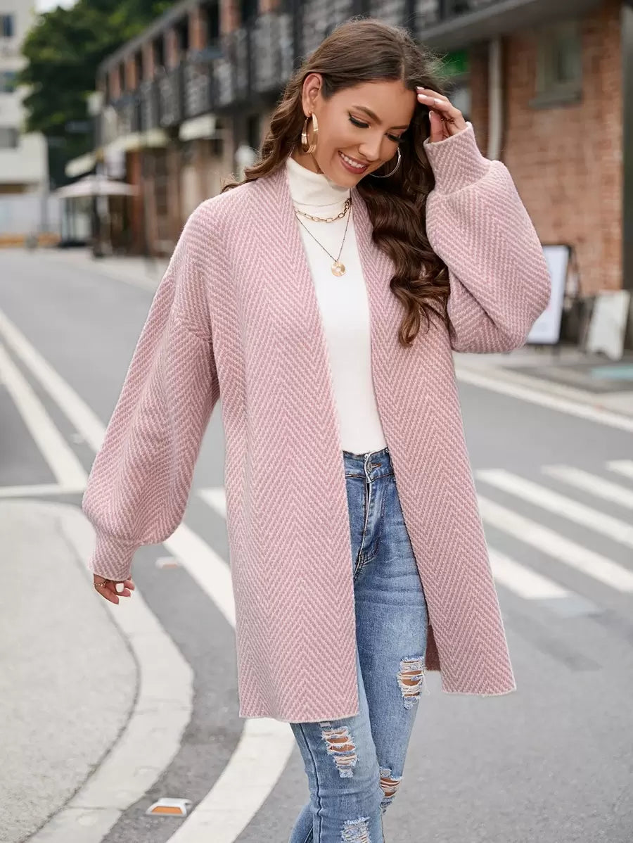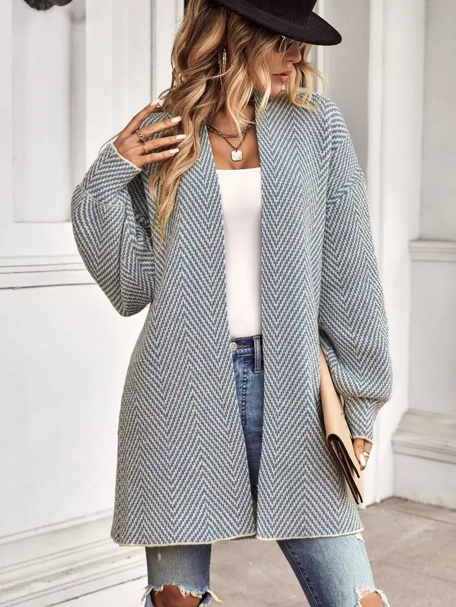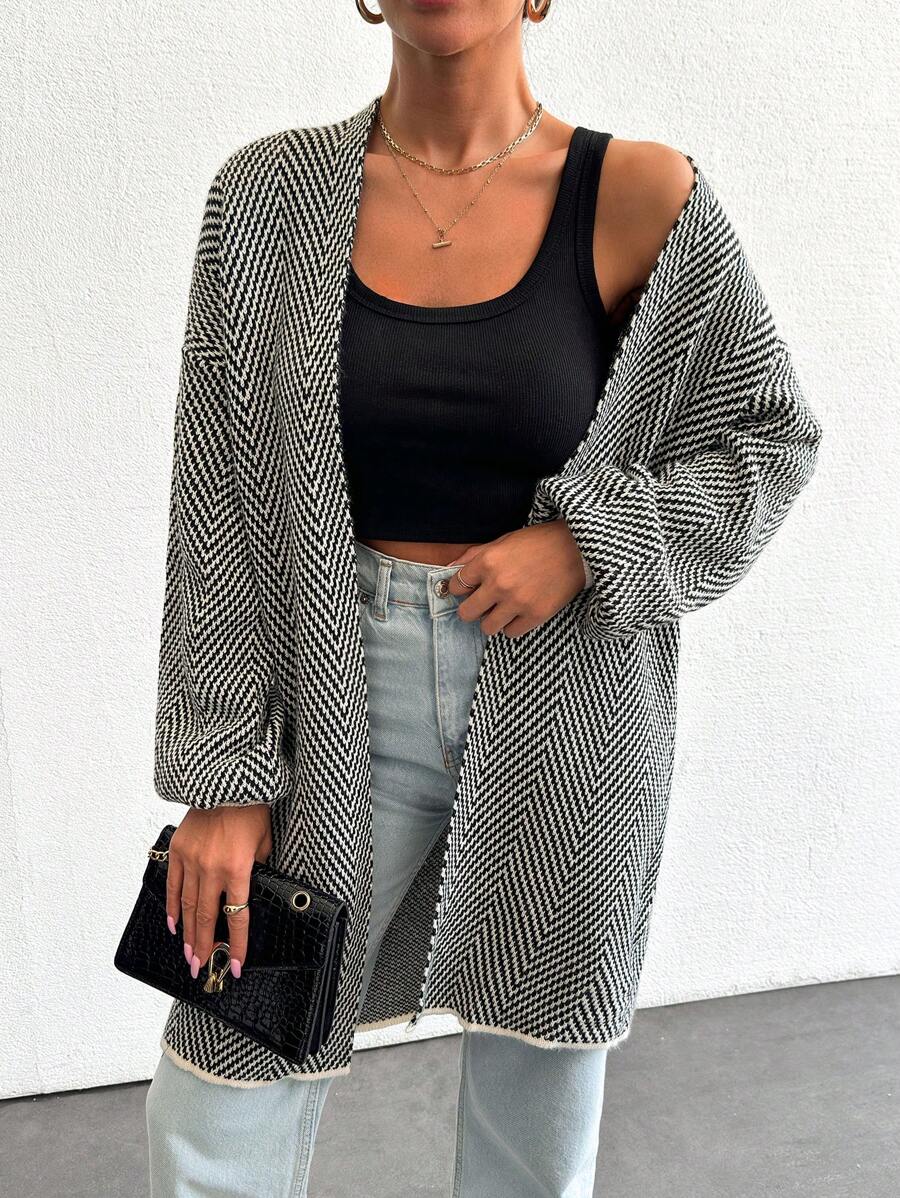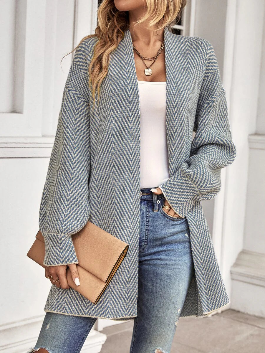 Cardigan lungo a maniche a palloncino con motivo a righe