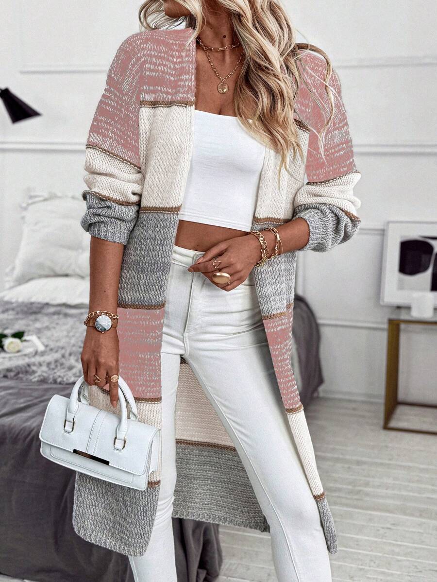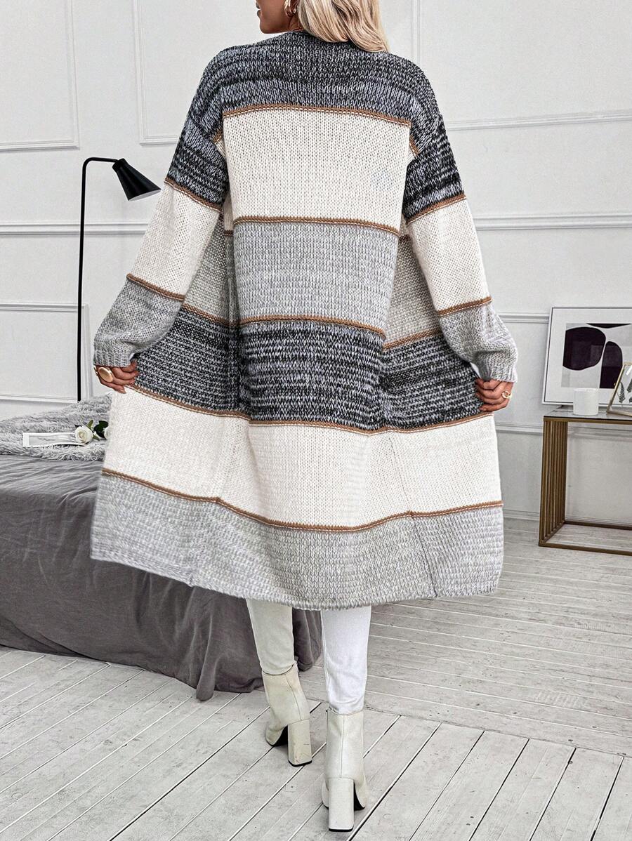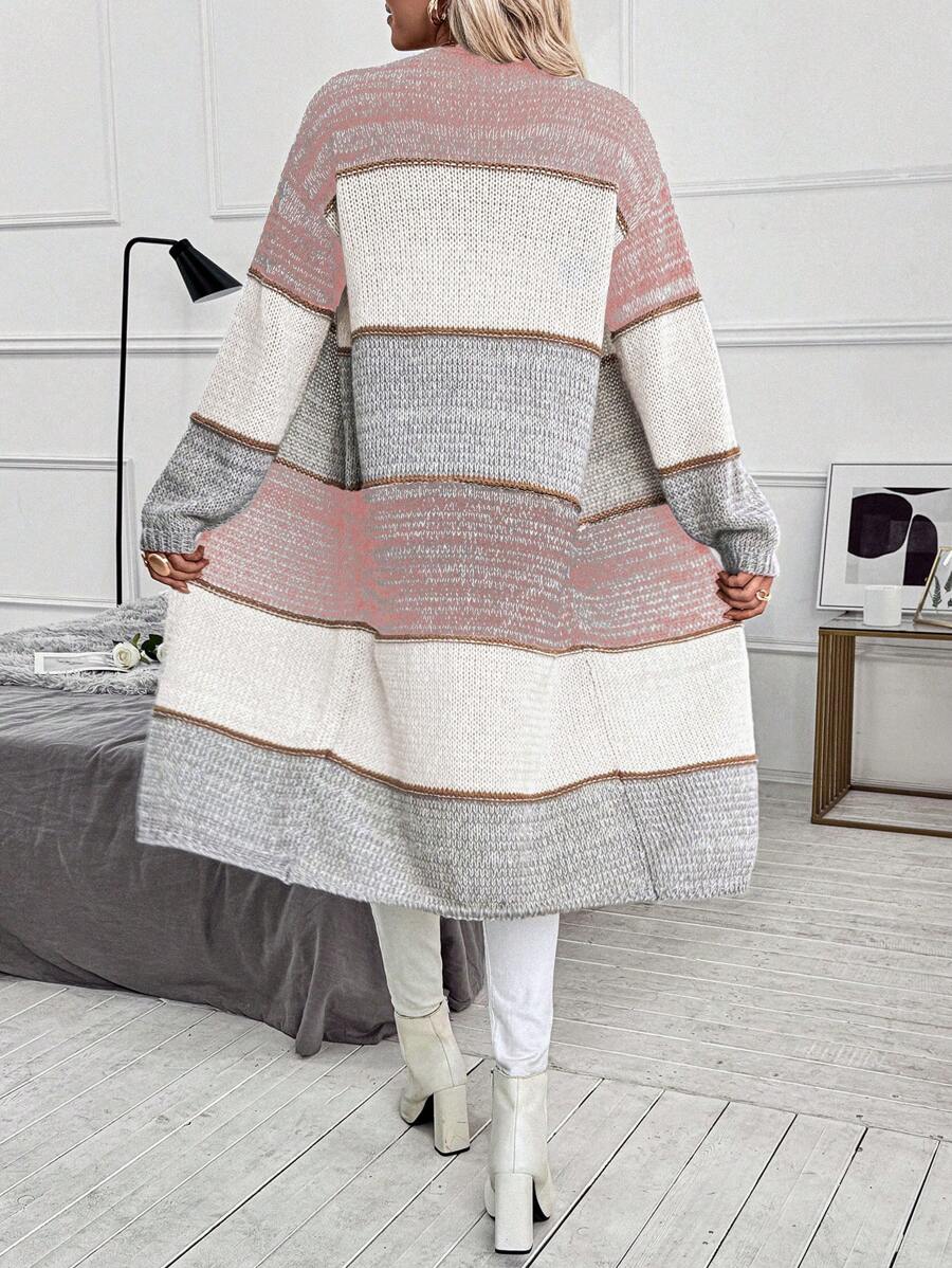 Cardigan lungo e casual con tasche doppie, modello morbido e ampio, maniche lunghe, per donna