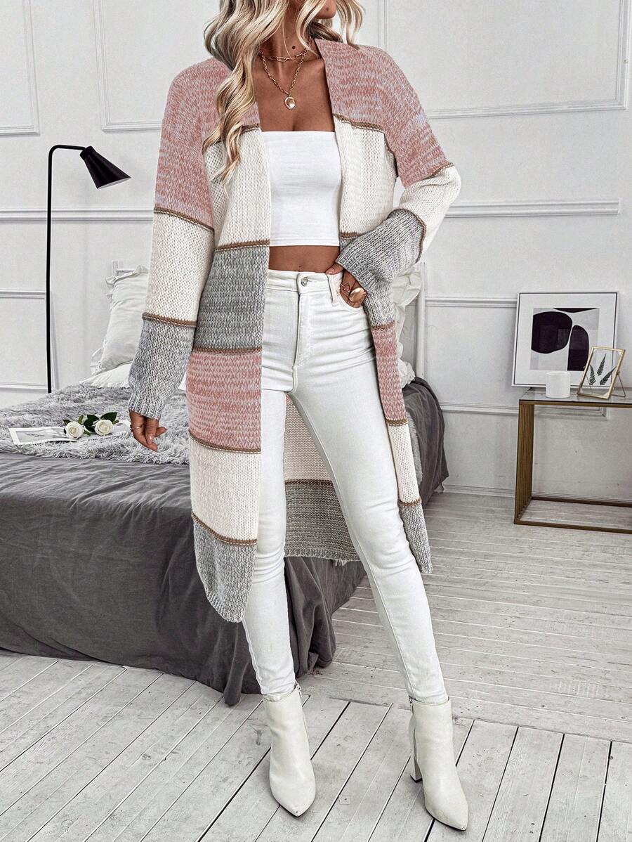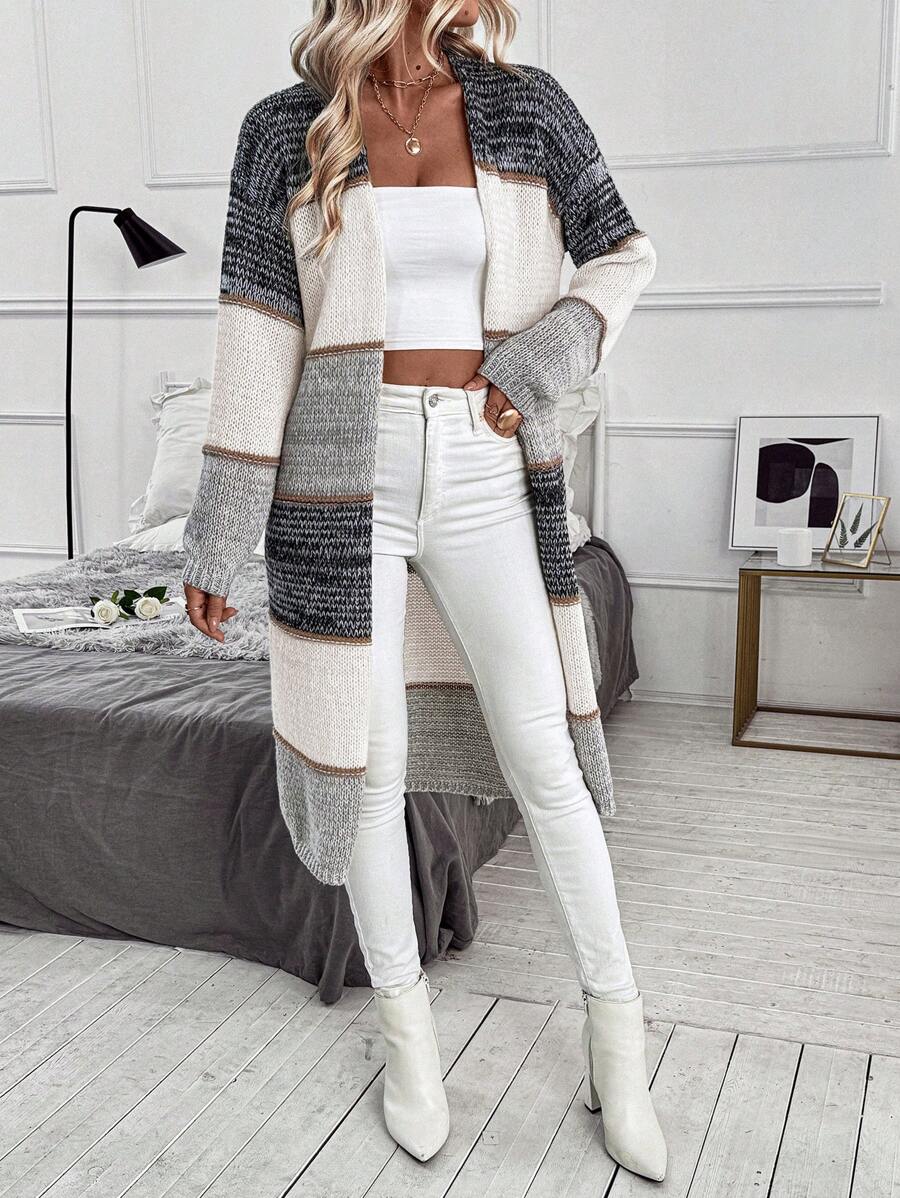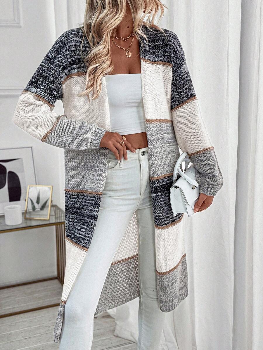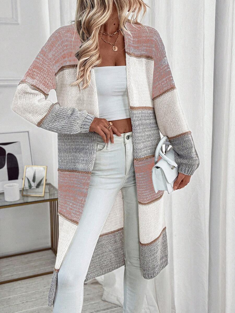 Cardigan lungo e casual con tasche doppie, modello morbido e ampio, maniche lunghe, per donna