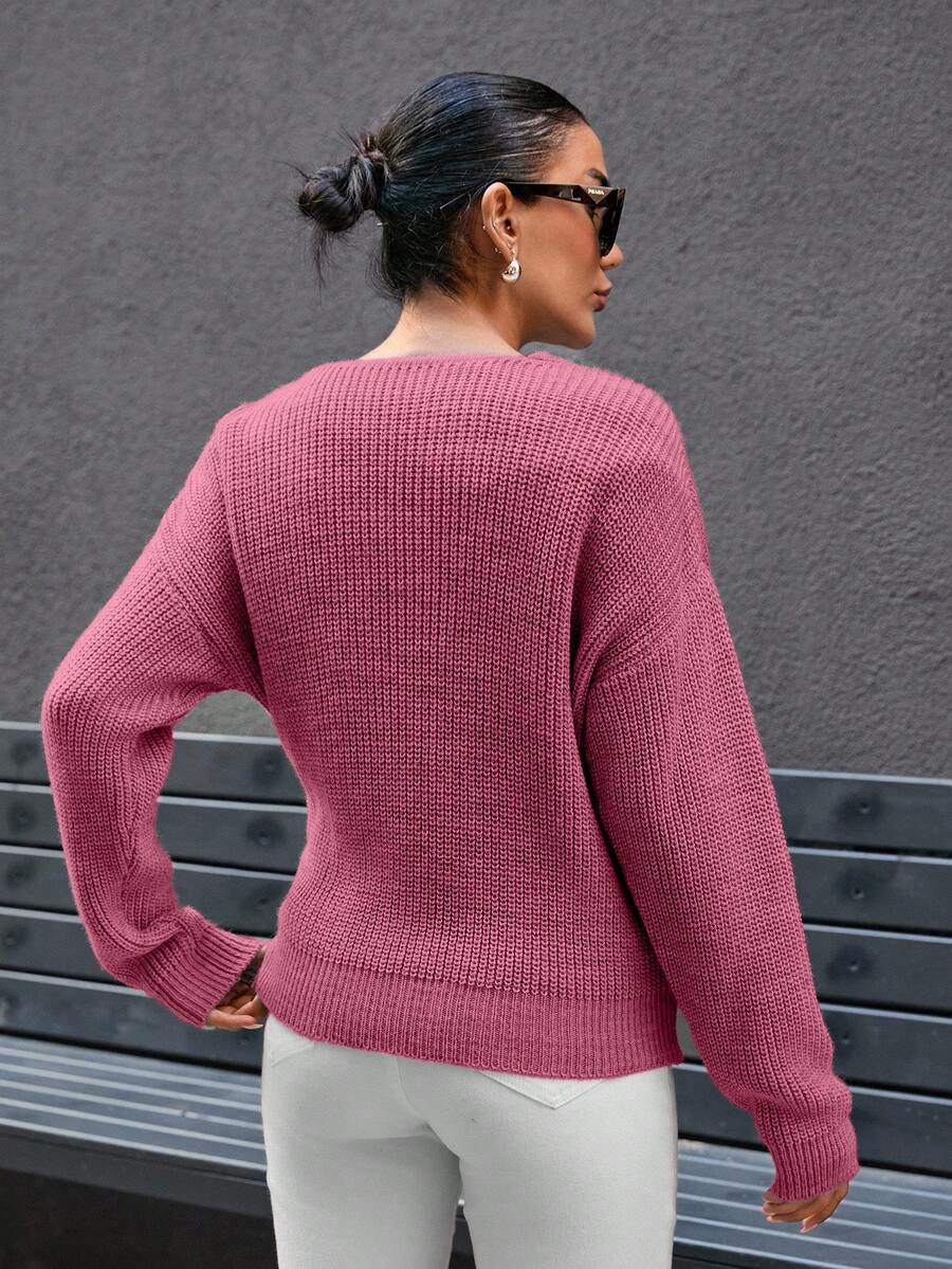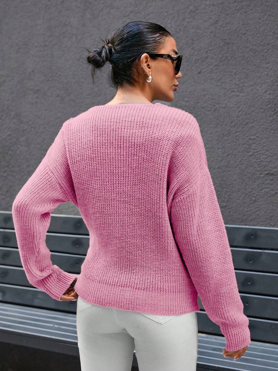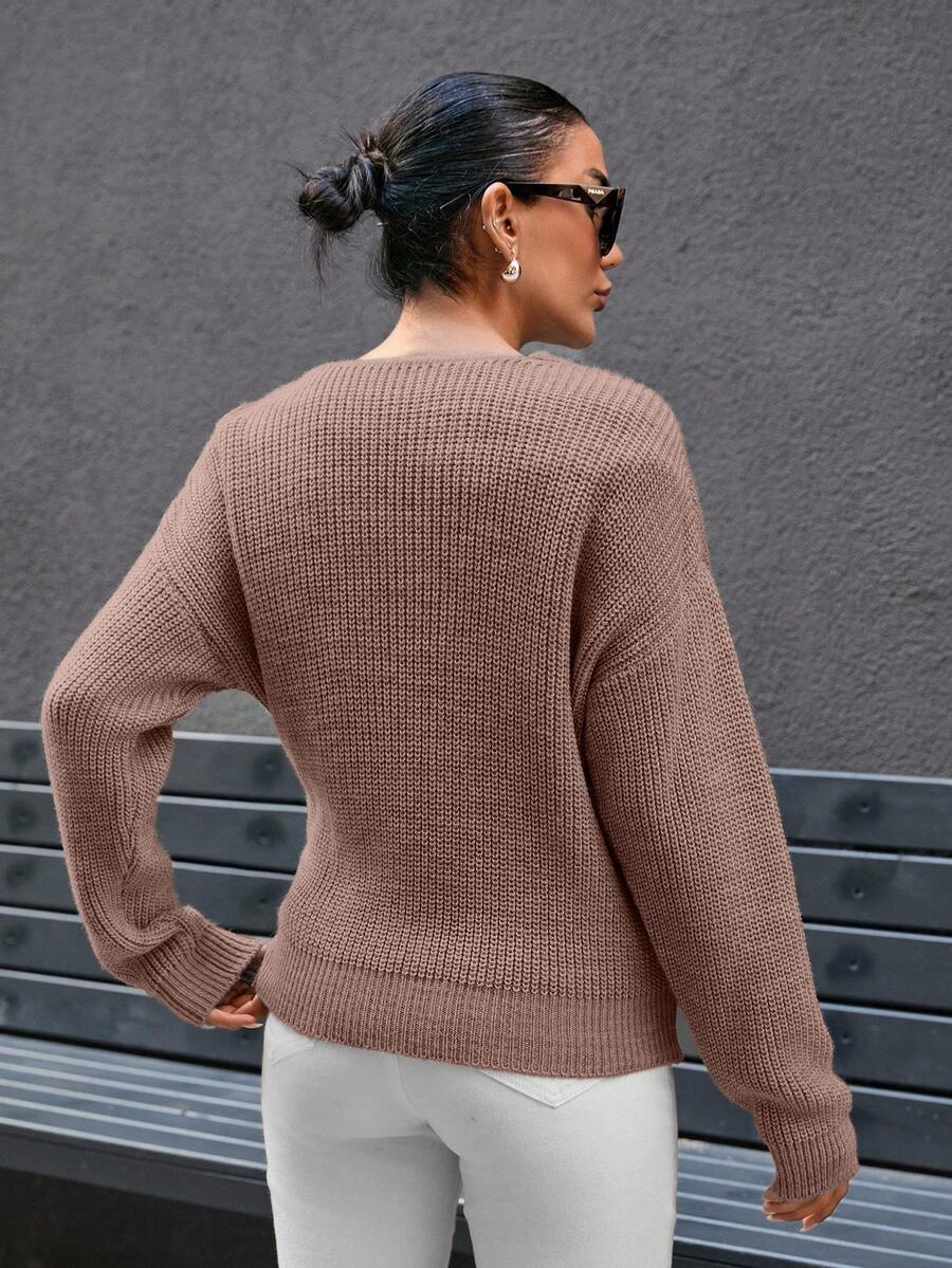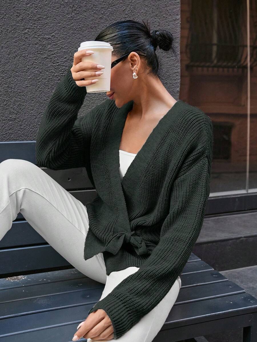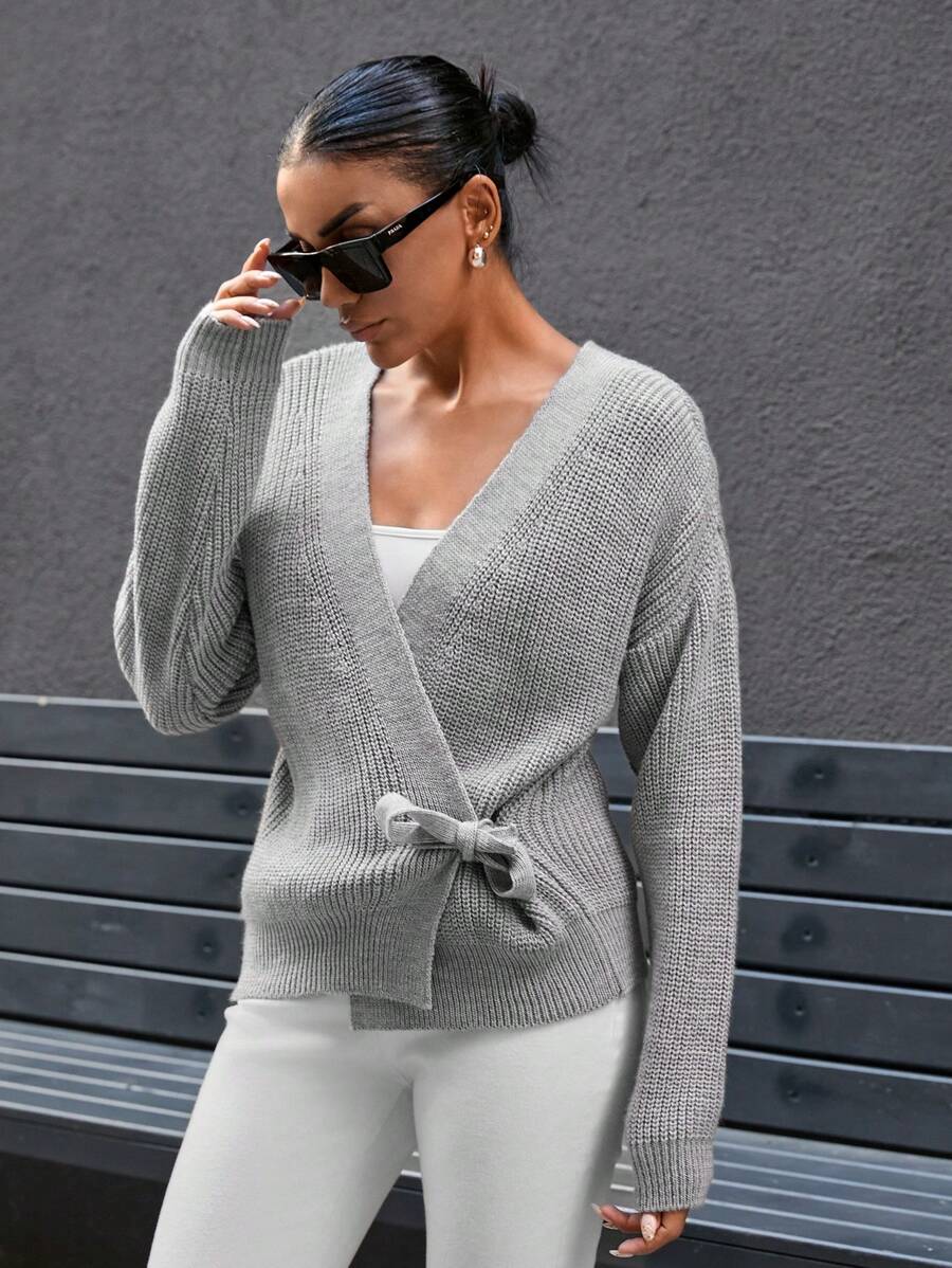 Cardigan oversize da donna con scollo a V, dettaglio fiocco e maniche a palloncino