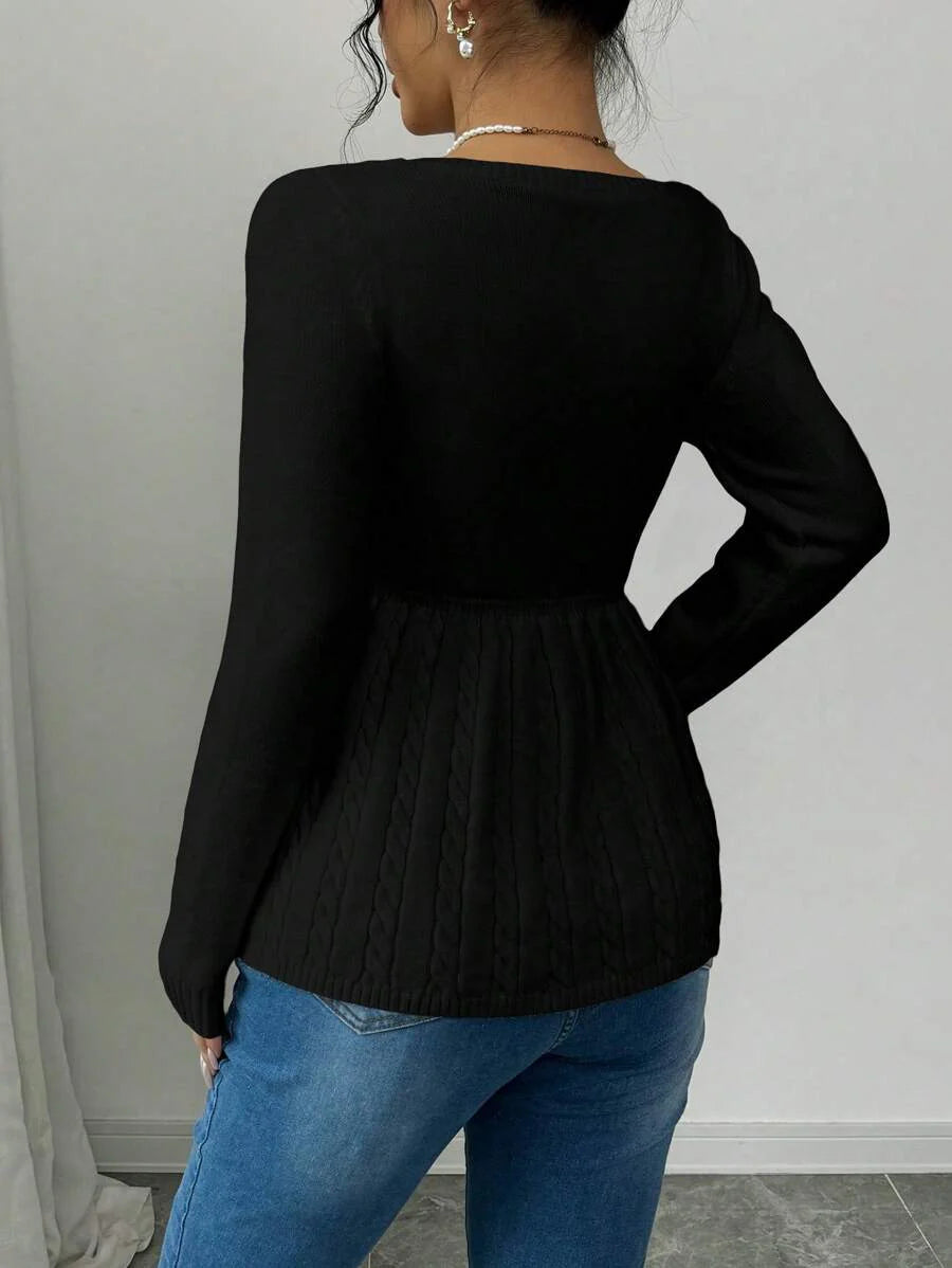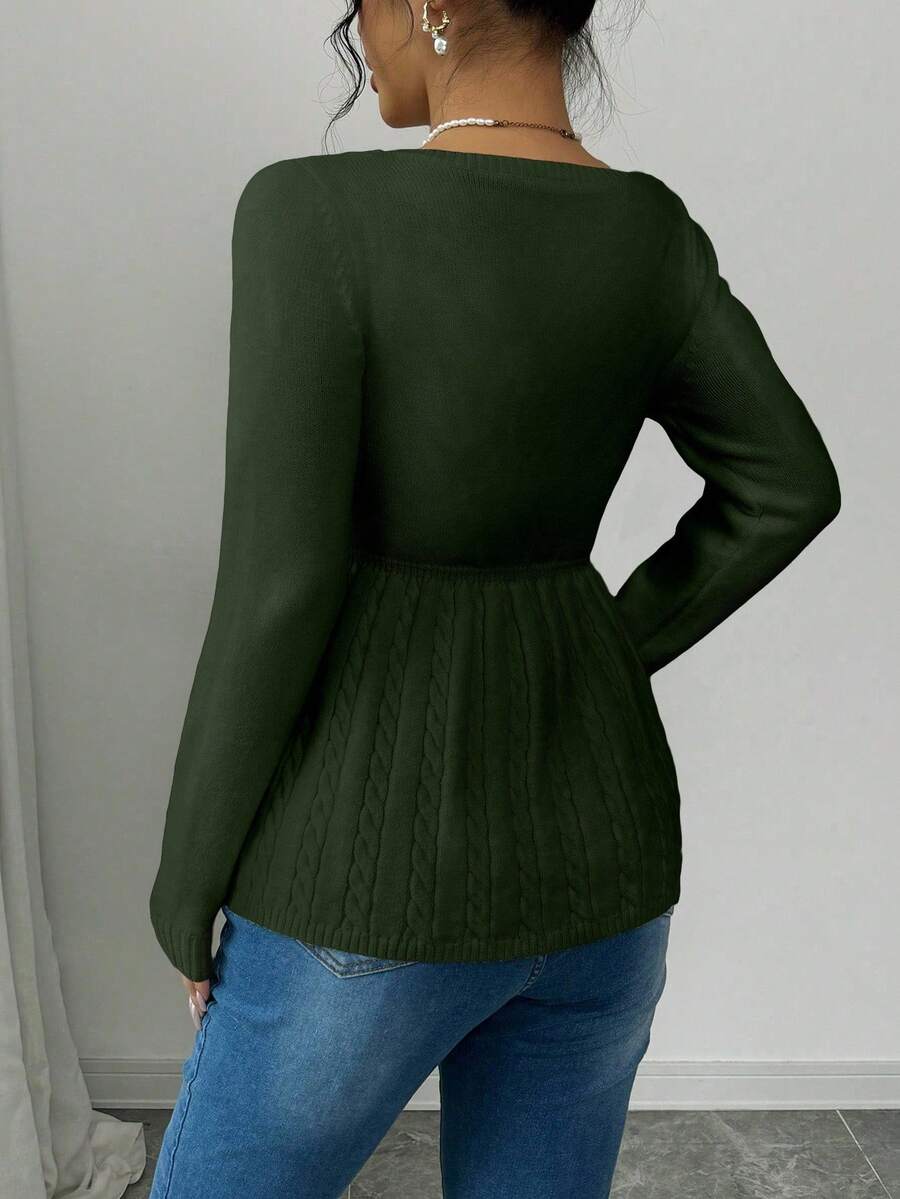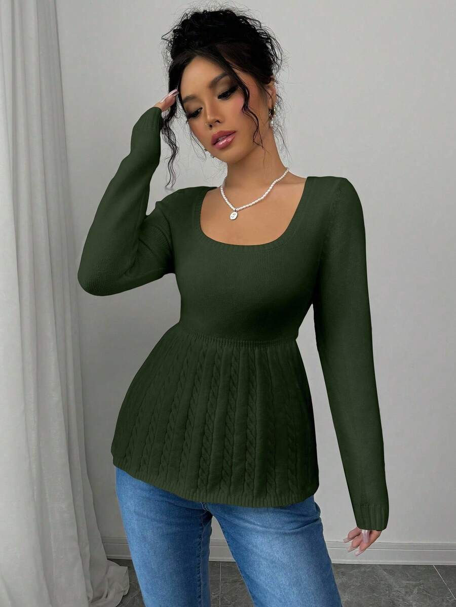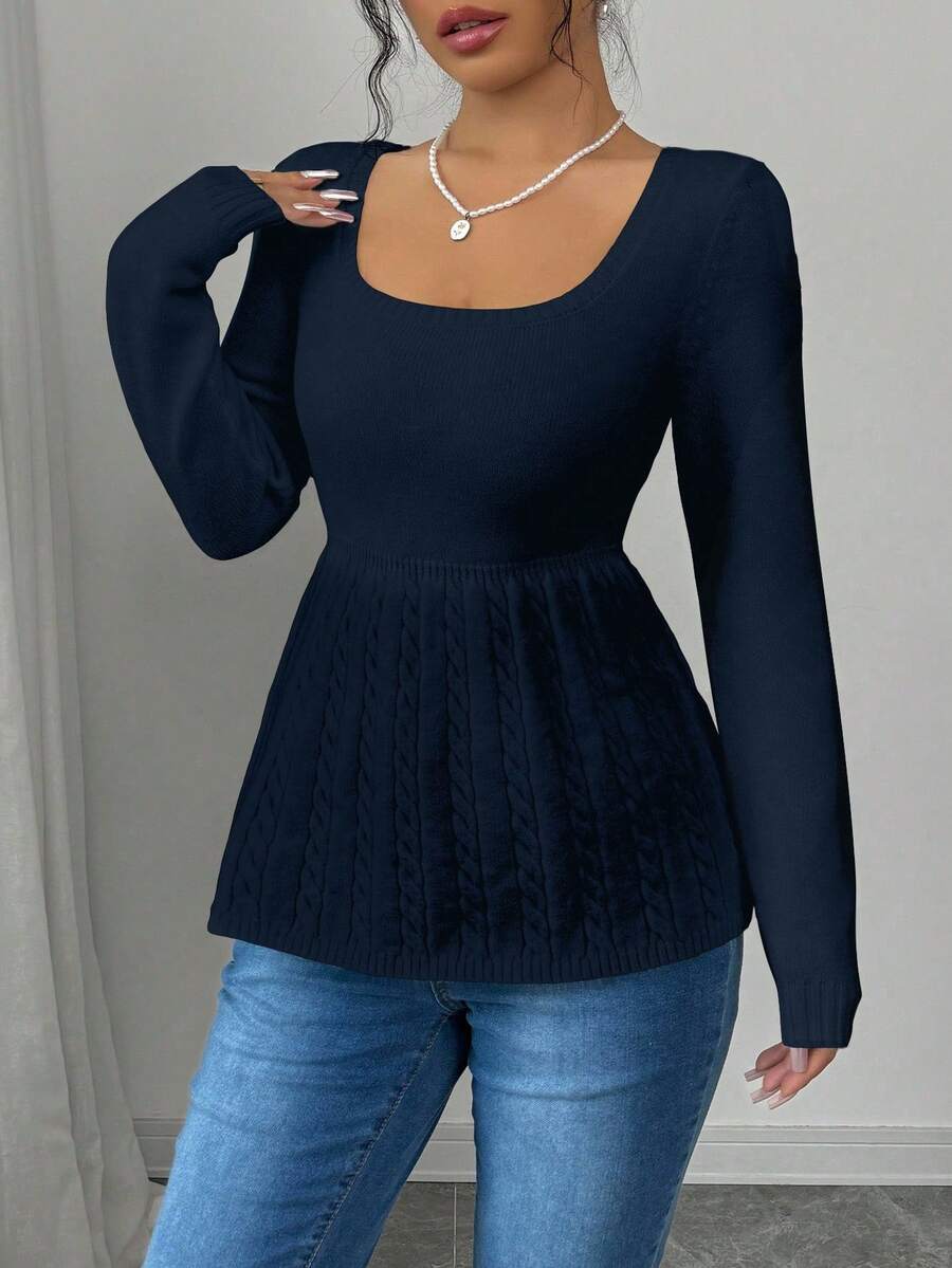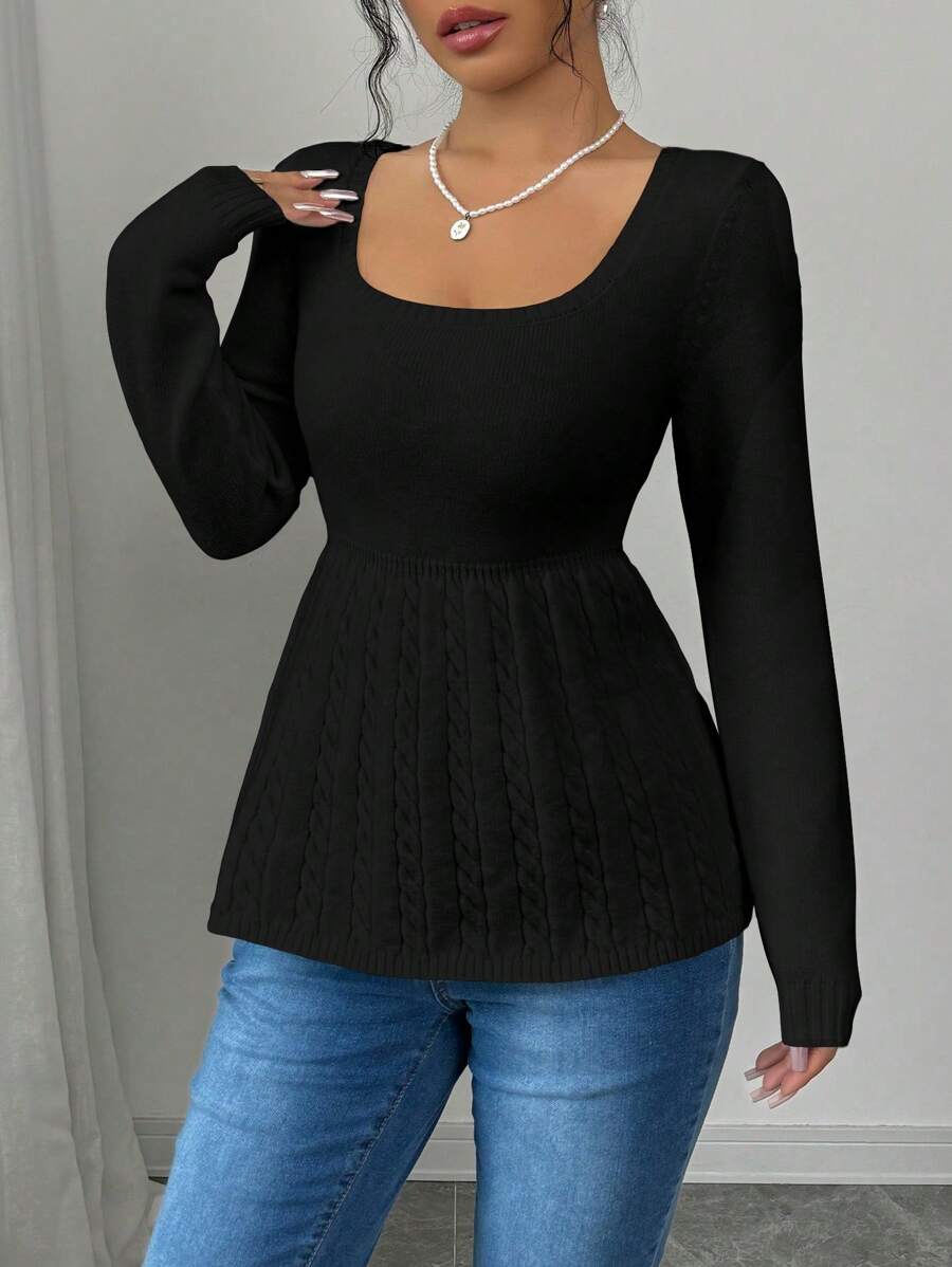 Maglietta corta bianca casual da donna con collo quadrato, maniche lunghe, colore unito