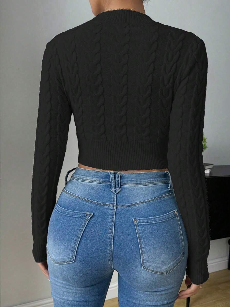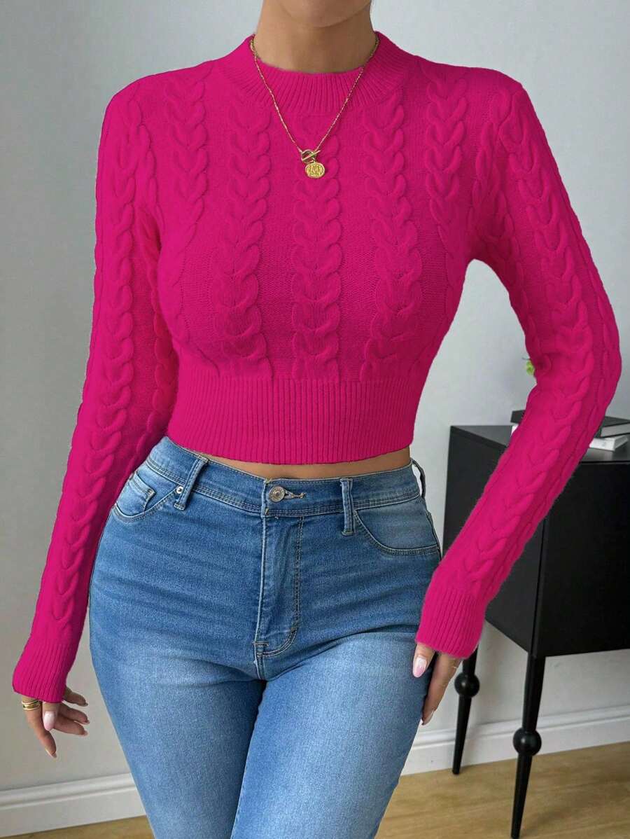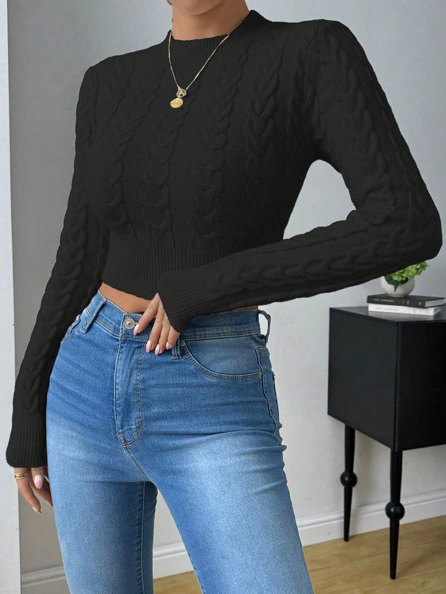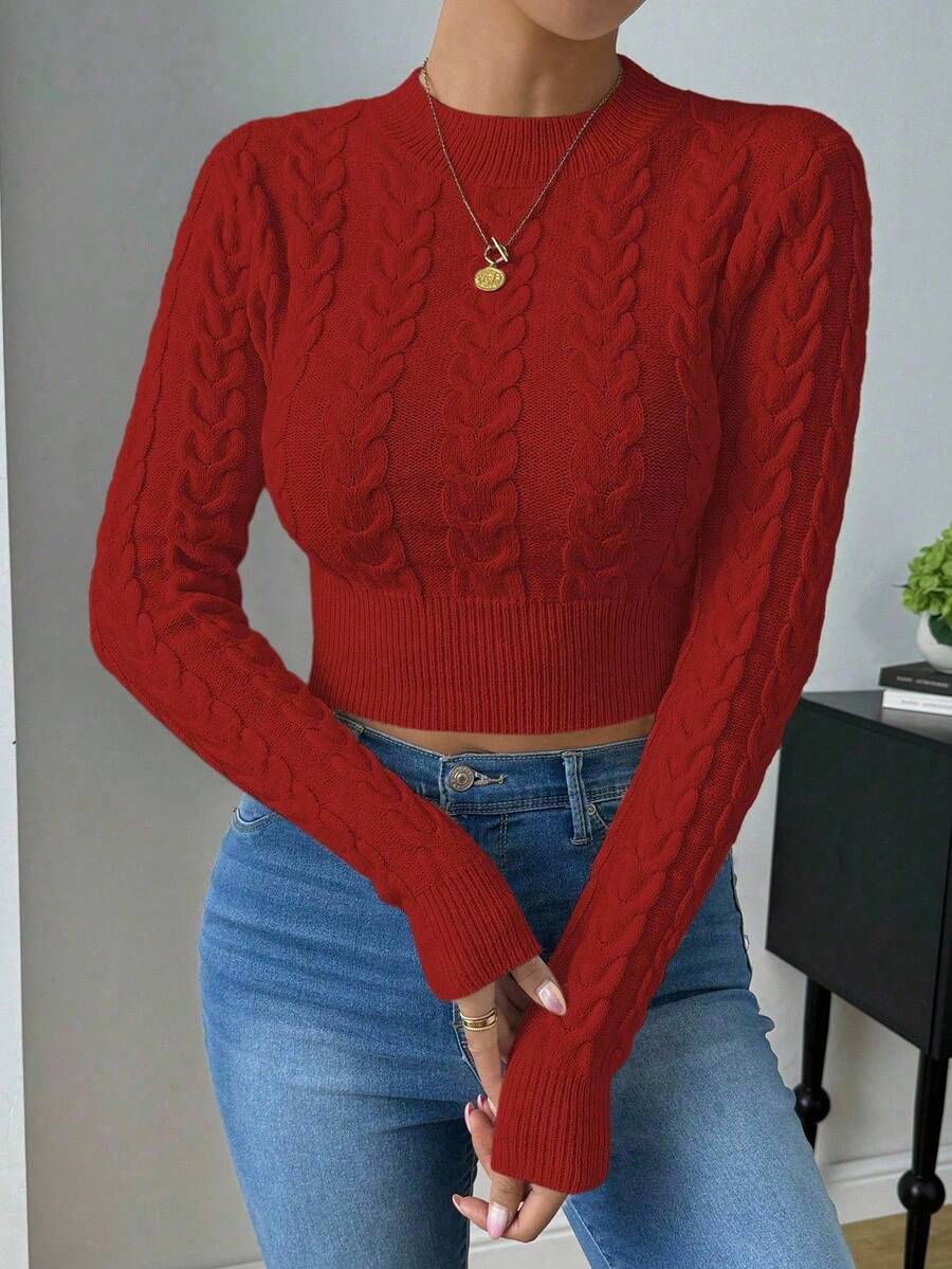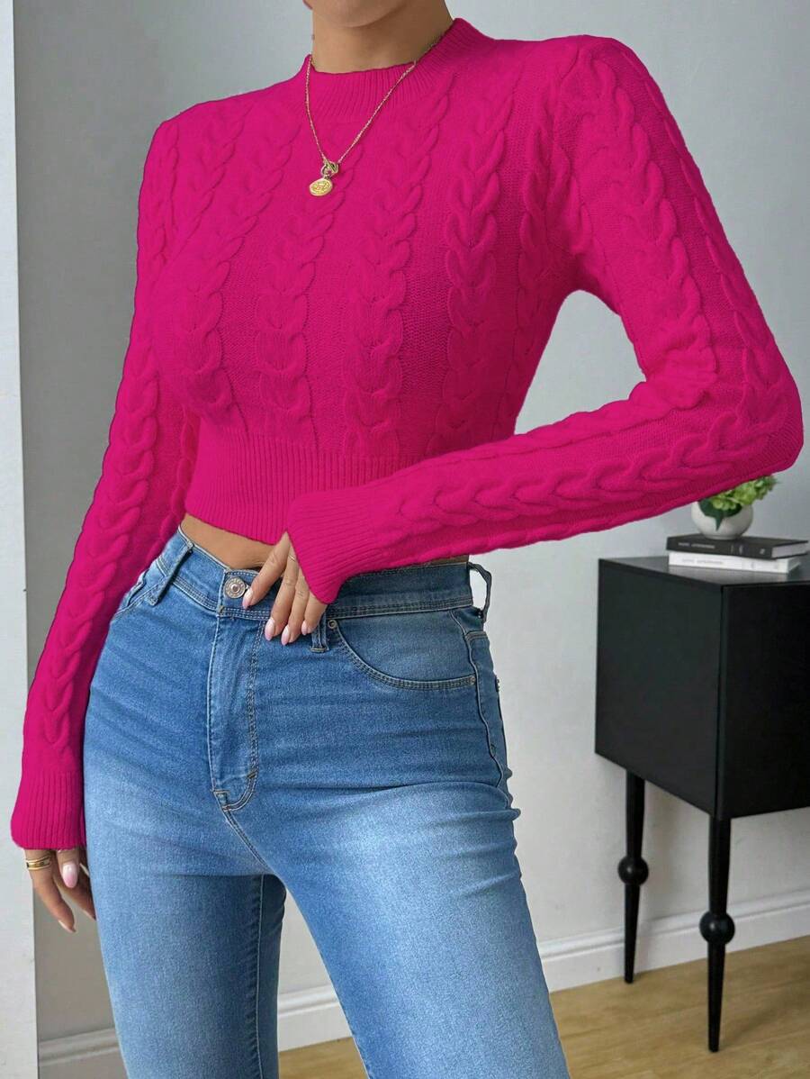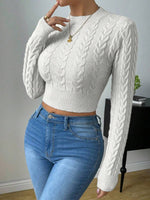 Maglioncino corto attillato, girocollo, a maniche lunghe, in colore unito
