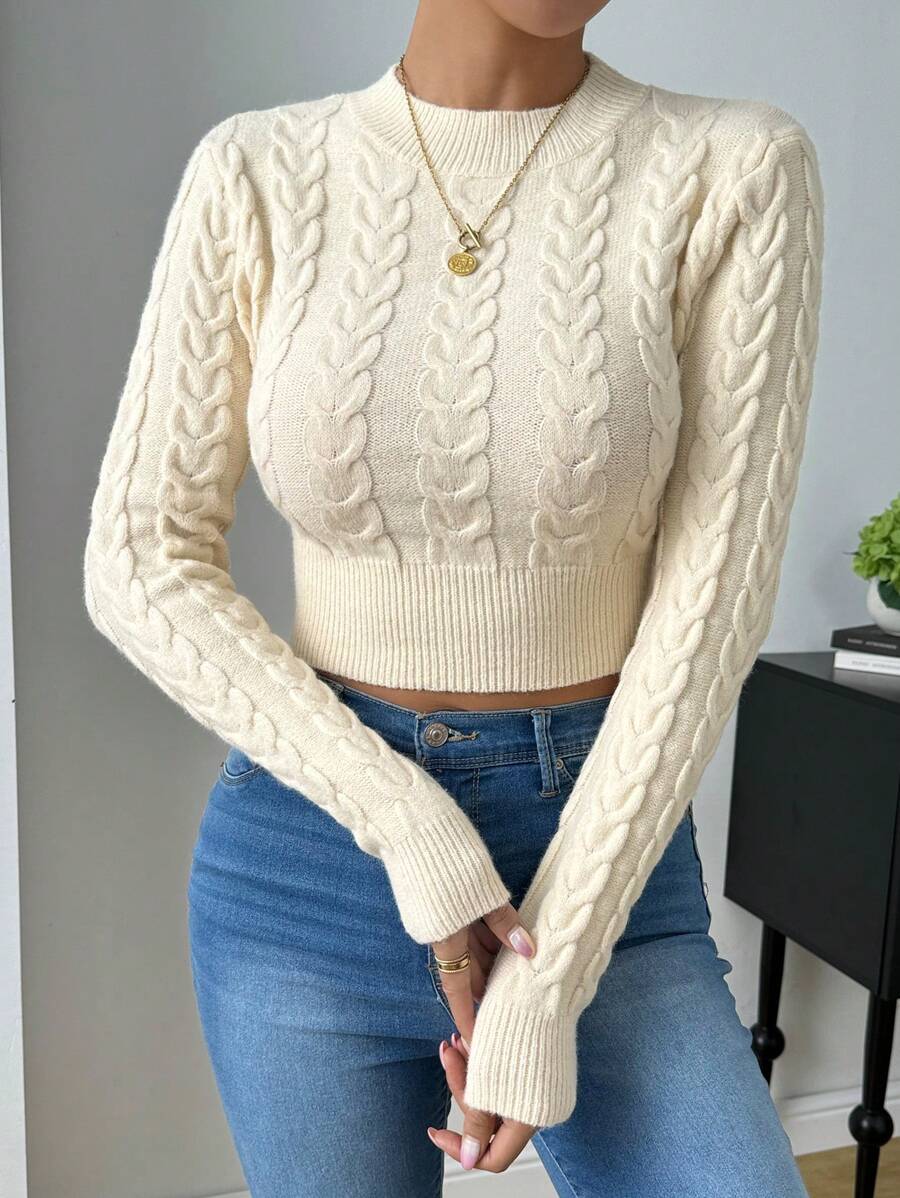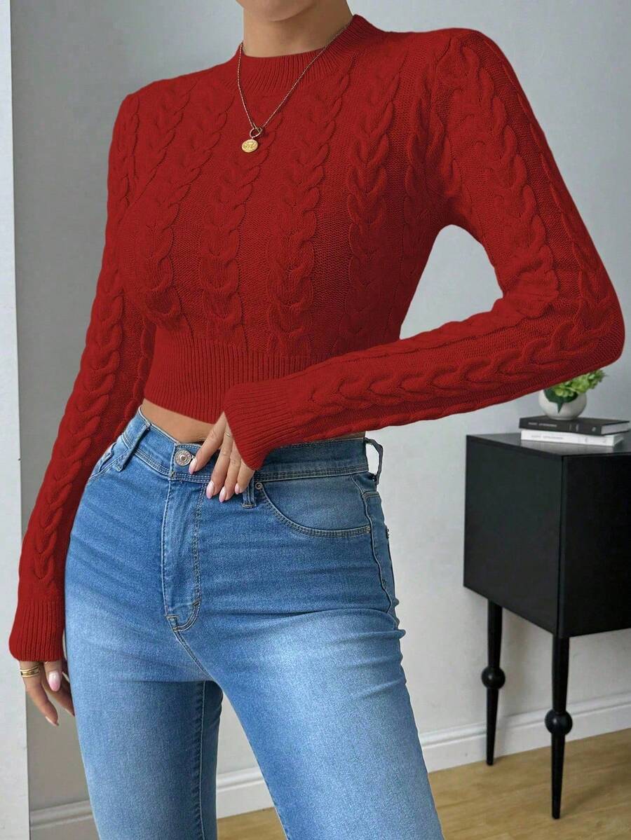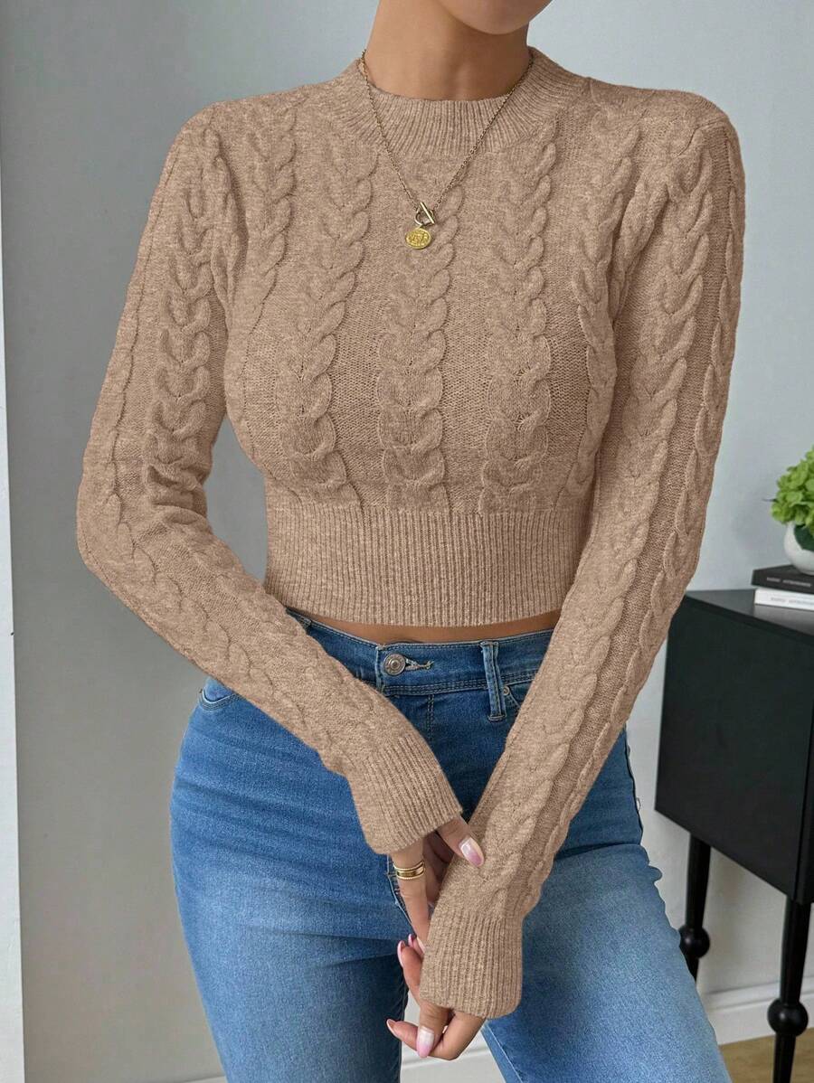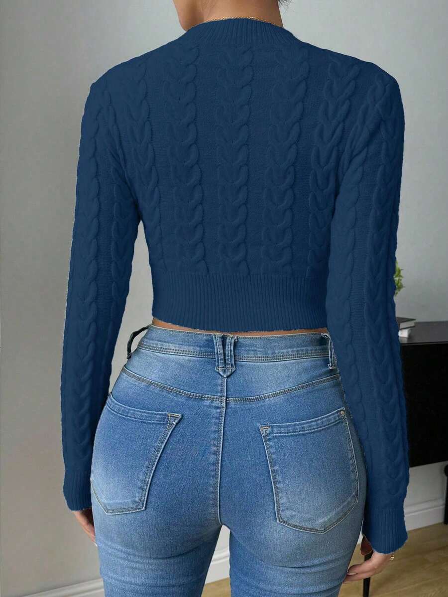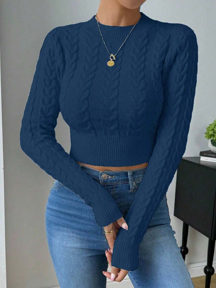 Maglioncino corto attillato, girocollo, a maniche lunghe, in colore unito