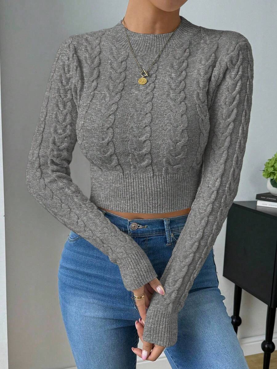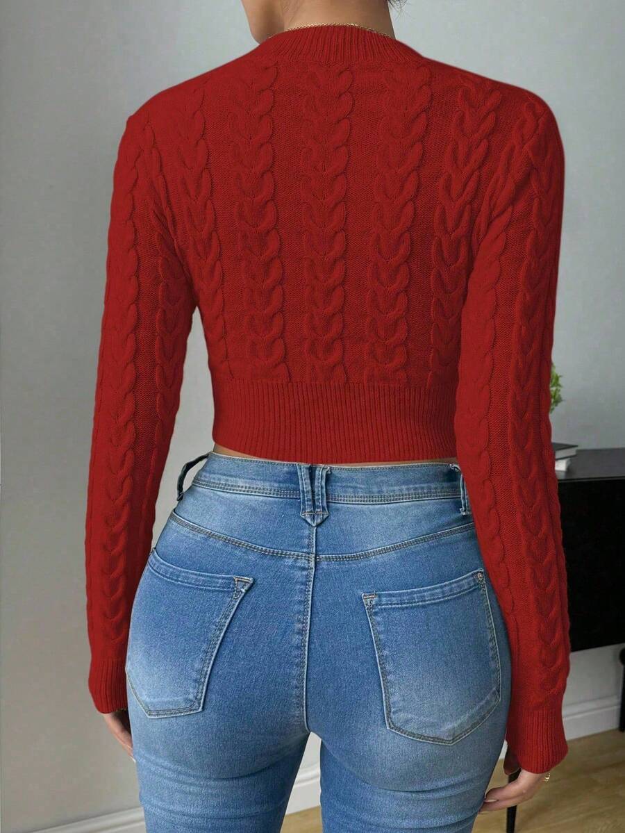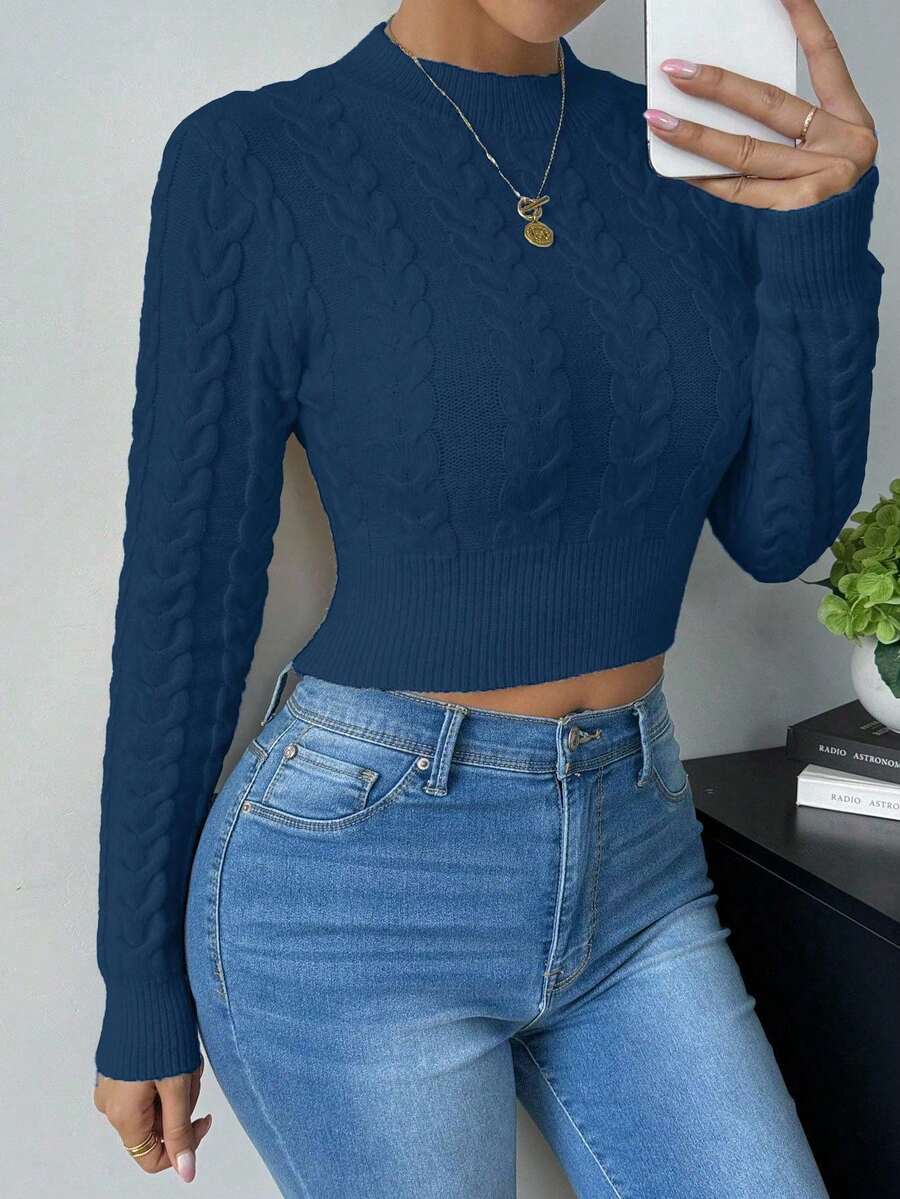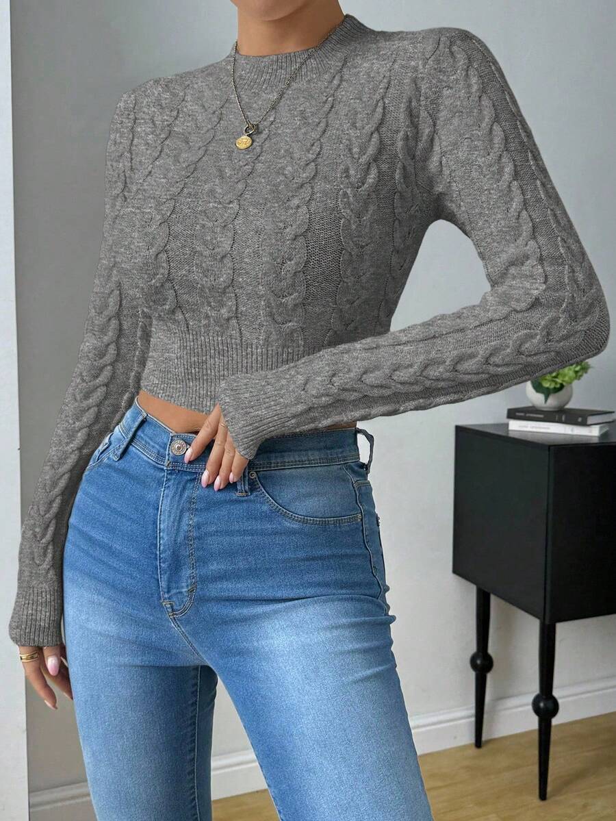 Maglioncino corto attillato, girocollo, a maniche lunghe, in colore unito