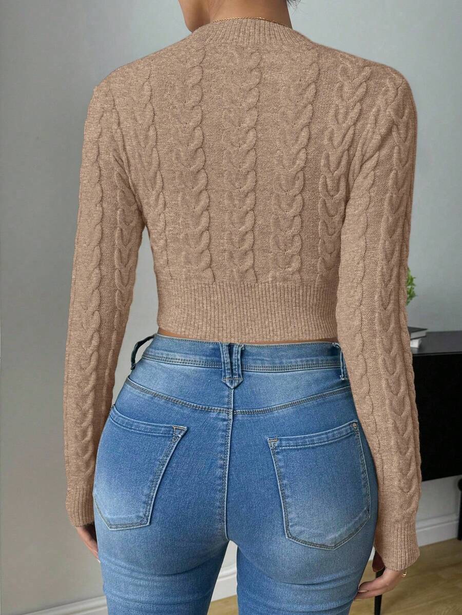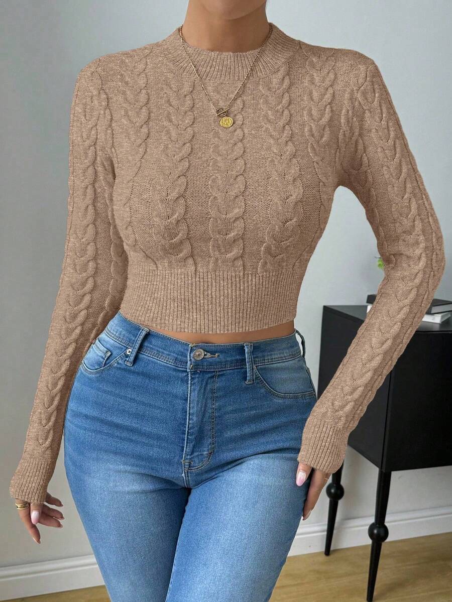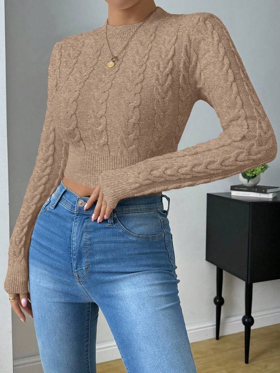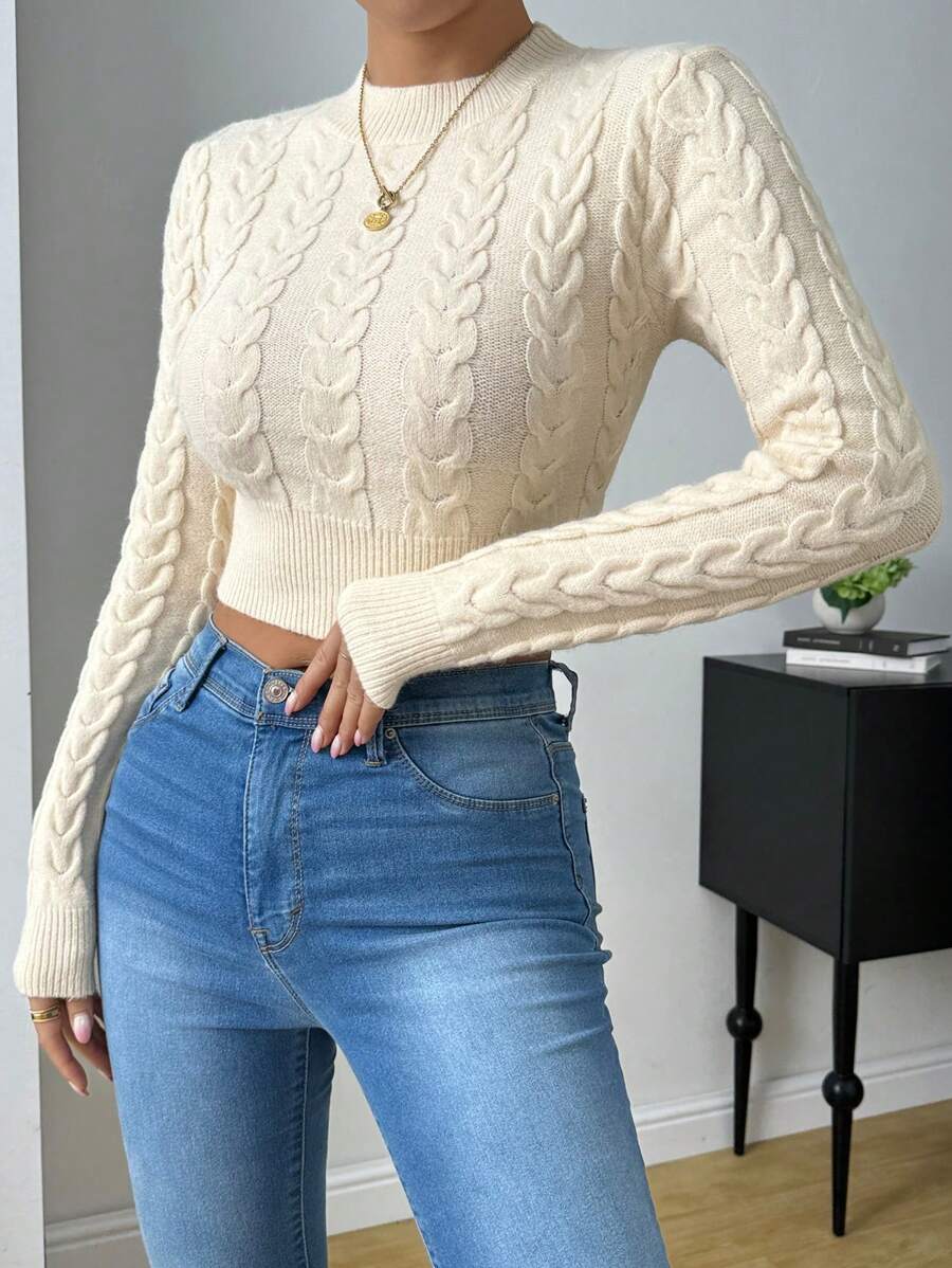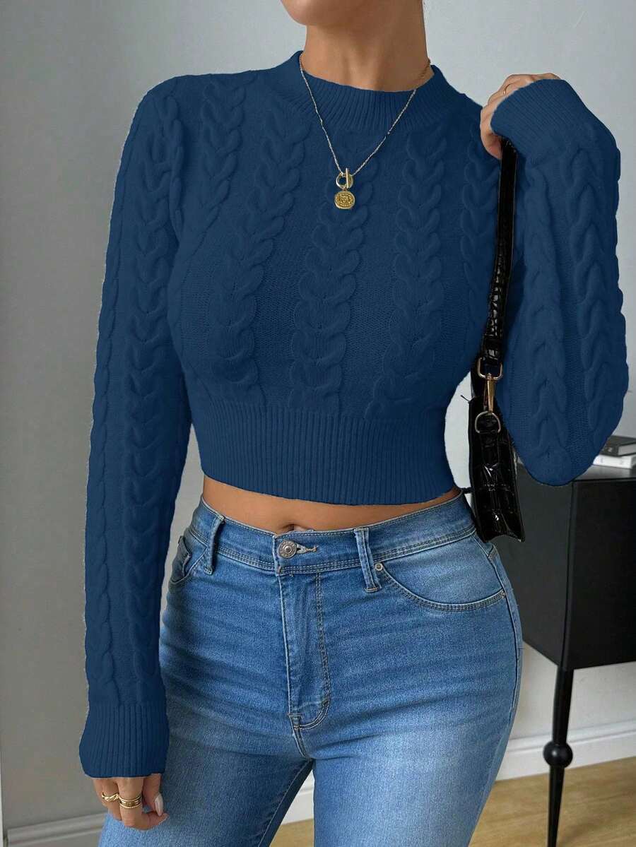 Maglioncino corto attillato, girocollo, a maniche lunghe, in colore unito
