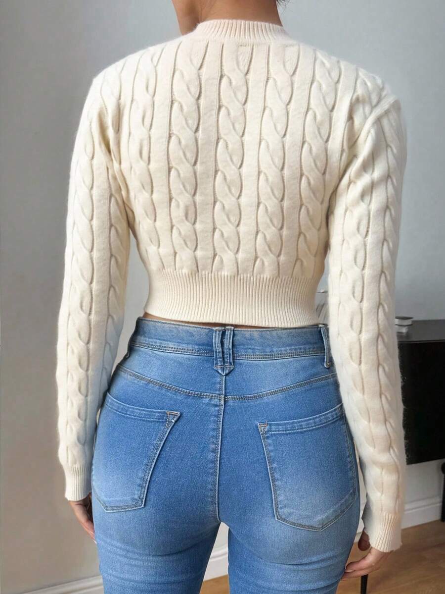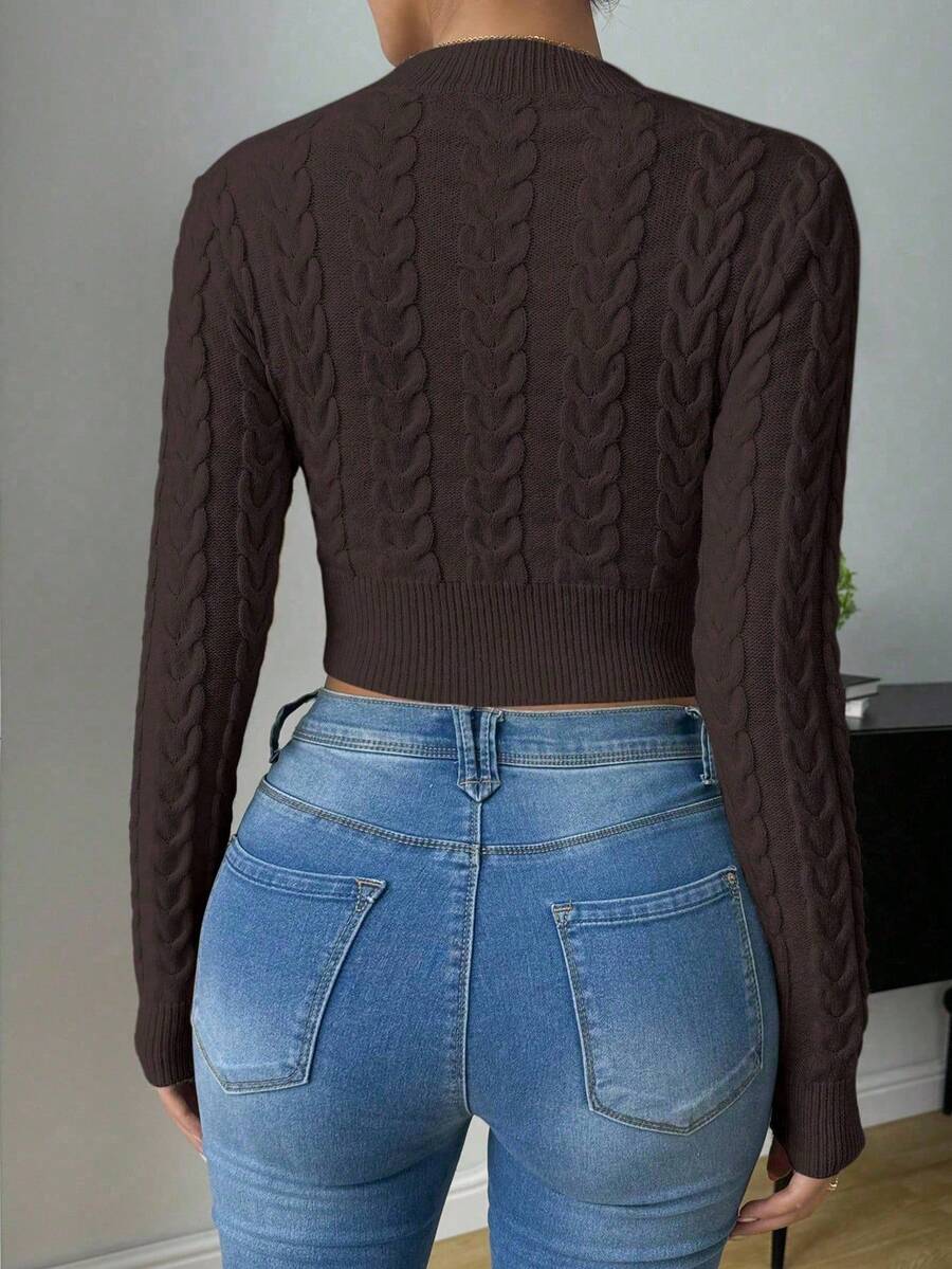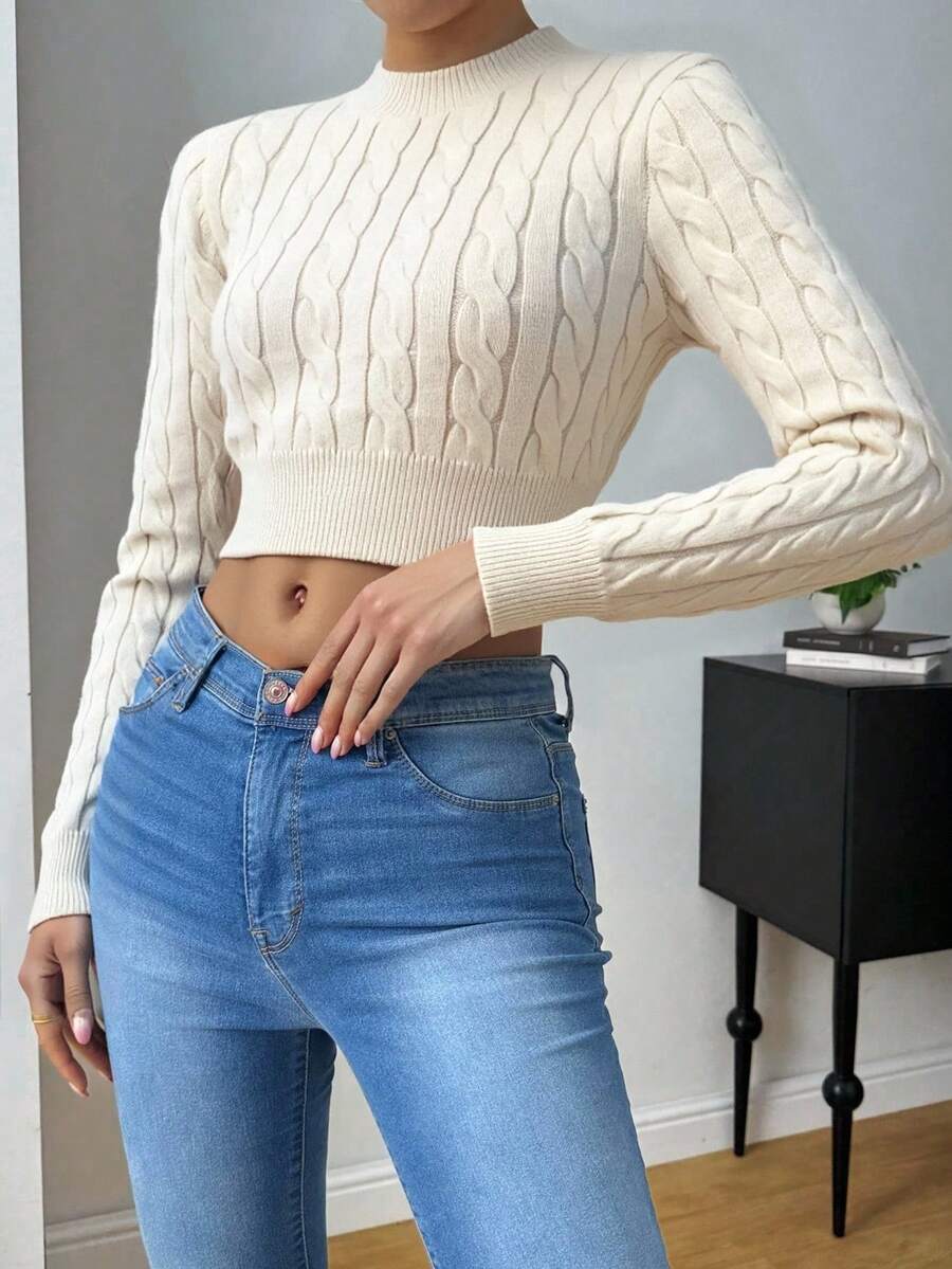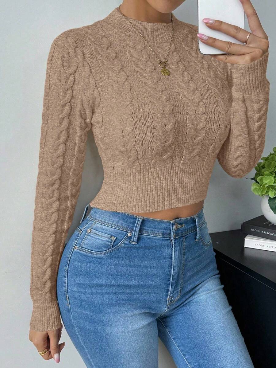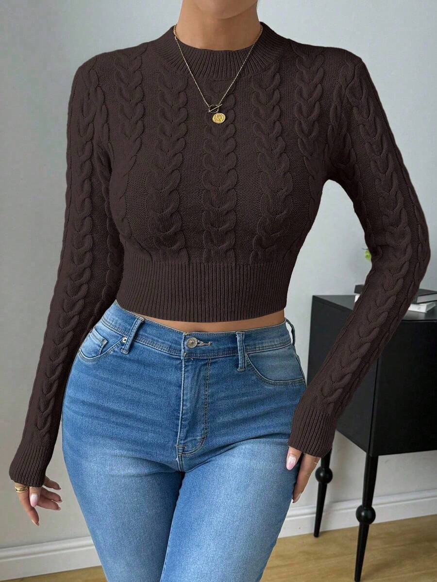 Maglioncino corto attillato, girocollo, a maniche lunghe, in colore unito