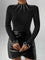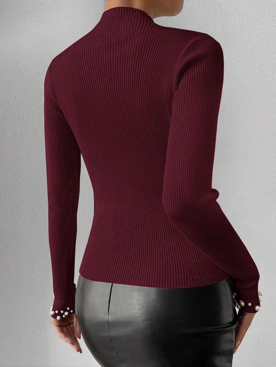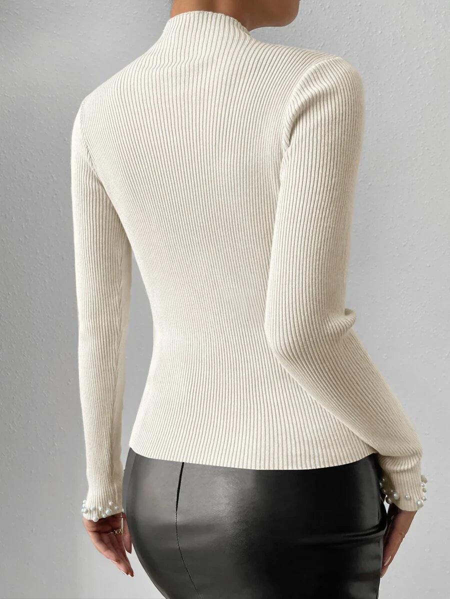 Maglione attillato a collo alto con finte perle e nappe, top a maniche lunghe