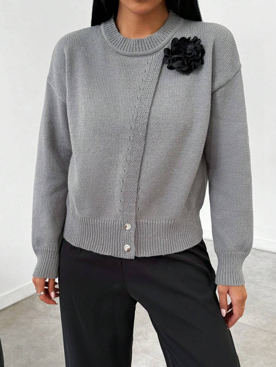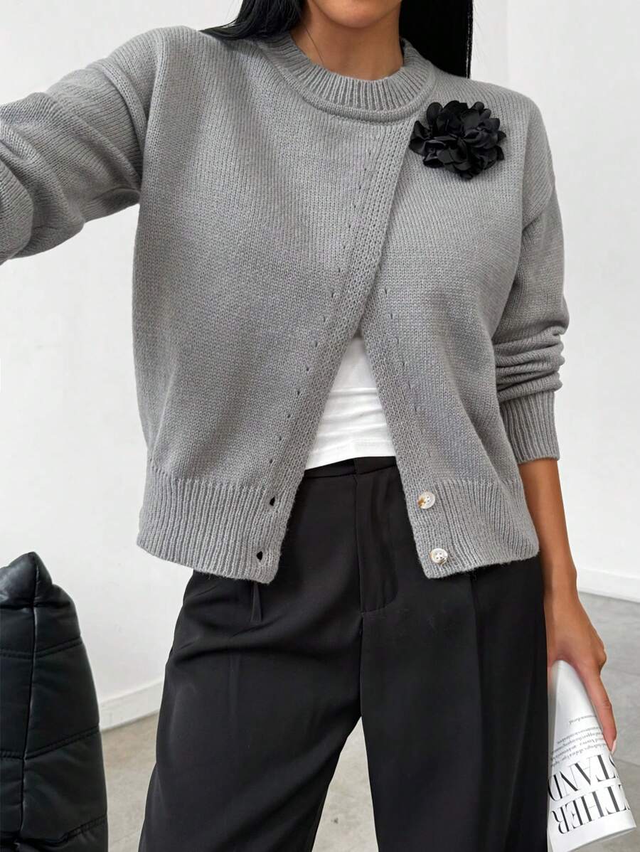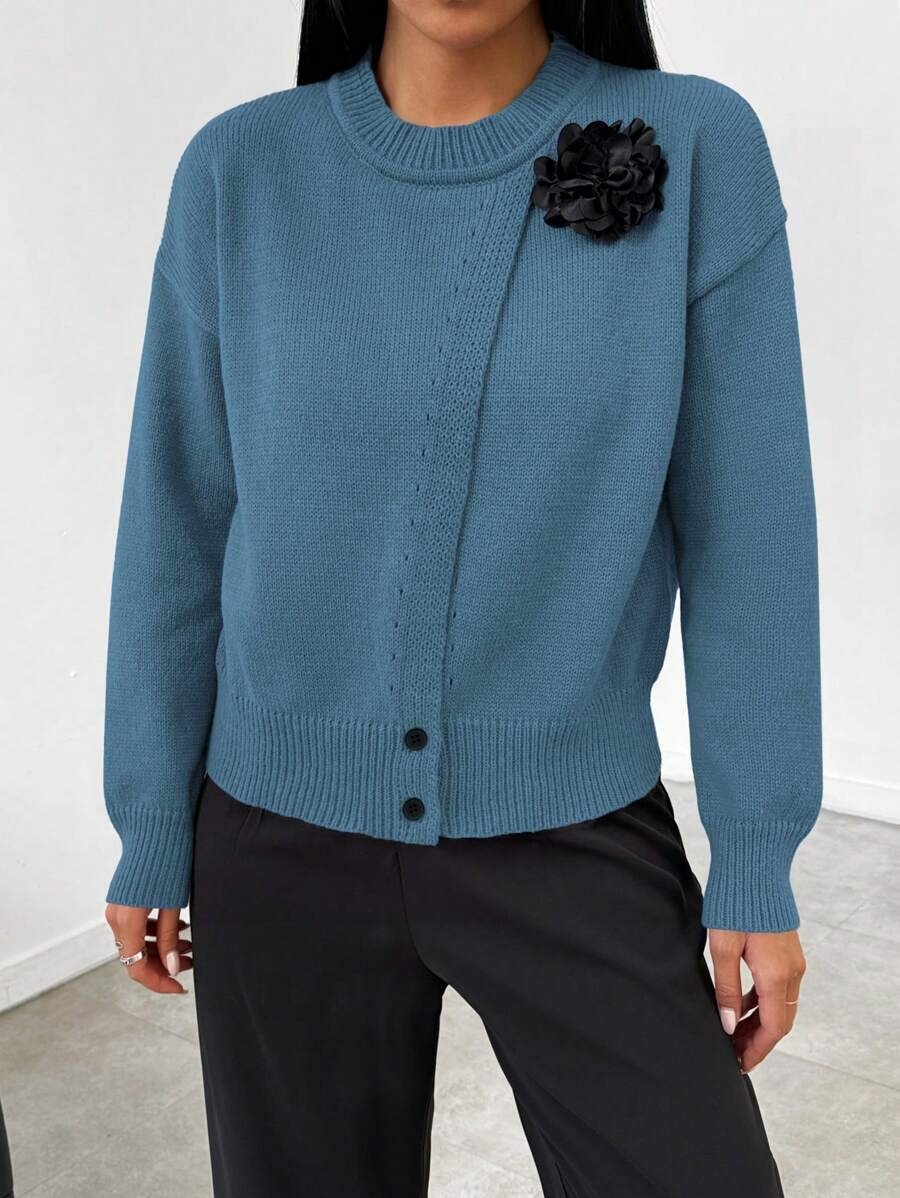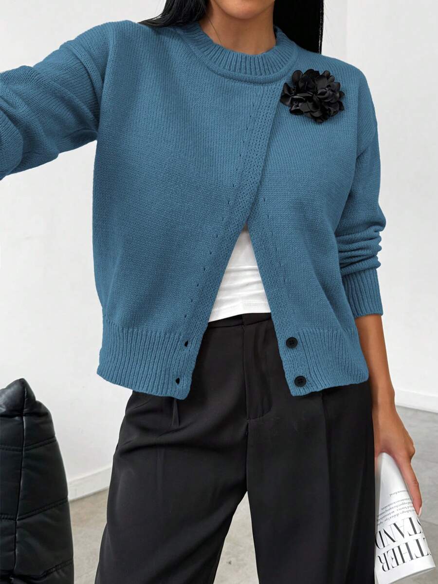 Maglione casual a maniche lunghe da donna con bottoni decorativi