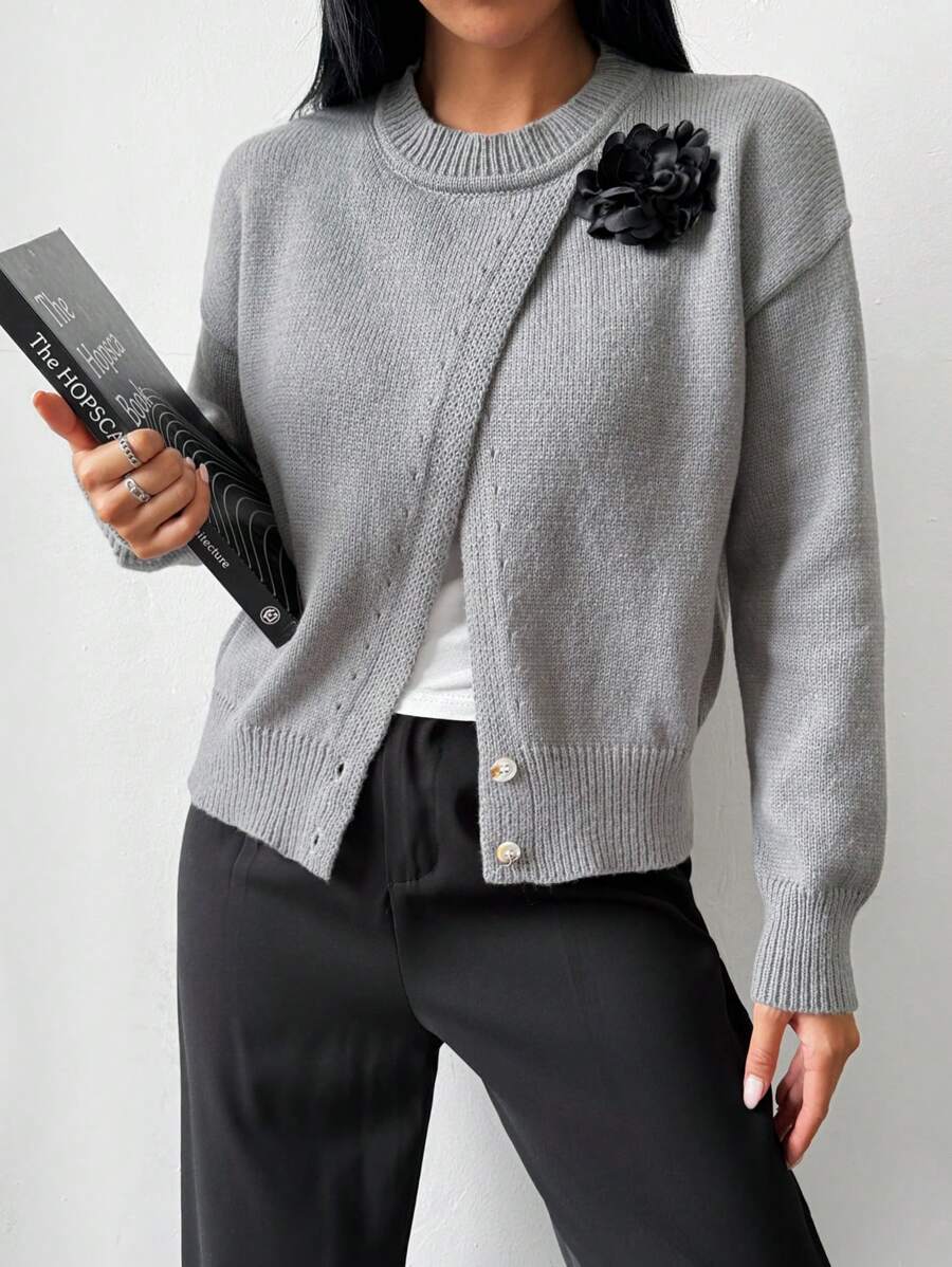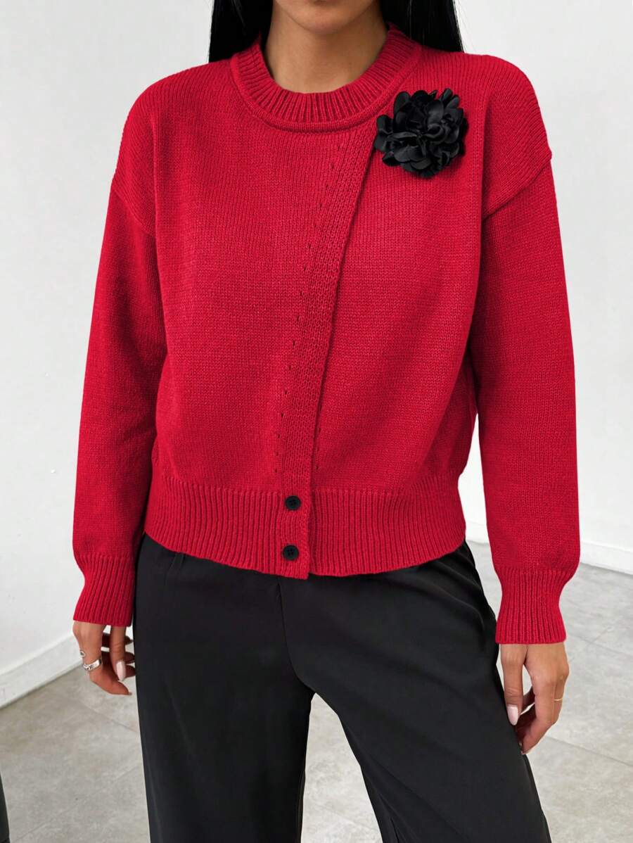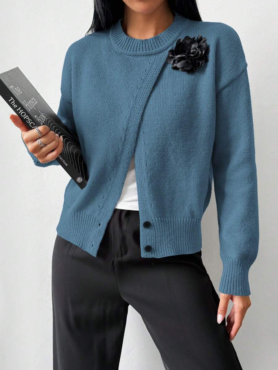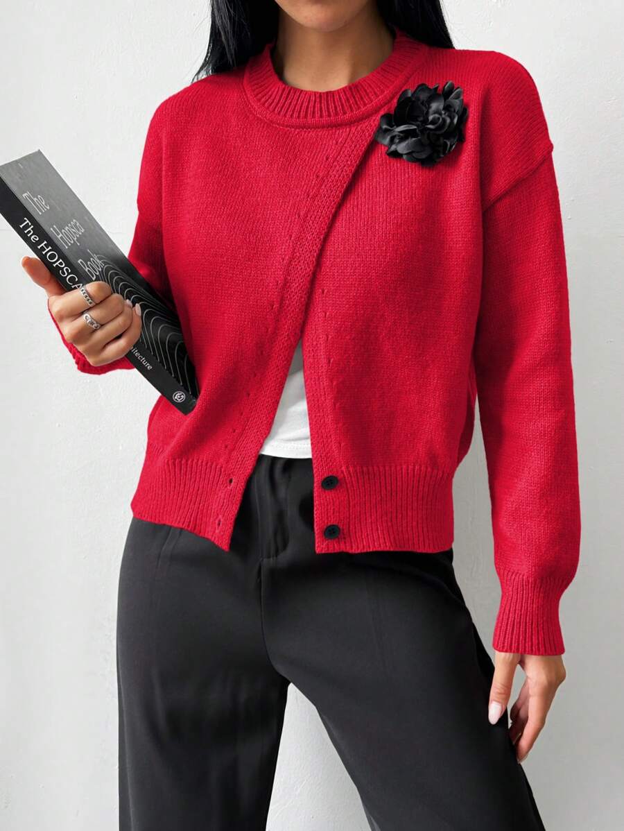 Maglione casual a maniche lunghe da donna con bottoni decorativi