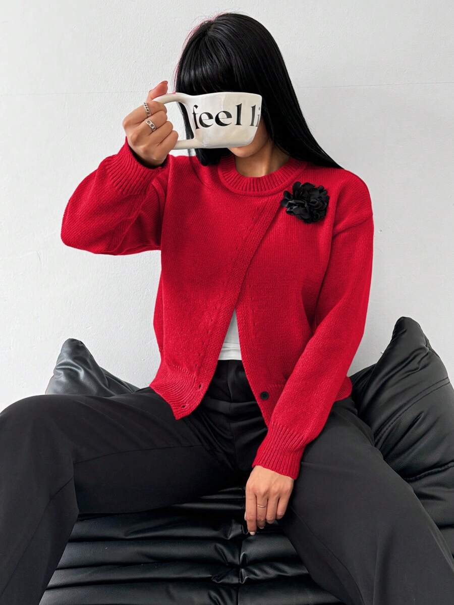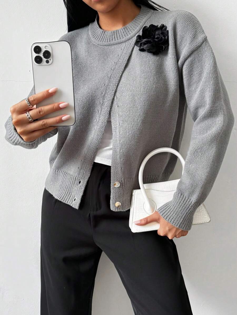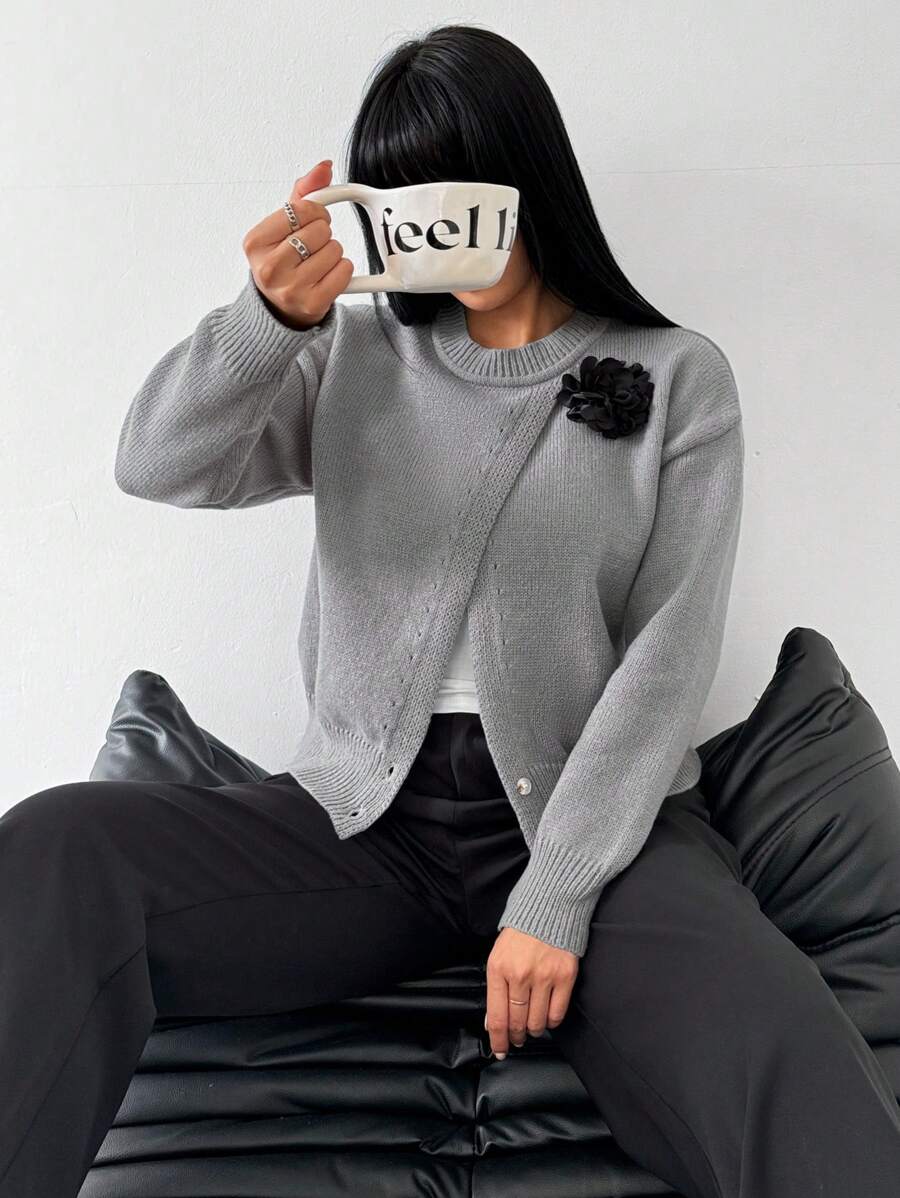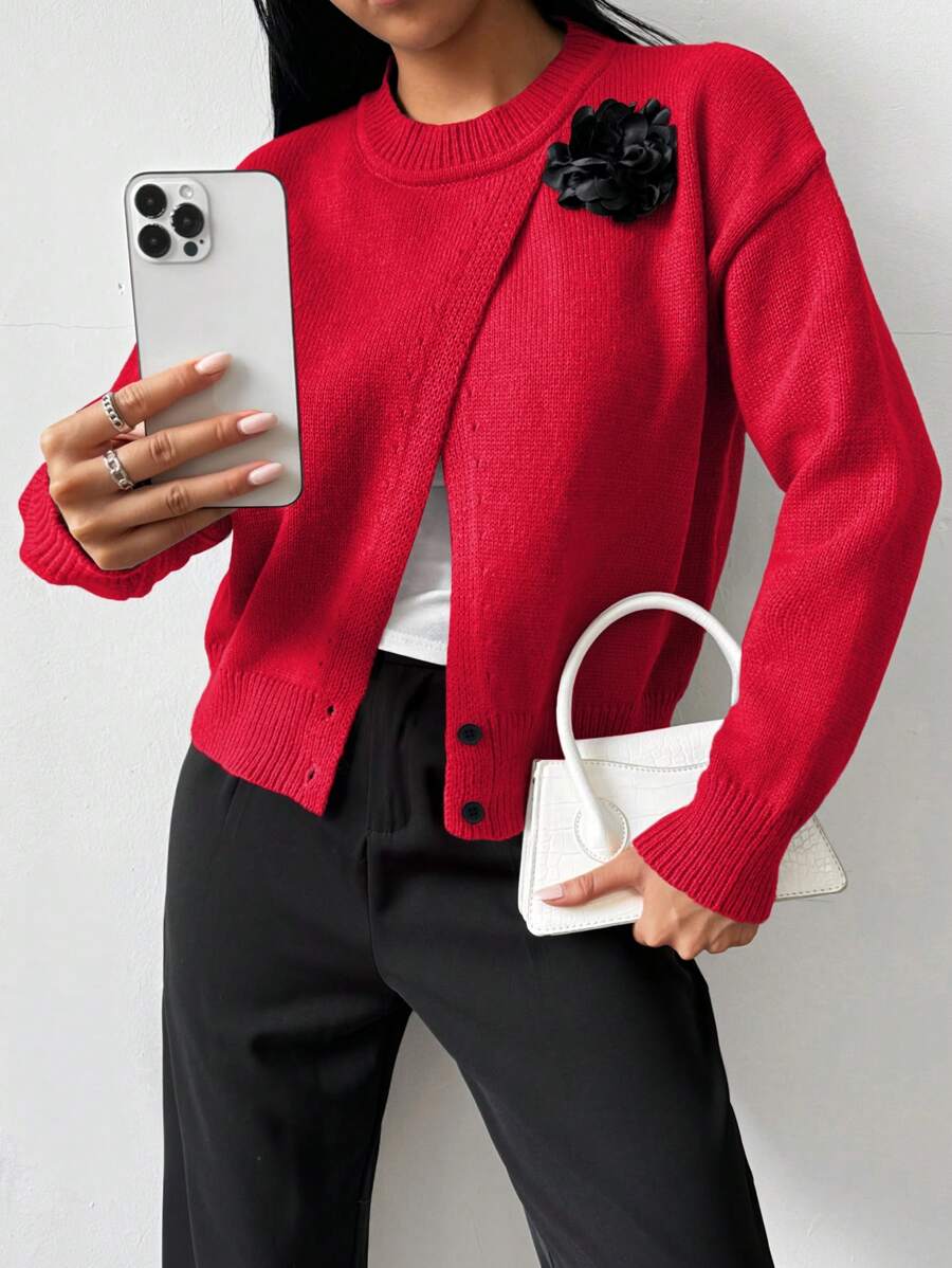 Maglione casual a maniche lunghe da donna con bottoni decorativi